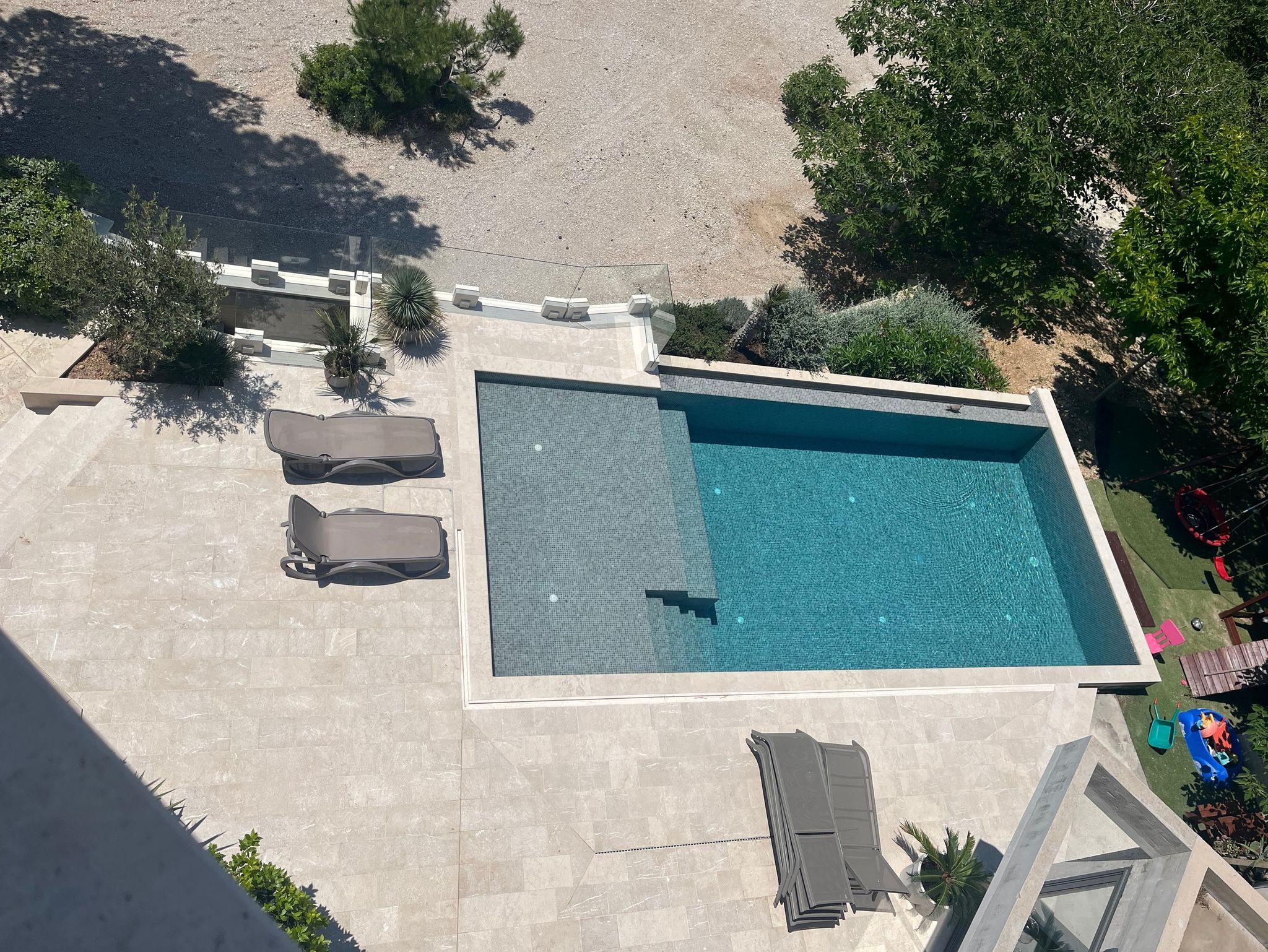 Umgebung des Objekts (Ordentlich), Hof (100m2, Kinderbereich, Sitzbereich), Parkplatz (Anzahl der Parkplätze: 8, Entfernung vom Objekt: im Hof), Pool: gemeinsam, Dimensionen: 11m x 4m x 1.5m, Wassertyp: Süßwasser, Grill: gemeinsam, Wäschewaschen, Föhn, Bügeleisen, Bügelbrett, Sonnenschirm, Liegestühle, Kinderbett