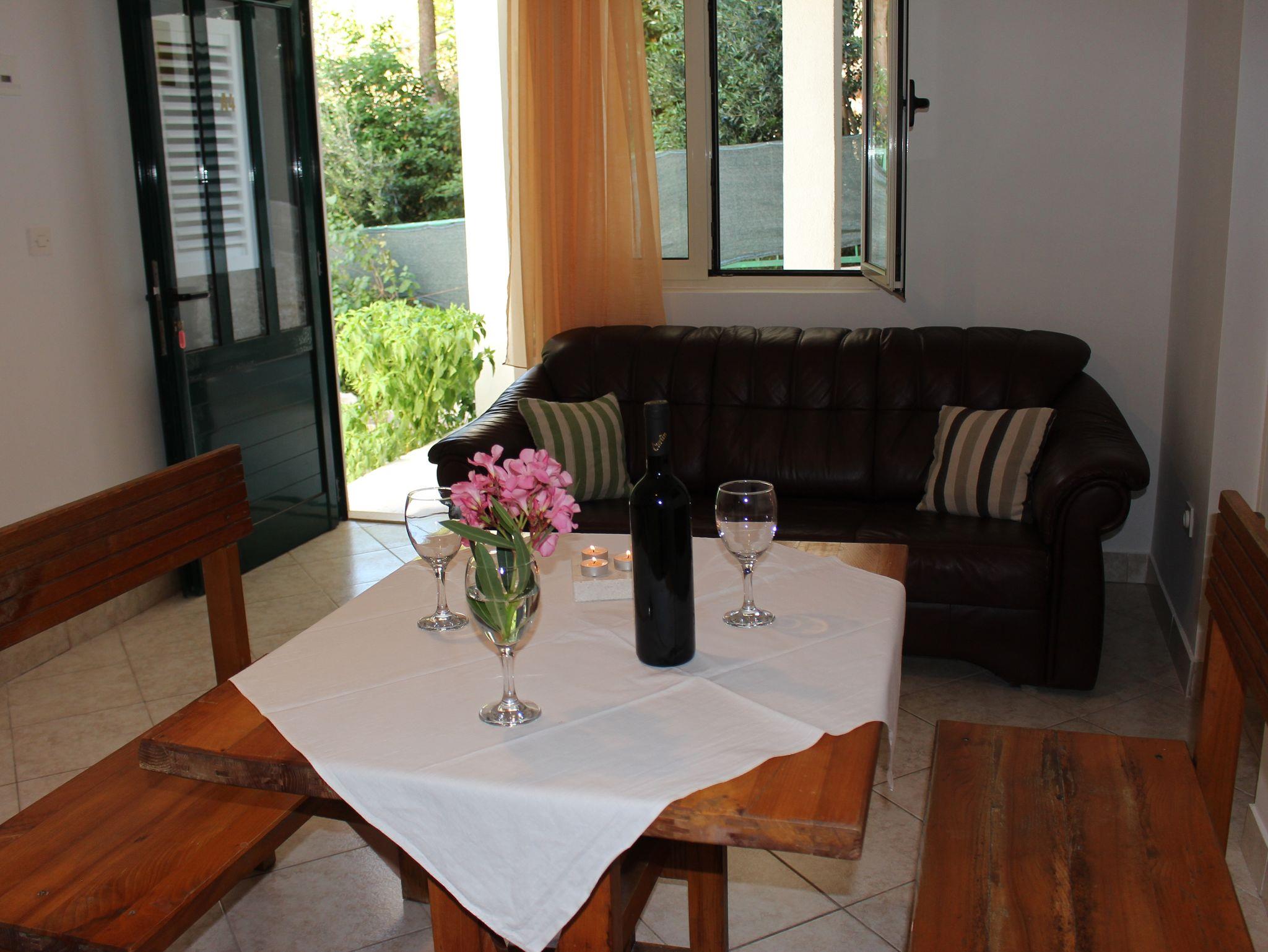 Ferienwohnung bietet Platz für 3 Gäste. Die Betten sind in Schlafzimmern, die es 1 gibt, innerhalb einer Gesamtfläche von 38m2, angeordnet. Die Gäste haben eine eigene Terrasse zur Verfügung, auf der sie in warmen Sommernächten genießen können. Das Apartment bietet Meerblick. Es ist erlaubt, Speisen auf dem Gemeinschafts-Grill vorzubereiten. In der Unterkunftseinheit besteht die Möglichkeit des Mitbringens von Haustieren gegen Aufpreis. IM PREIS INBEGRIFFEN: Kurtaxe, Endreinigung, Parkplatz, Internet, Kinderbett, Bügeleisen, Bügelbrett, Föhn, tragbarer Grill. VERBINDLICHE ZUSÄTZLICHE KOSTEN: Aufzahlung für Kurzaufenthalte (prozentualer Zuschlag pro Nächtigungsanzahl: 30% - 1, 20% - 2, 10% - 3). UNVERBINDLICHE ZUSÄTZLICHE KOSTEN: Klimatisierung (5,00 € pro Nacht), Wäschewaschen (3,00 € Waschen), Boot (70,00 € pro Nacht), Bootsanlegeplatz (10,00 € pro Nacht), Haustiere (10,00 € pro Nacht). Die Verfügbarkeit zusätzlicher Dienstleistungen in Ihrem reservierten Termin und die Preise derselben (falls nicht aufgeführt) müssen im Voraus überprüft werden. Zusätzliche Dienstleistungen die in der Zahlungsaufforderung nicht aufgeführt sind werden direkt beim Vermieter bezahlt, angenommen der Gast nutzt auch diese.