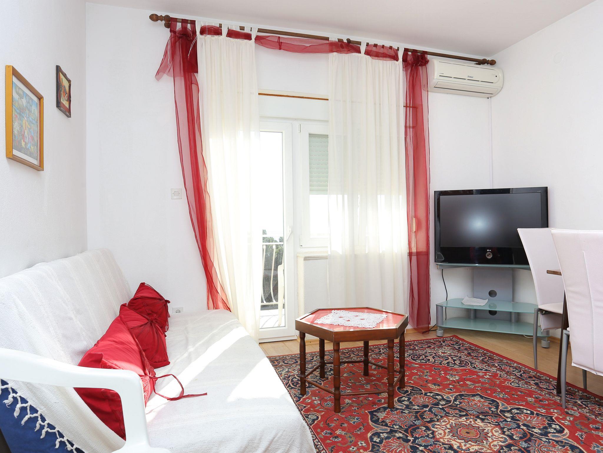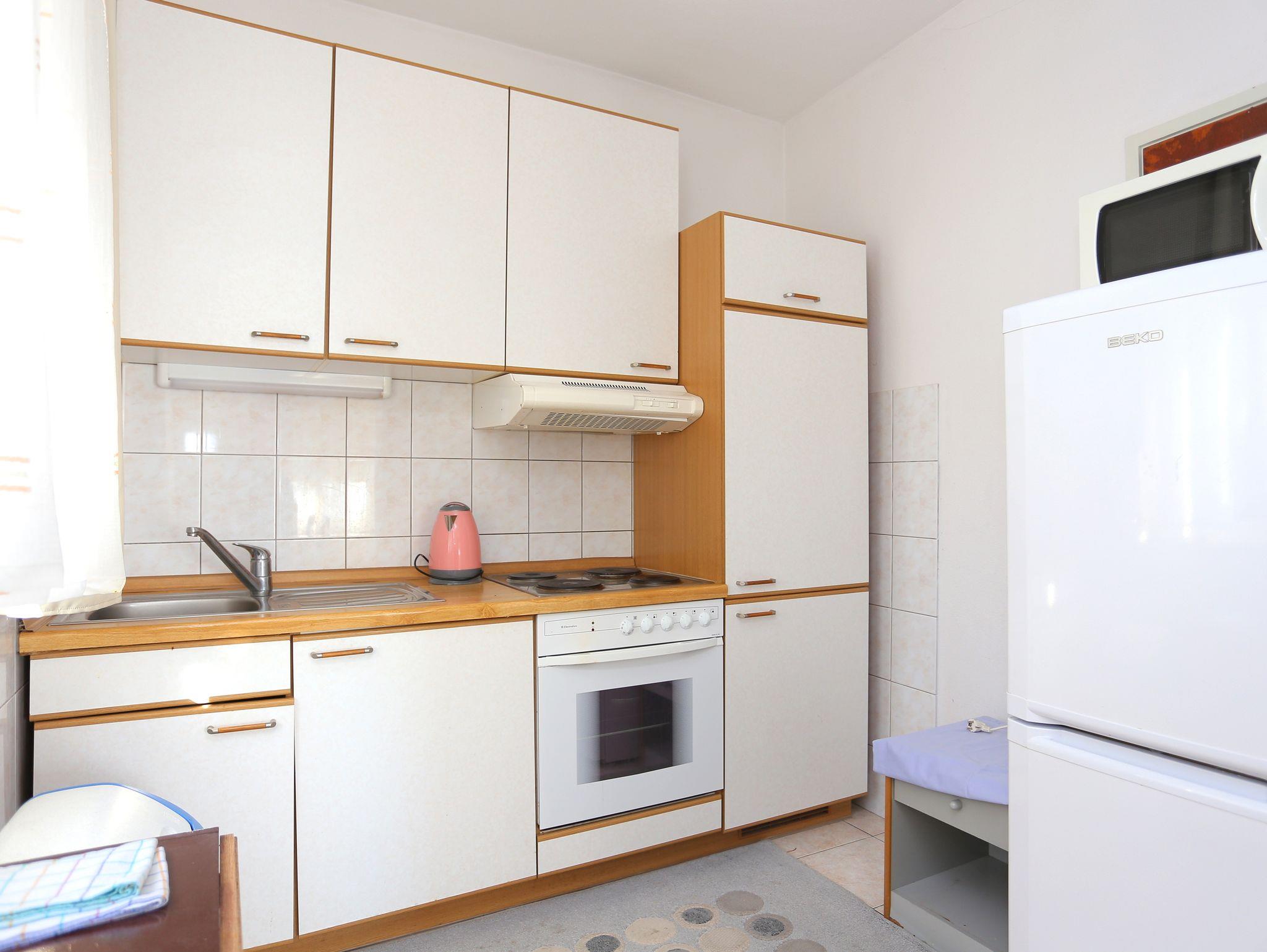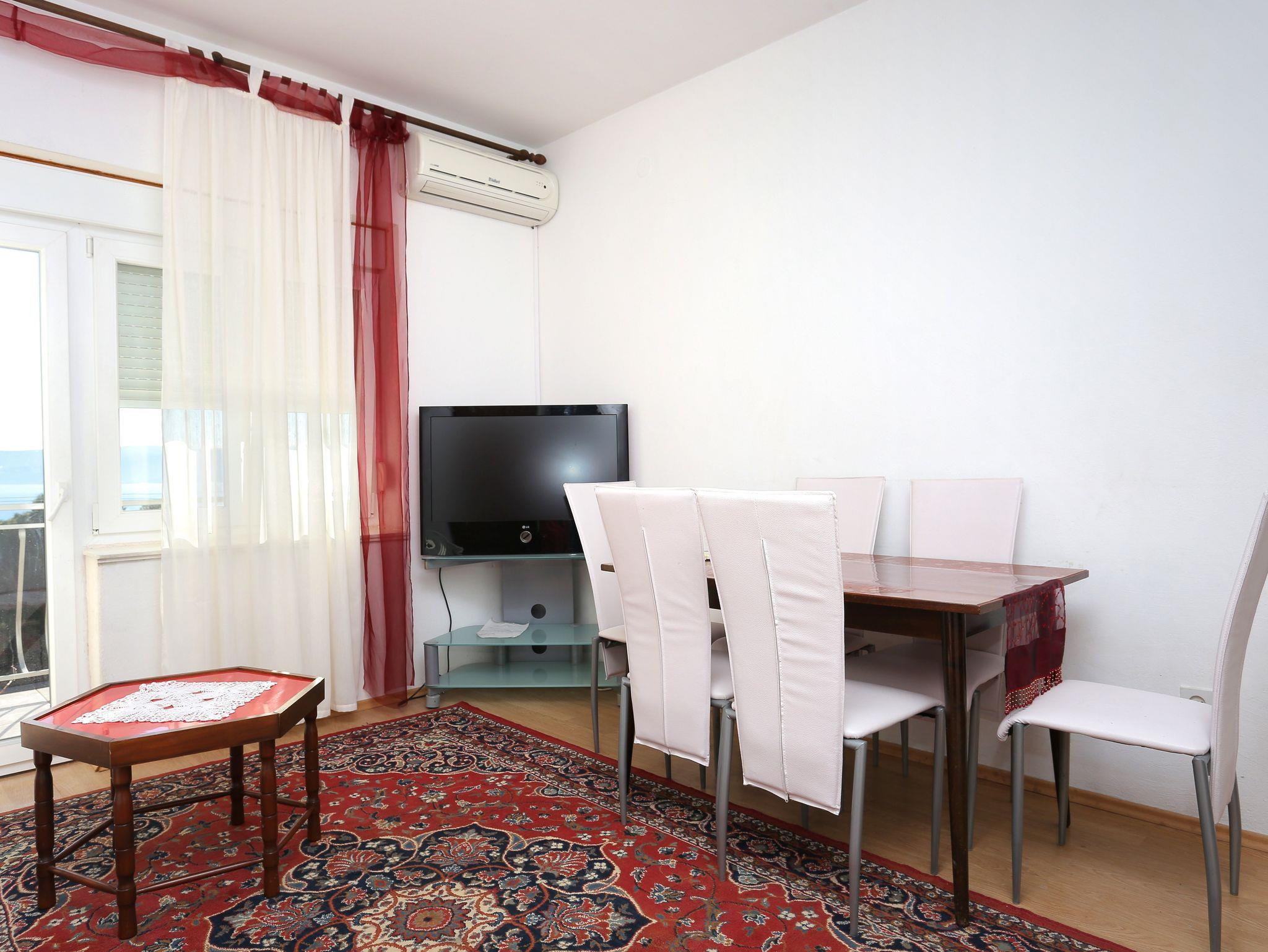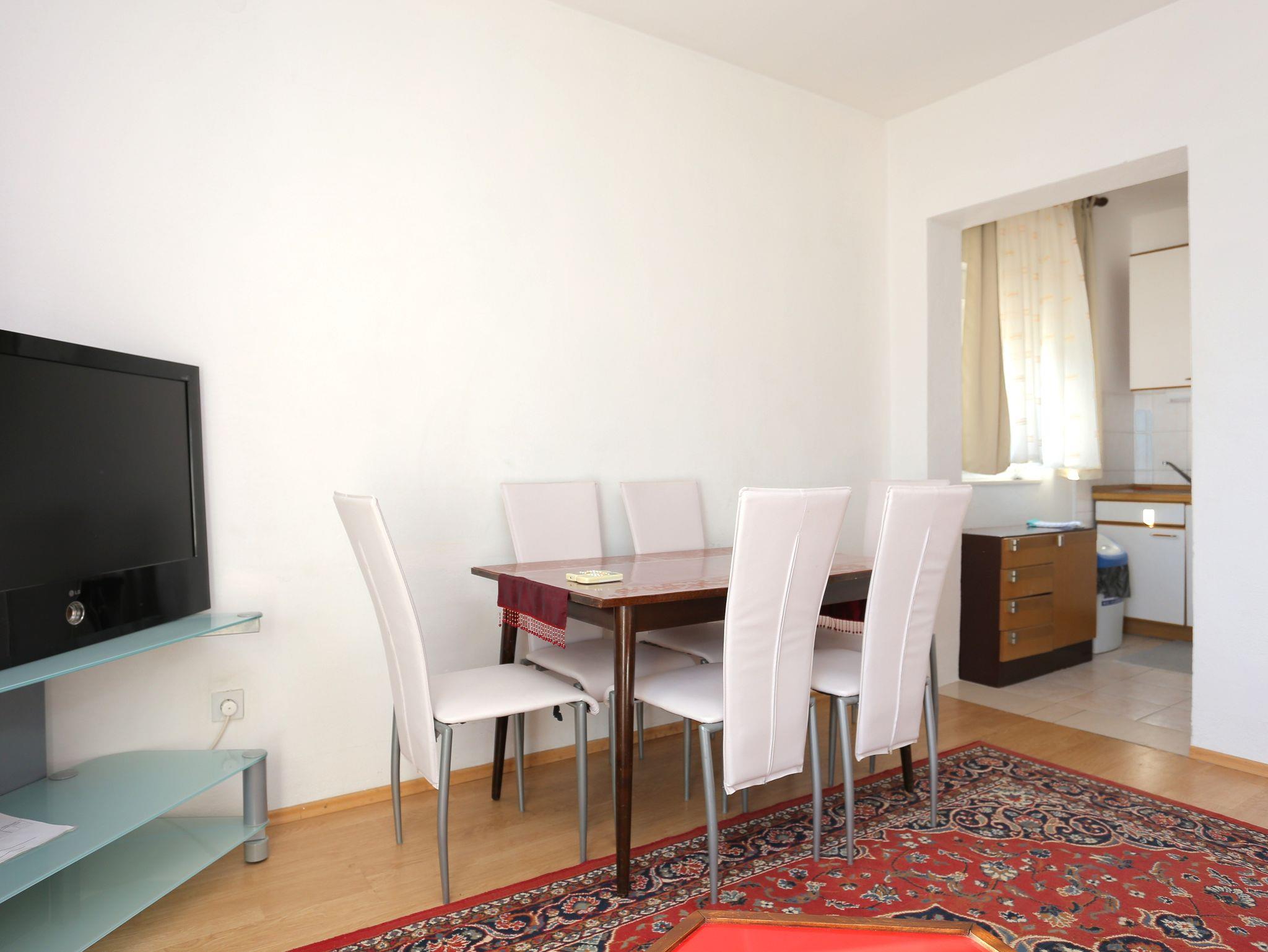 Ferienwohnung bietet Platz für 6 Gäste. Die Betten sind in Schlafzimmern, die es 2 gibt, und in Wohnzimmer, innerhalb einer Gesamtfläche von 52m2, angeordnet. Die Gäste haben einen eigenen Balkon zur Verfügung, auf der sie in warmen Sommernächten genießen können. Das Apartment bietet Meerblick. Es ist erlaubt, Speisen auf dem Gemeinschafts-Grill vorzubereiten. Die reservierte Unterkunftseinheit verfügt über einen gemeinsame Terrasse. Räume der gebuchten Unterkunftseinheit werden nicht in eine Ganze verbunden. Unterkunftseinheit hat Räume, die von dem Rest der Einheit abgetrennt werden. Eingang in die Unterkunftseinheit ist nicht mit einer Tür von anderen Räumen des Objektes getrennt. IM PREIS INBEGRIFFEN: Kurtaxe, Endreinigung, Klimatisierung, Parkplatz, Internet, Wäschewaschen, Bügeleisen, Bügelbrett, Föhn. VERBINDLICHE ZUSÄTZLICHE KOSTEN: Aufzahlung für Kurzaufenthalte (prozentualer Zuschlag pro Nächtigungsanzahl: 30% - 1, 20% - 2, 10% - 3). Die Verfügbarkeit zusätzlicher Dienstleistungen in Ihrem reservierten Termin und die Preise derselben (falls nicht aufgeführt) müssen im Voraus überprüft werden. Zusätzliche Dienstleistungen die in der Zahlungsaufforderung nicht aufgeführt sind werden direkt beim Vermieter bezahlt, angenommen der Gast nutzt auch diese.
