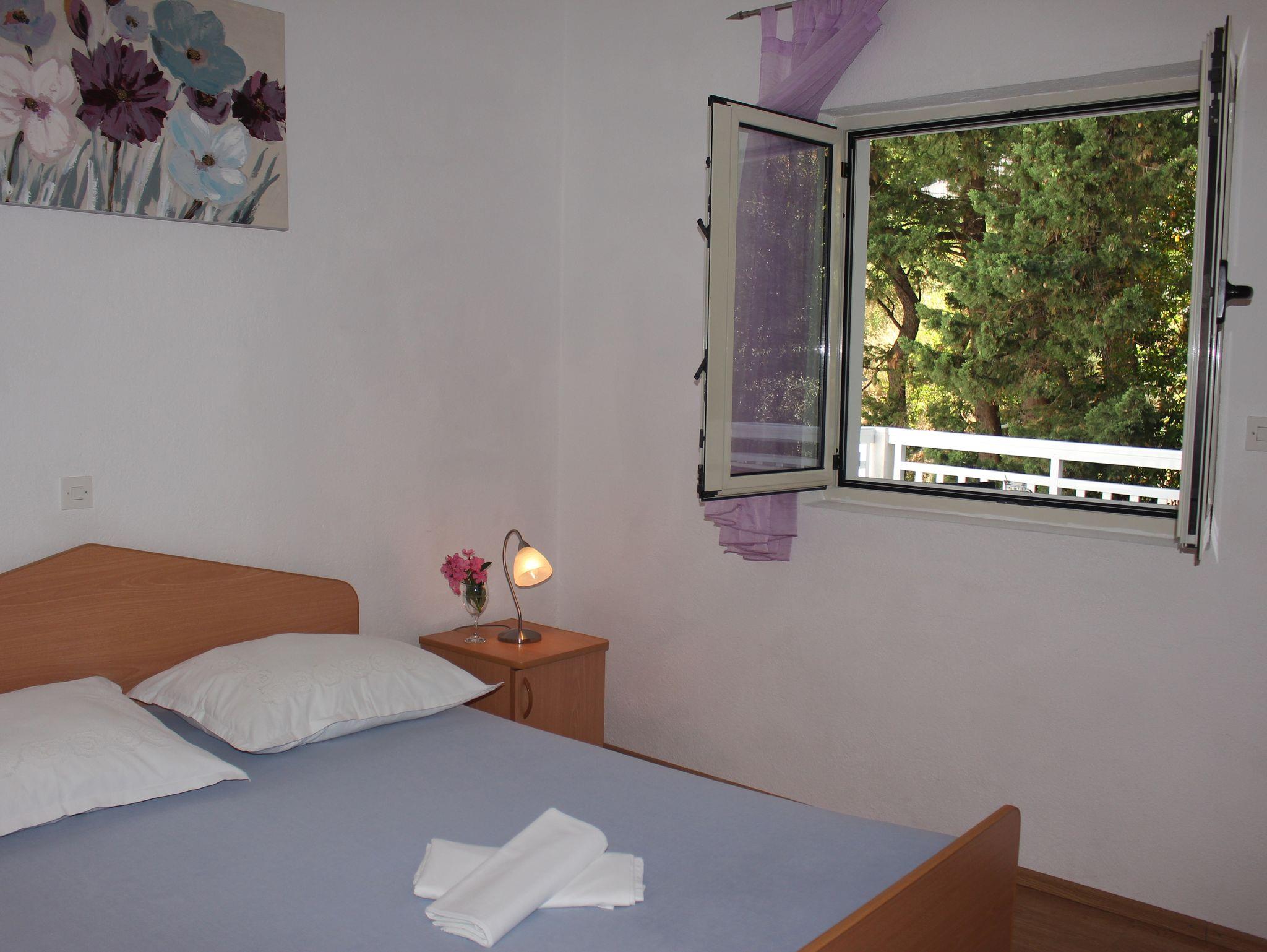 Ferienwohnung bietet Platz für 5 Gäste. Die Betten sind in Schlafzimmern, die es 2 gibt, und in Wohnzimmer, innerhalb einer Gesamtfläche von 52m2, angeordnet. Die Gäste haben eine eigene Terrasse zur Verfügung, auf der sie in warmen Sommernächten genießen können. Das Apartment bietet Meerblick. Es ist erlaubt, Speisen auf dem Gemeinschafts-Grill vorzubereiten. In der Unterkunftseinheit besteht die Möglichkeit des Mitbringens von Haustieren gegen Aufpreis. IM PREIS INBEGRIFFEN: Kurtaxe, Endreinigung, Parkplatz, Internet, Kinderbett, Bügeleisen, Bügelbrett, Föhn, tragbarer Grill. VERBINDLICHE ZUSÄTZLICHE KOSTEN: Aufzahlung für Kurzaufenthalte (prozentualer Zuschlag pro Nächtigungsanzahl: 30% - 1, 20% - 2, 10% - 3). UNVERBINDLICHE ZUSÄTZLICHE KOSTEN: Klimatisierung (5,00 € pro Nacht), Wäschewaschen (3,00 € Waschen), Boot (70,00 € pro Nacht), Bootsanlegeplatz (10,00 € pro Nacht), Haustiere (10,00 € pro Nacht). Die Verfügbarkeit zusätzlicher Dienstleistungen in Ihrem reservierten Termin und die Preise derselben (falls nicht aufgeführt) müssen im Voraus überprüft werden. Zusätzliche Dienstleistungen die in der Zahlungsaufforderung nicht aufgeführt sind werden direkt beim Vermieter bezahlt, angenommen der Gast nutzt auch diese.
