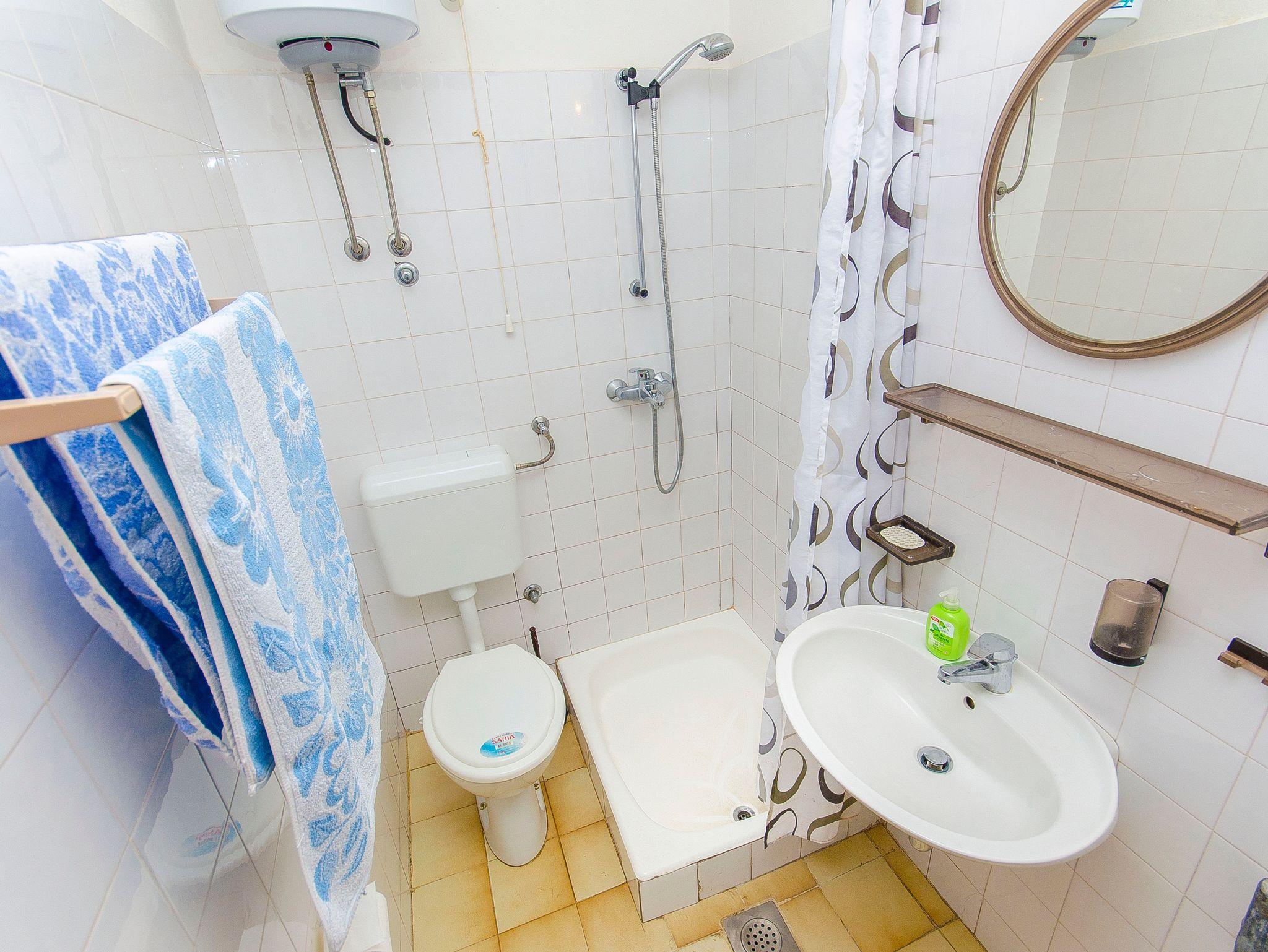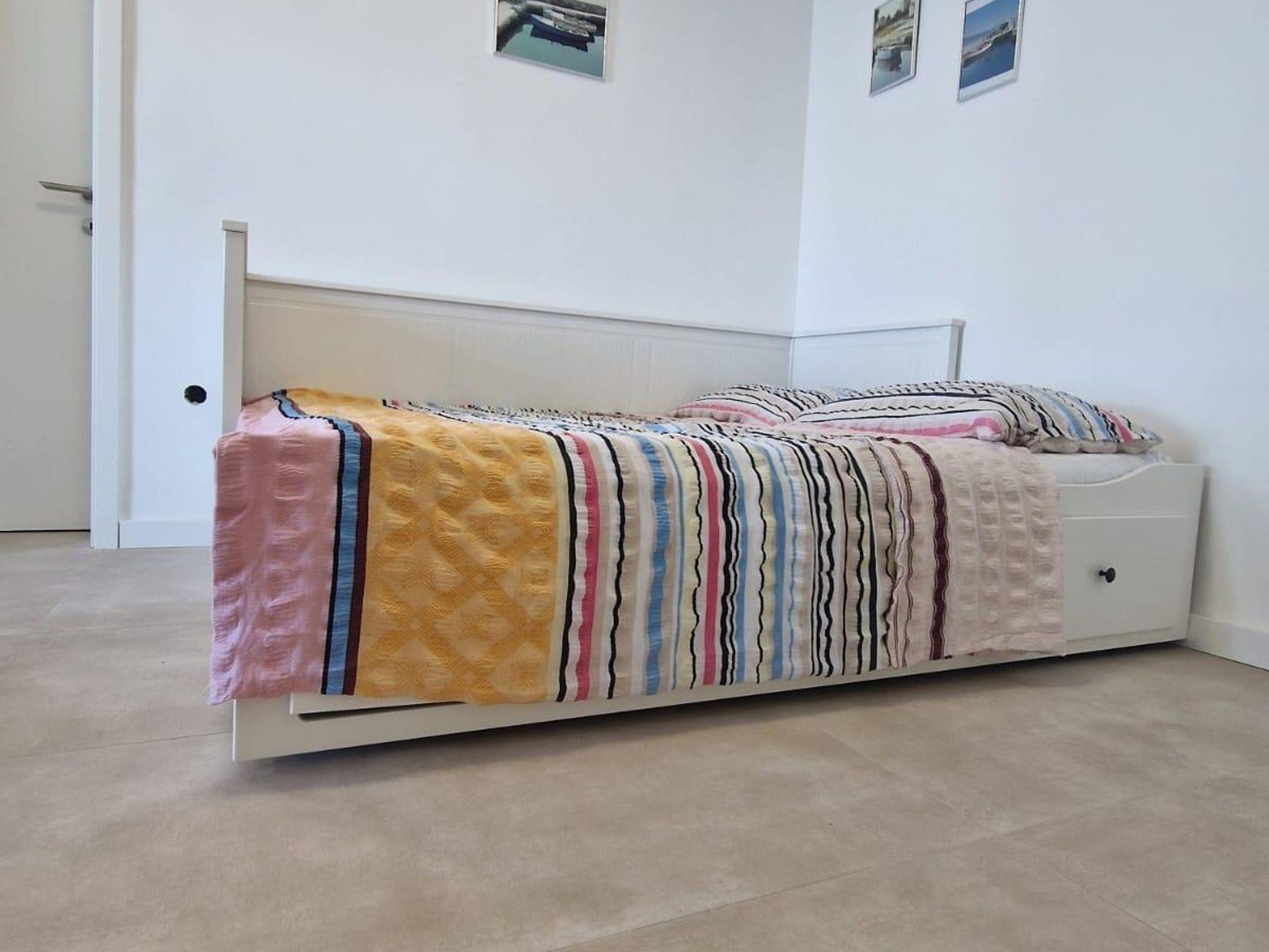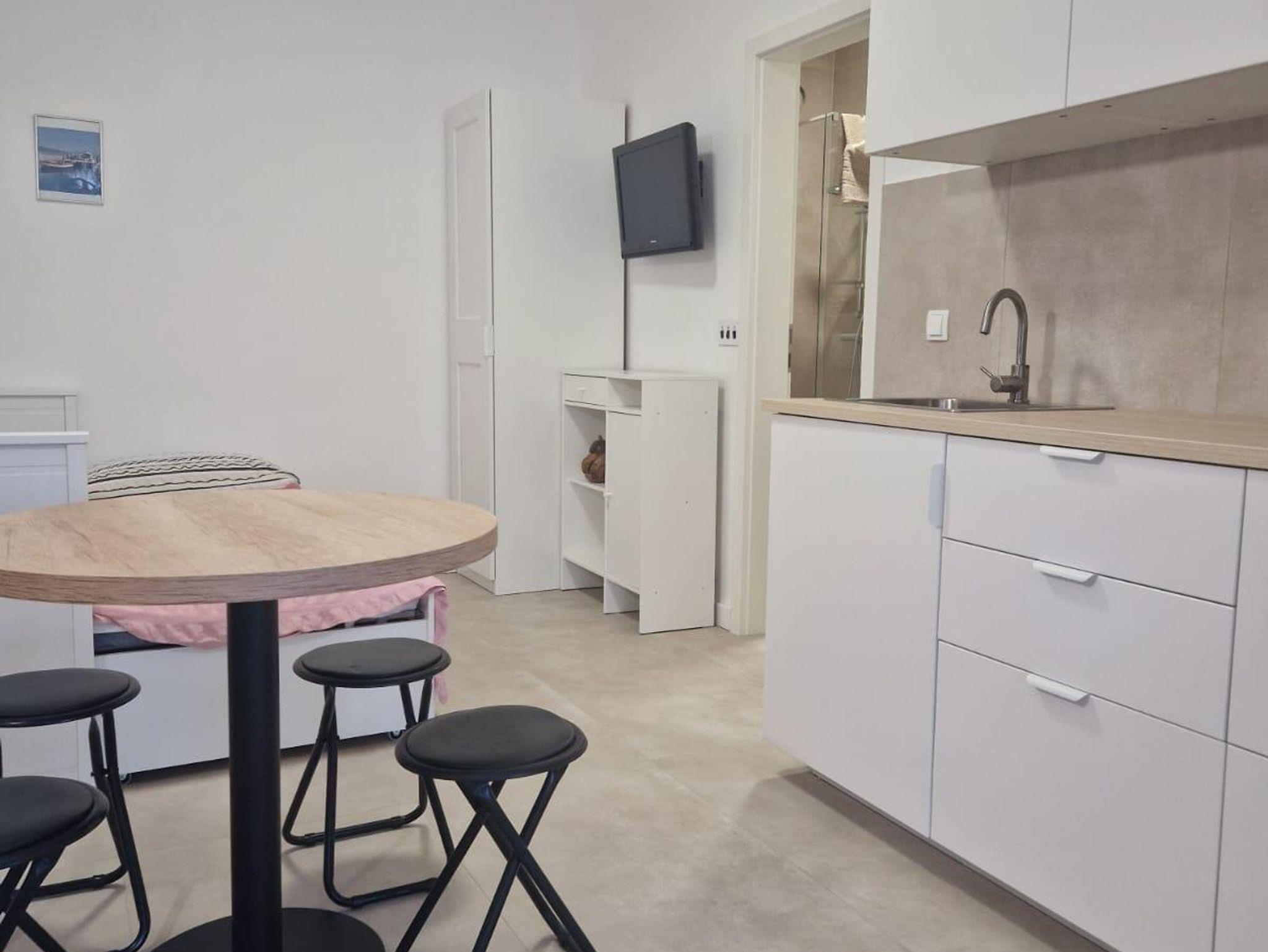 Ferienwohnung bietet Platz für 4 Gäste. Die Betten sind in Schlafzimmern, die es 1 gibt, und in Wohnzimmer, innerhalb einer Gesamtfläche von 25m2, angeordnet. Die Gäste haben eine eigene Terrasse zur Verfügung, auf der sie in warmen Sommernächten genießen können. Das Apartment bietet Meerblick. Es ist erlaubt, Speisen auf dem Gemeinschafts-Grill vorzubereiten. IM PREIS INBEGRIFFEN: Kurtaxe, Endreinigung, Parkplatz, Internet, Wäschewaschen. VERBINDLICHE ZUSÄTZLICHE KOSTEN: Aufzahlung für Kurzaufenthalte (prozentualer Zuschlag pro Nächtigungsanzahl: 30% - 1, 20% - 2, 10% - 3). UNVERBINDLICHE ZUSÄTZLICHE KOSTEN: Klimatisierung (0,50 € pro Stunde). Die Verfügbarkeit zusätzlicher Dienstleistungen in Ihrem reservierten Termin und die Preise derselben (falls nicht aufgeführt) müssen im Voraus überprüft werden. Zusätzliche Dienstleistungen die in der Zahlungsaufforderung nicht aufgeführt sind werden direkt beim Vermieter bezahlt, angenommen der Gast nutzt auch diese.