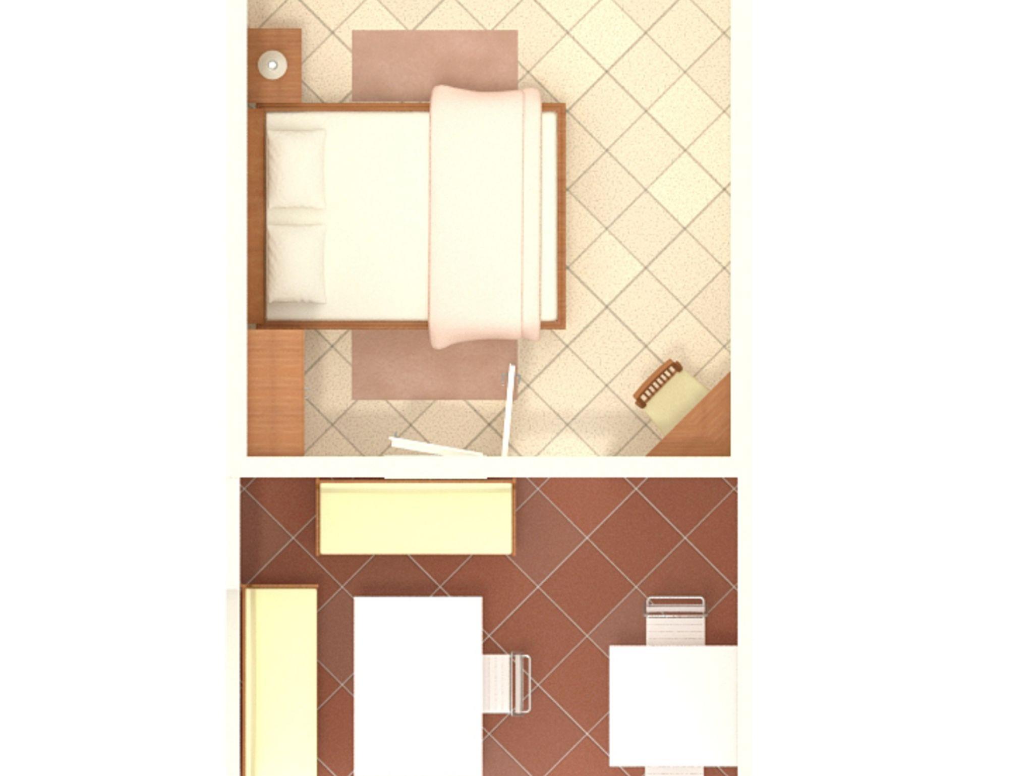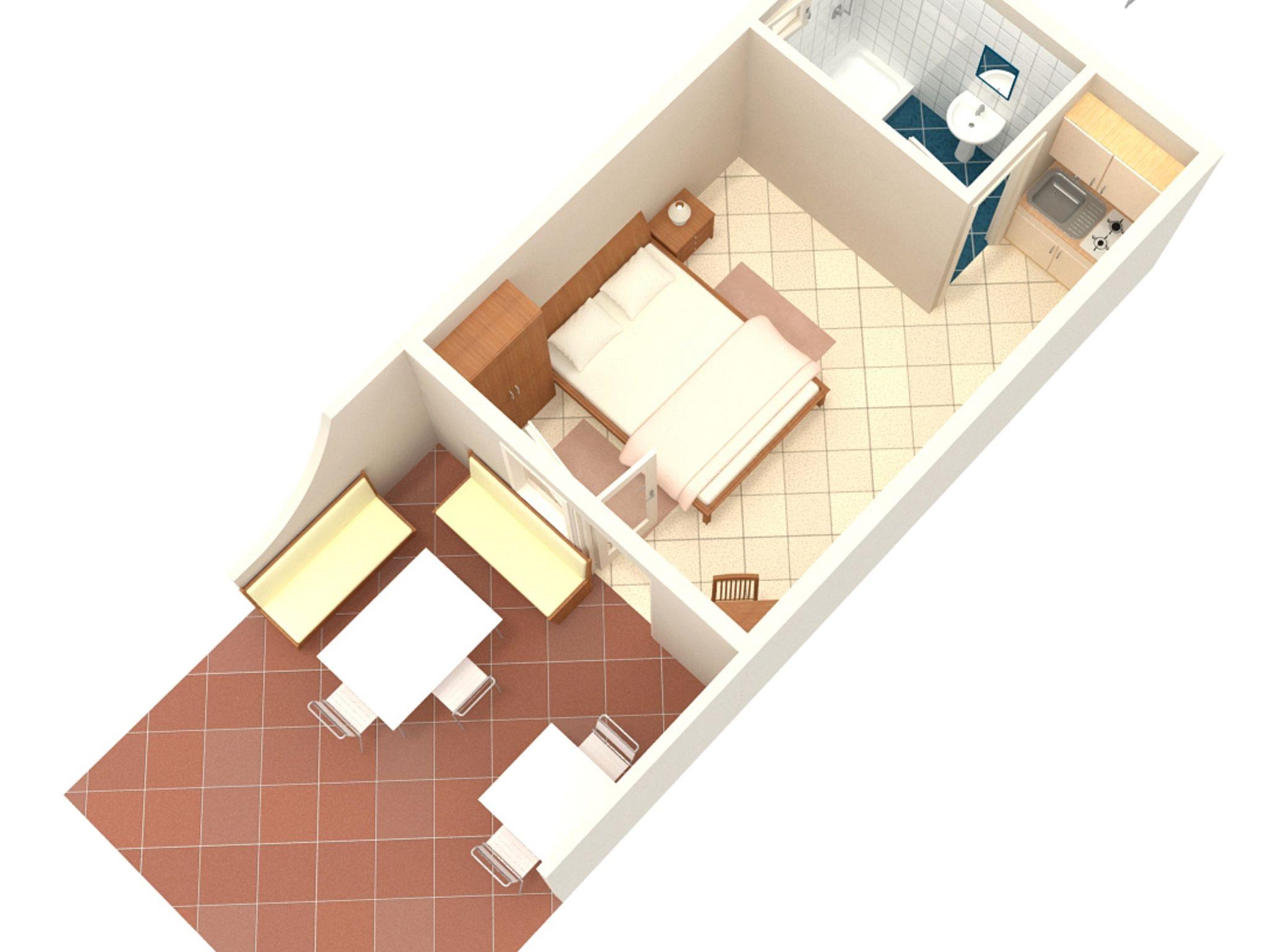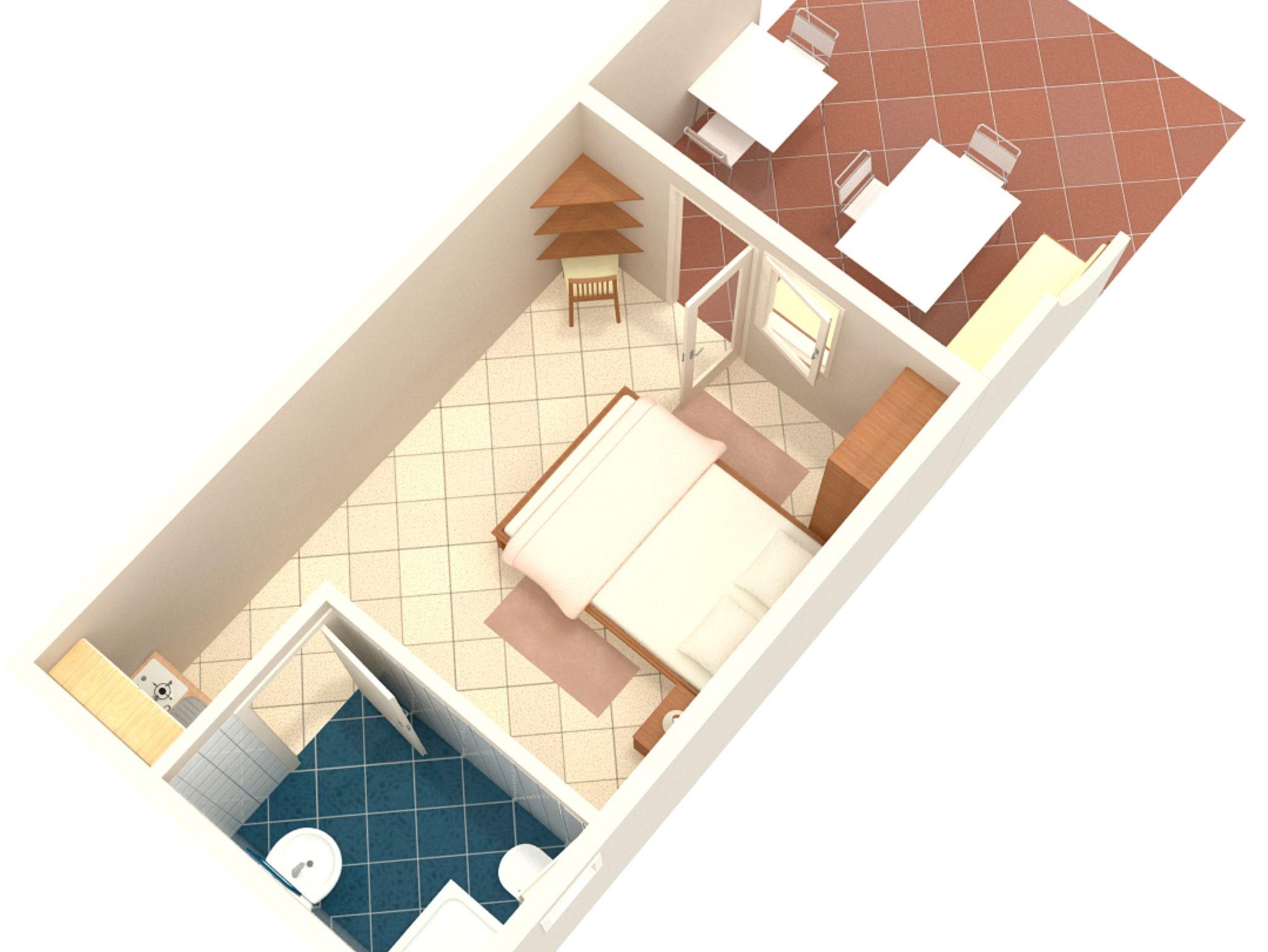 Studio bietet Platz für 2 Gäste. Die Betten sind in Schlafzimmern, die es 1 gibt, innerhalb einer Gesamtfläche von 20m2, angeordnet. Die Gäste haben eine eigene Terrasse zur Verfügung, auf der sie in warmen Sommernächten genießen können. Das Studio-Apartment bietet Meerblick. Es ist erlaubt, Speisen auf dem Gemeinschafts-Grill vorzubereiten. IM PREIS INBEGRIFFEN: Kurtaxe, Endreinigung, Parkplatz, Internet, Liegestühle. VERBINDLICHE ZUSÄTZLICHE KOSTEN: Aufzahlung für Kurzaufenthalte (prozentualer Zuschlag pro Nächtigungsanzahl: 30% - 1, 20% - 2, 10% - 3). UNVERBINDLICHE ZUSÄTZLICHE KOSTEN: Klimatisierung (5,00 € pro Nacht), 1 Bett für Kinder (5,00 € Person/Tag). Die Verfügbarkeit zusätzlicher Dienstleistungen in Ihrem reservierten Termin und die Preise derselben (falls nicht aufgeführt) müssen im Voraus überprüft werden. Zusätzliche Dienstleistungen die in der Zahlungsaufforderung nicht aufgeführt sind werden direkt beim Vermieter bezahlt, angenommen der Gast nutzt auch diese.