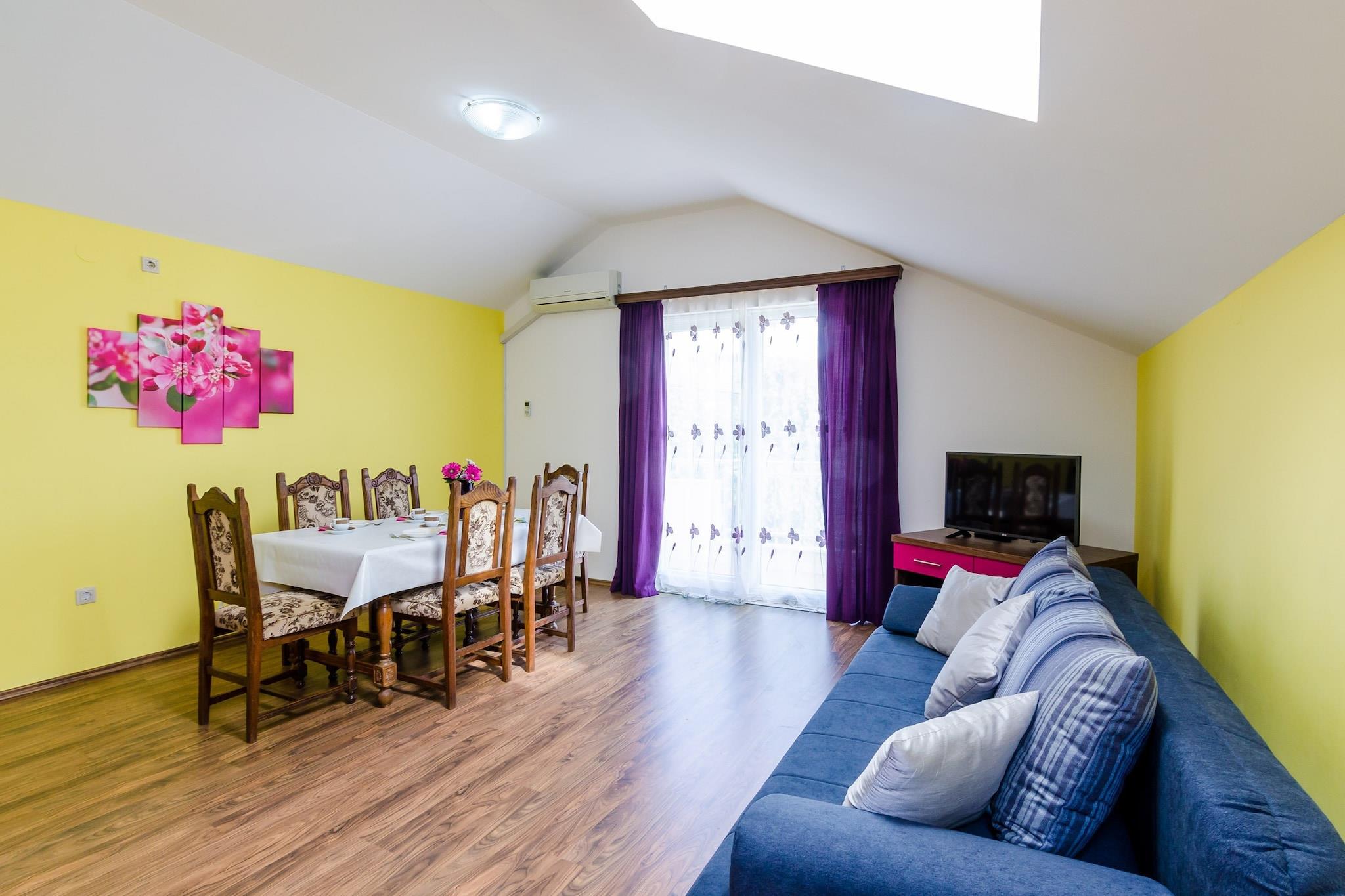 Apartments Mali Paradiso er beliggende i Mlini, en dejlig landsby nær historiske Dubrovnik. Fælles swimmingpool med udendørs bruser og toilet er til gæsternes rådighed. Alle gæster kan også benytte den fælles legeplads med trampolin, gynger og liggestole samt grillfaciliteter og udendørs køkken-spiseplads. Tøjvask er gratis. Bagageopbevaring før check-in og efter check-out er tilgængelig, så du kan udforsk området lidt mere før afgang.Gratis privat parkering er mulig på stedet.Denne dejlige toværelses lejlighed passer perfekt til fire personer.Den har gratis Wi-Fi, aircondition, fladskærms-satellit-tv. Køkkenet er fuldt udstyret og leveres med kombineret spiseplads og opholdsstue. Privat badeværelse med brusekabine. Møbleret balkon med pooludsigt er til gæsternes rådighed. Gæster kan nyde deres ophold på møbleret terrasse med fælles swimmingpool, legeplads og grillfaciliteter.Barneseng, hårtørrer og strygefaciliteter er tilgængelige efter anmodning.Apartments Mali Paradiso er beliggende i Mlini, en dejlig landsby nær historiske Dubrovnik. Mlini er en lille, idyllisk fiskerby beliggende halvvejs mellem Dubrovnik og Cavtat med intakt skønhed, rig vegetation og fantastiske strande samt historisk og kulturel arv. Den nærmeste strand ligger kun 400 meter væk. Også nede ved stranden er der mange barer og restauranter. Indkøbscenter med verdensomspændende mærker og et stort supermarked ligger også 400 meter væk. Nærmeste busstoppested ligger lige nede ad gaden. Afstanden til Dubrovnik lufthavn i Cilipi er 11,7 km.