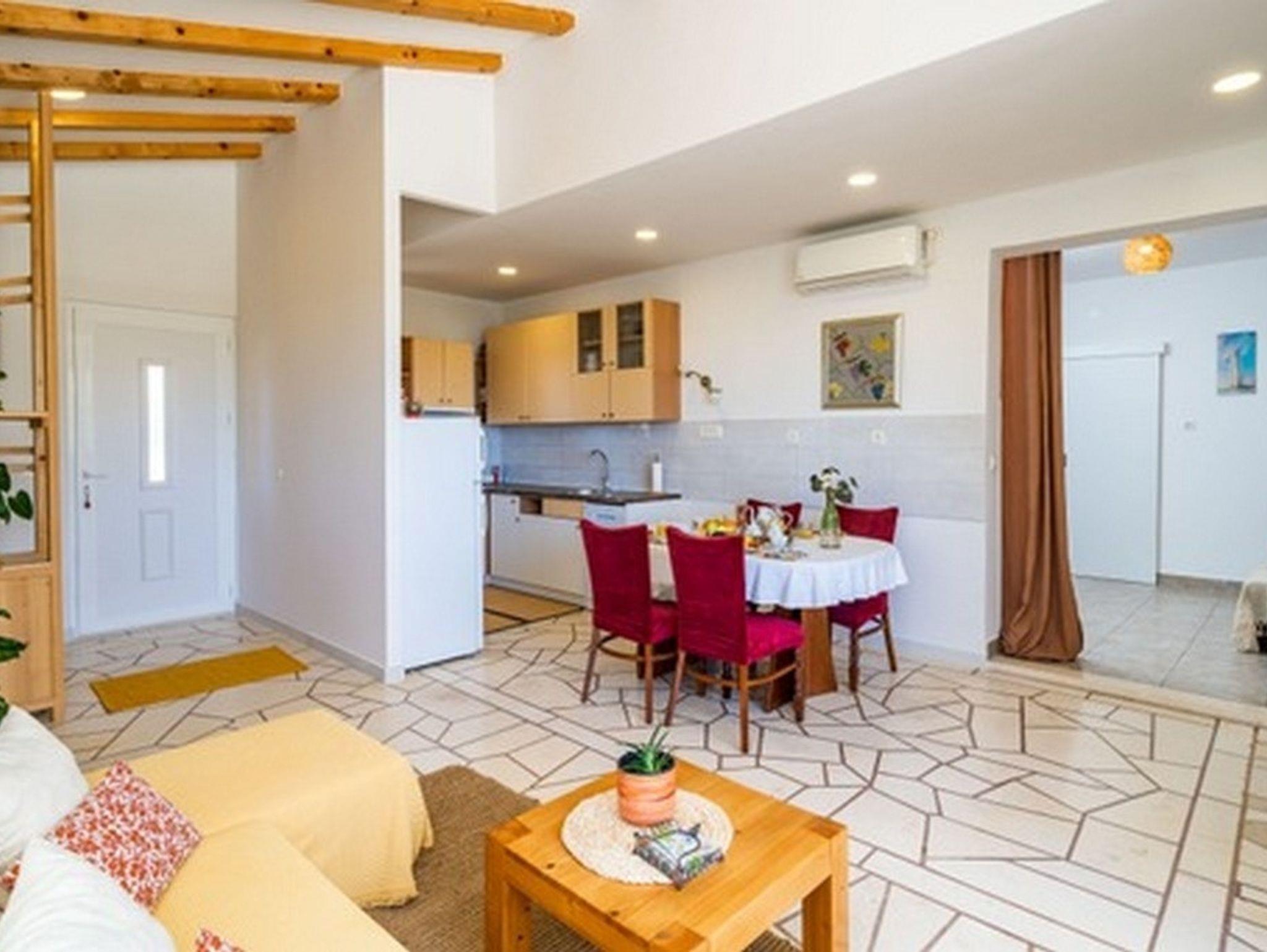 Ferienwohnung bietet Platz für 6 Gäste. Die Betten sind in Schlafzimmern, die es 2 gibt, und in Wohnzimmer, innerhalb einer Gesamtfläche von 63m2, angeordnet. Die Gäste haben eine eigene Terrasse zur Verfügung, auf der sie in warmen Sommernächten genießen können. Das Apartment bietet Meerblick. In der Unterkunftseinheit besteht die Möglichkeit des Mitbringens von Haustieren, und die Dienstleistung ist im Preis der Unterkunft enthalten. IM PREIS INBEGRIFFEN: Kurtaxe, Endreinigung, Klimatisierung, Zentralheizung, Parkplatz, Internet, Haustiere, Kinderbett, Zusatzbett, Bügeleisen, Bügelbrett, Föhn, Sonnenschirm. Die Verfügbarkeit zusätzlicher Dienstleistungen in Ihrem reservierten Termin und die Preise derselben (falls nicht aufgeführt) müssen im Voraus überprüft werden. Zusätzliche Dienstleistungen die in der Zahlungsaufforderung nicht aufgeführt sind werden direkt beim Vermieter bezahlt, angenommen der Gast nutzt auch diese. Ermäßigung auf den Grundpreis: Gratistag 14=13 (bei einem Aufenthalt von 14 Tagen oder mehr erhalten Sie einen Gratistag für den Aufenthalt bis 31.12.26).