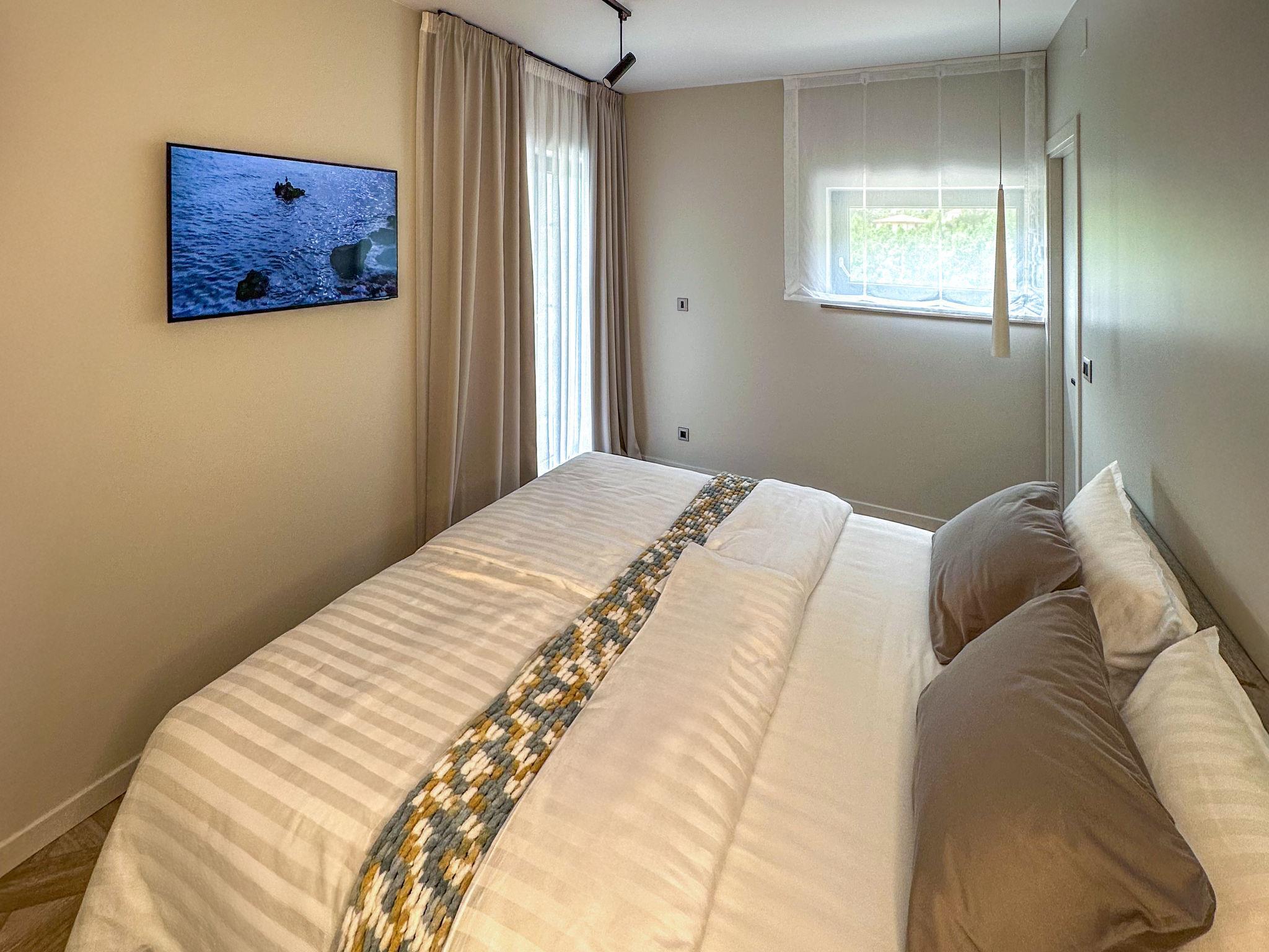 Villa "Villa Perla di Draga", 2 storeys, built in 2024. 700 m from the centre of Mošcenicka Draga, in a sunny position, 850 m from the sea, 850 m from the beach. Private: property 500 m2 (fenced) with lawn, swimming pool angular (6 x 3 m, depth 150 cm, seasonal availability: 01.May. - 30.Oct.) with internal staircase. Outdoor shower, terrace (40 m2), garden furniture, pool maintenance by the owner/gardener. In the house: internet access, central heating system, air conditioning, burglar alarm system, washing machine. Parking (for 2 cars) at the house on the premises. Shop 800 m, restaurant 250 m, bus stop 600 m, shingle beach, public bathing area 850 m. The owner does not accept any youth groups.