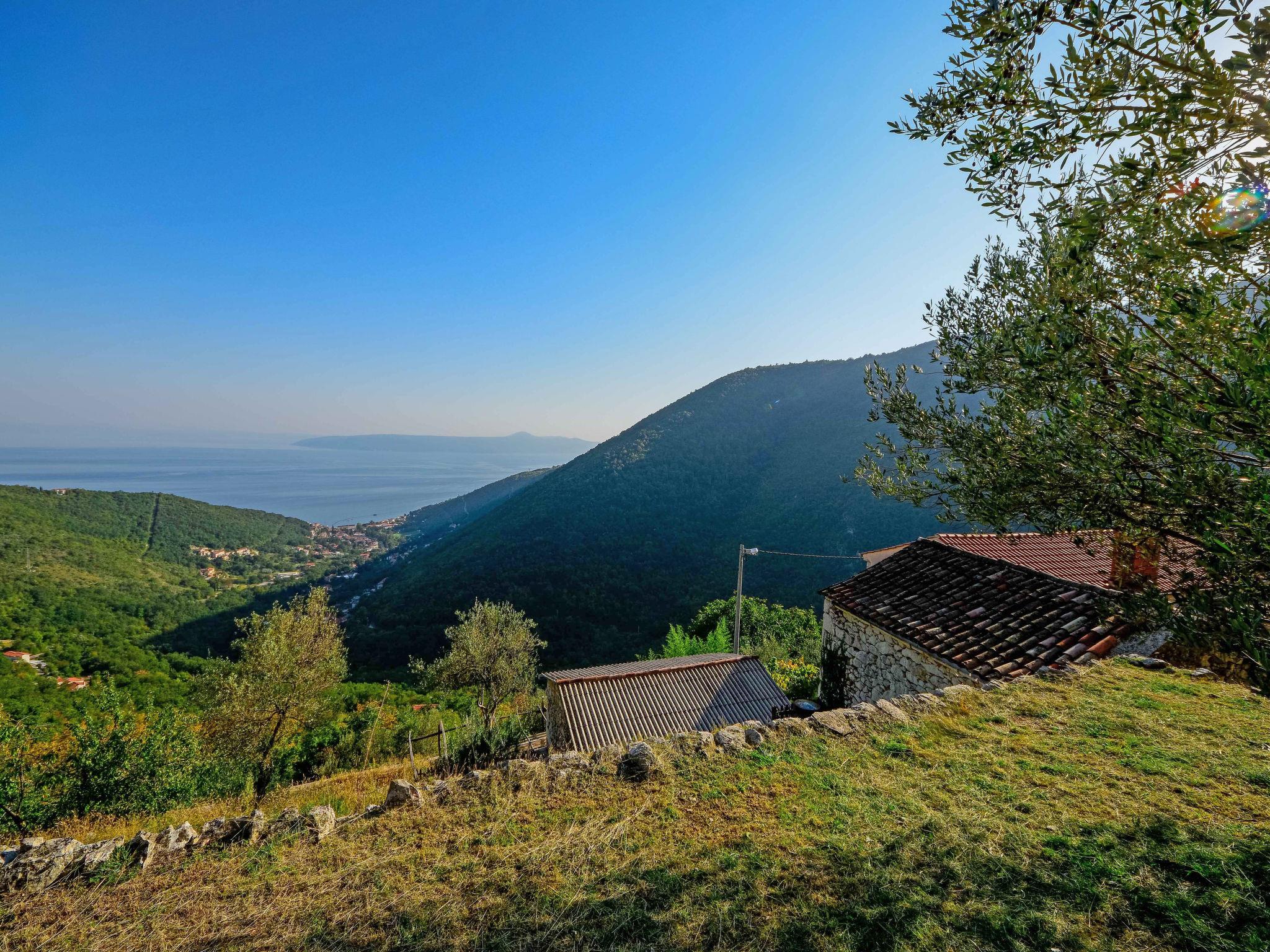 Semi-detached house "Stefi". In the hamlet Sucici 3 km from the centre of Mošcenicka Draga, in a quiet, sunny position on a slope, 3 km from the sea, 3 km from the beach, in a cul-de-sac, in the countryside. Private: terrace (30 m2), garden furniture, barbecue. In the house: internet access, washing machine. Steep, narrow motor access to 60 m from the house. Roofed, parking (for 2 cars) at 80 m. Shop 3 km, restaurant 3 km, bus stop 2.6 km, pebble beach 3 km, public bathing area 3 km. Ground floor is closed and not occupied.