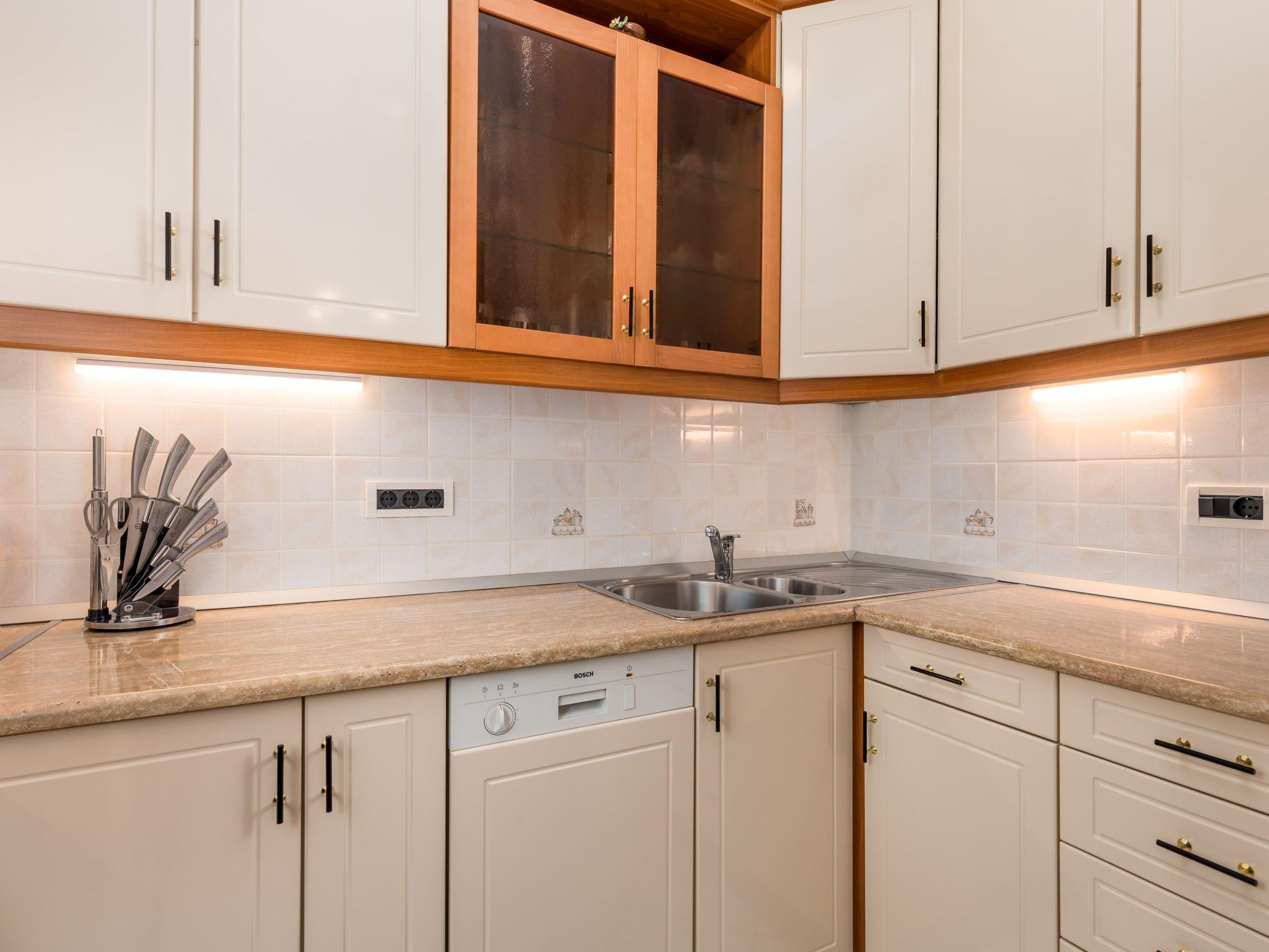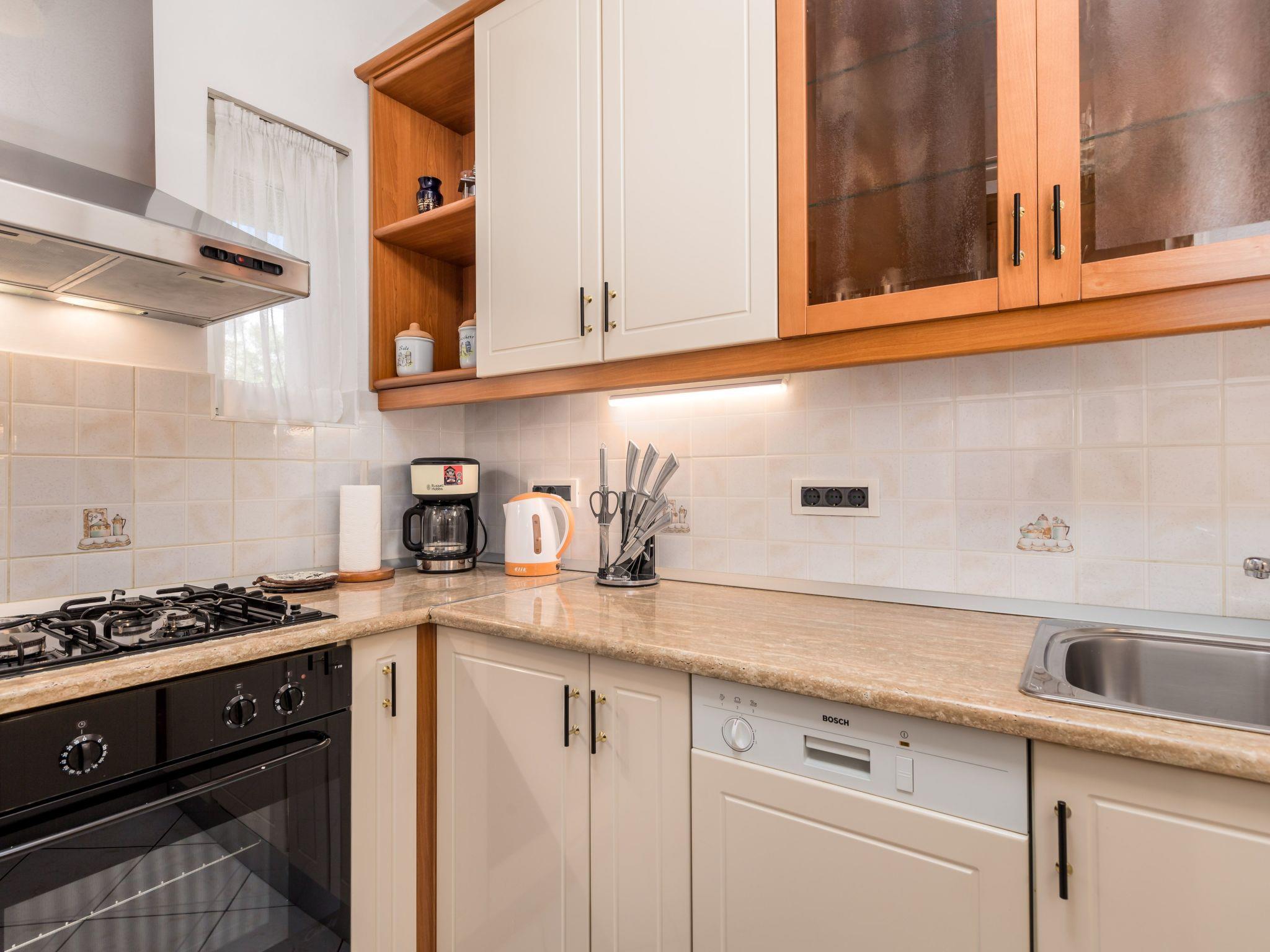 Inside, you'll find a well-appointed space designed for relaxation and convenience. Two cozy bedrooms are equipped with comfortable bedding; the first featuring a double bed (180 x 190cm) and a single bed (80 x 200cm), while the second boasts a double bed (160 x 200cm) and a sofa bed (100 x 190cm). Each room includes wardrobes and a TV for personal leisure. The apartment also hosts two bathrooms, complete with a shower or bath, WC, washing machine, and hairdryer ensuring your comfort and privacy. The modern kitchen is fully equipped with a stove, oven, extractor fan, kettle, coffee machine, dishwasher, fridge, as well as cookware and tableware adjacent to the dining room, creating the perfect setting for meal preparation and enjoyment.