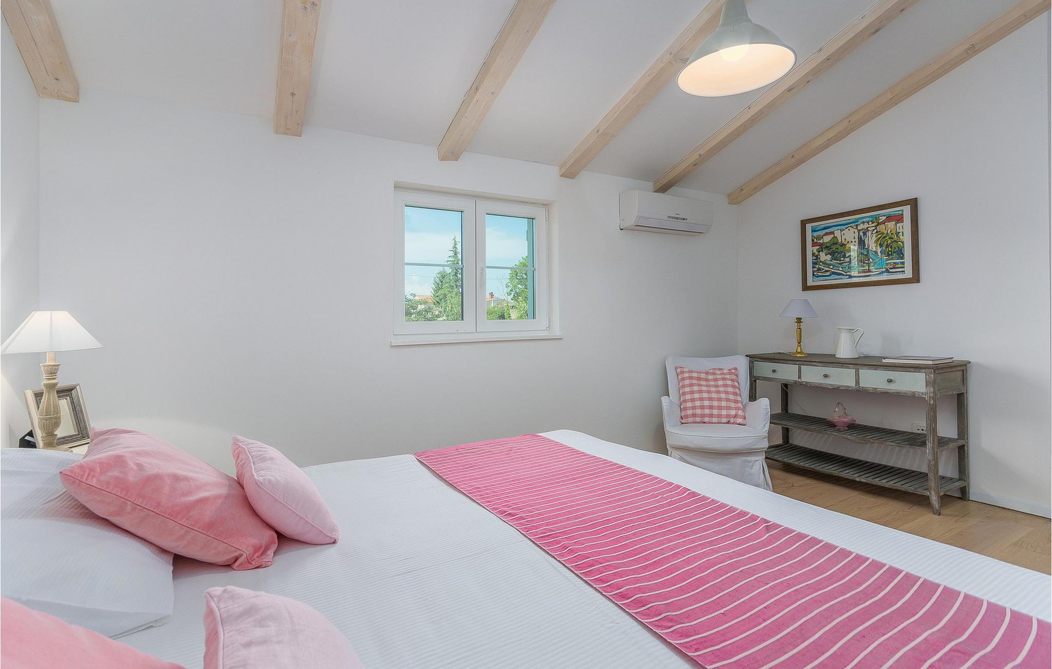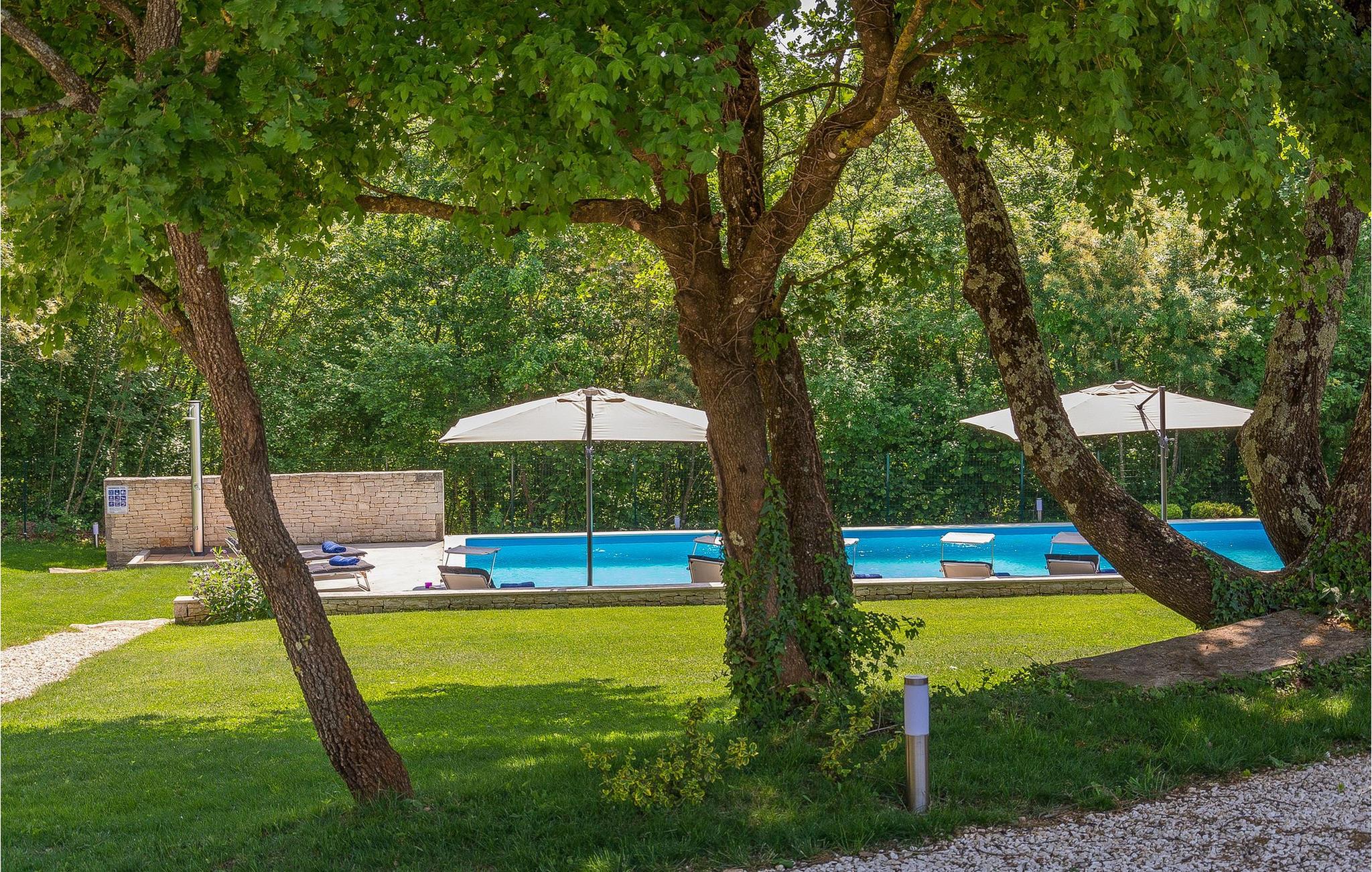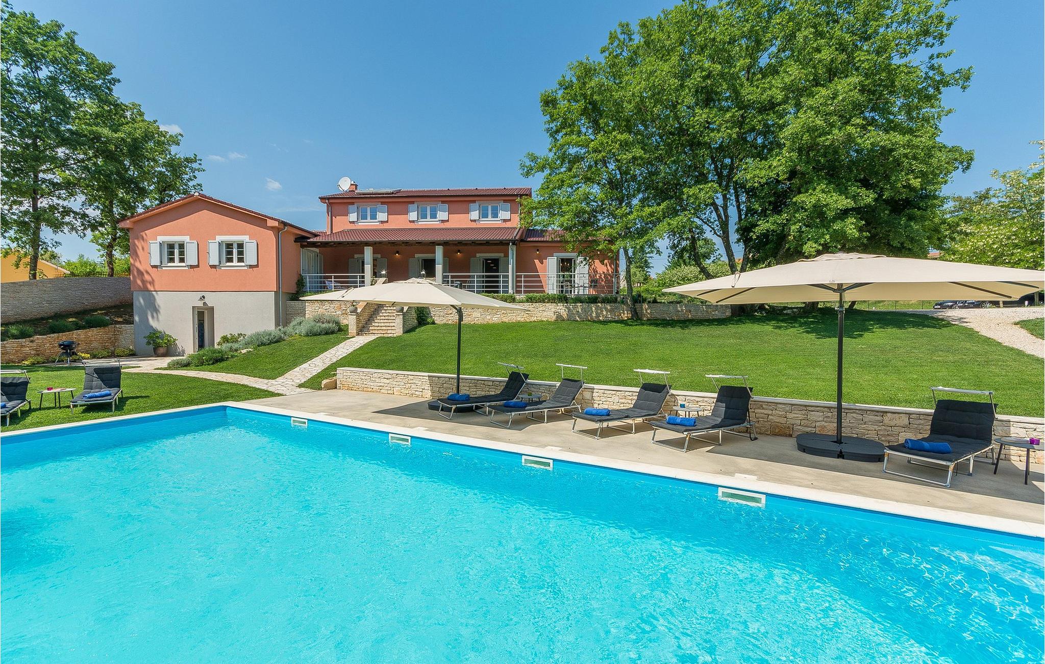 Denne storslåede villa ligger i den rolige landsby Modrusani, kun få minutter fra Kanfar og ikke langt fra Rovinj. Hvis du leder efter et roligt område i en bekvem beliggenhed nær Rovinjs historiske centrum, er denne smukke villa et perfekt valg for dig! Villaen består af fem komfortabelt indrettede soveværelser og - alle med private badeværelser. Soveværelserne er konceptuelt designet og har hver sin stil. Villaen er meget indbydende. Ejerne af huset har rejst meget og har indrettet huset med møbler, billeder, tæpper og andre artefakter fra forskellige lande. Det har aircondition, sauna og stort fuldt udstyret køkken. Udenfor villaen finder du en stor swimmingpool og en stor privat parkeringsplads. Villaen har et boligareal på 300 m2 og en stor terrasse med udendørs spiseplads. Med sin store have dækker den over 4000m2 jord. Der er masser af plads til solbadning omkring poolen. Vi efterlader altid det bedste til sidst - bag villaen finder du Putting Green, en 6-hullers golfbane til at træne putting og nyde dovne eftermiddage med din familie og venner. Der er også et golfbur på ejendommen, hvor du kan øve dine sving. Golfklubber er tilgængelige på stedet. Denne smukke villa er omgivet af en indhegnet middelhavshave. Den kan bruges hele året rundt og er designet til at være ekstremt energieffektiv. Det har certifikatet "Energy Passive House". Villaen er også udstyret med WiFi og satellit-tv. Villaen har ideelt sovepladser til 10 personer. For hver ekstra person (+2) er der et ekstra gebyr på 100 euro per person per uge. * Gæsterne råder over en 4000 m² stor have og en stor pool på 12 x 5,5 m, samt et stort og komfortabelt hus, der vil give dem mulighed for at holde en god ferie, selvom de holder social afstand. Det omkringliggende landskab indbyder til lange gå- og cykelture gennem landsbyer og vinmarker og er stadig ikke langt fra havet.