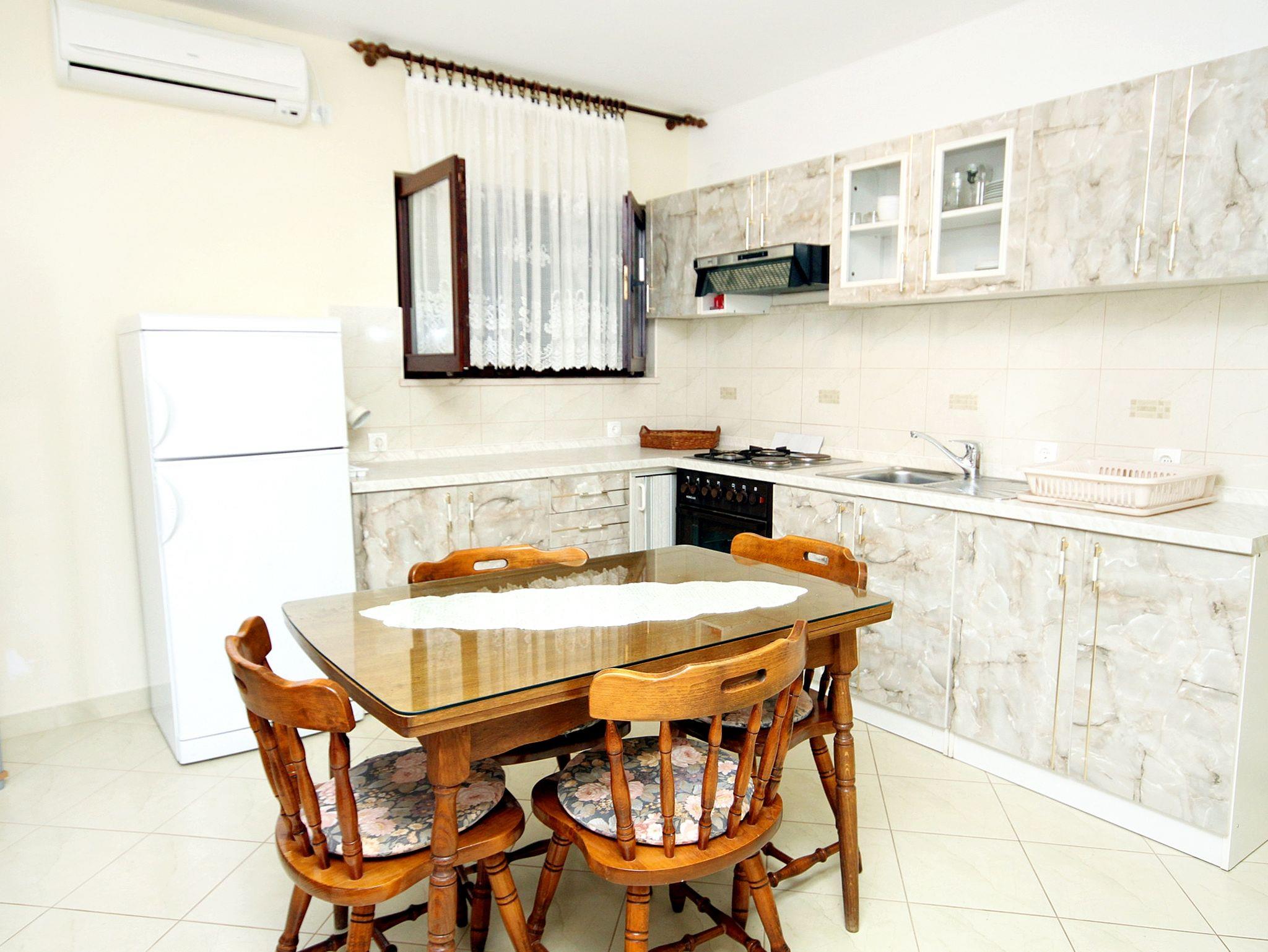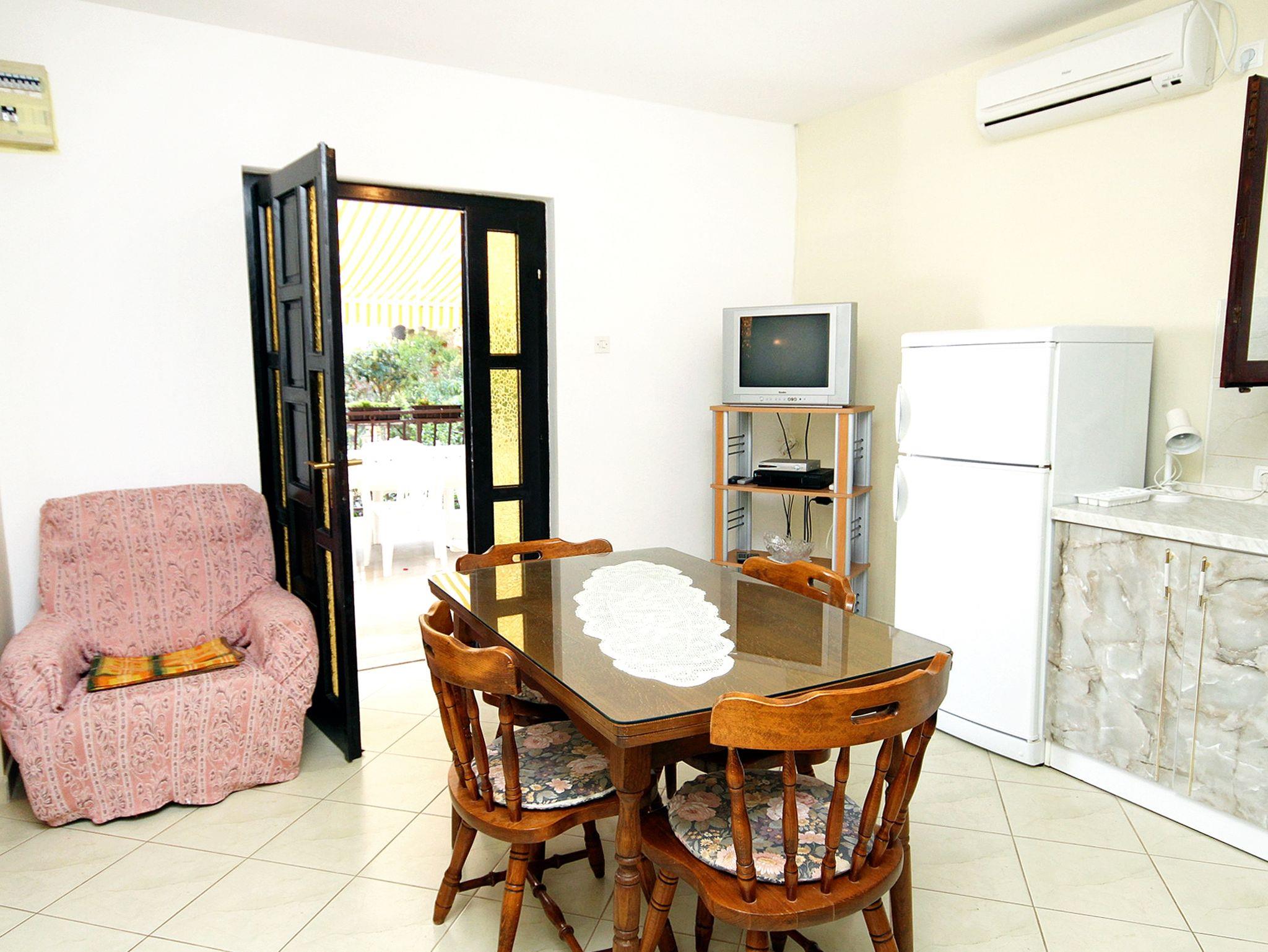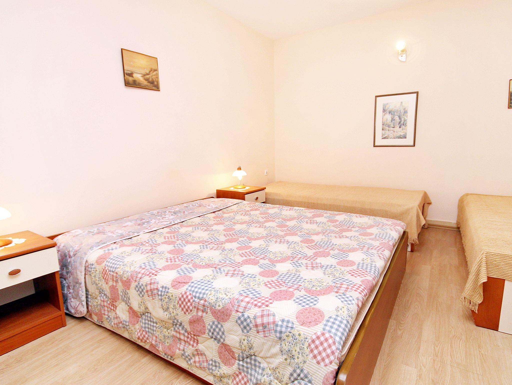 Ferienwohnung bietet Platz für 4 Gäste. Die Betten sind in Schlafzimmern, die es 1 gibt, innerhalb einer Gesamtfläche von 43m2, angeordnet. Die Gäste haben eine eigene Terrasse zur Verfügung, auf der sie in warmen Sommernächten genießen können. Das Apartment bietet Meerblick. Es ist erlaubt, Speisen auf dem Gemeinschafts-Grill vorzubereiten. IM PREIS INBEGRIFFEN: Kurtaxe, Endreinigung, Klimatisierung, Parkplatz, Internet, Kinderbett, Bügelbrett, Föhn. Die Verfügbarkeit zusätzlicher Dienstleistungen in Ihrem reservierten Termin und die Preise derselben (falls nicht aufgeführt) müssen im Voraus überprüft werden. Zusätzliche Dienstleistungen die in der Zahlungsaufforderung nicht aufgeführt sind werden direkt beim Vermieter bezahlt, angenommen der Gast nutzt auch diese. Ermäßigung auf den Grundpreis: Gratistag 14=13 (bei einem Aufenthalt von 14 Tagen oder mehr erhalten Sie einen Gratistag für den Aufenthalt bis 31.12.26).