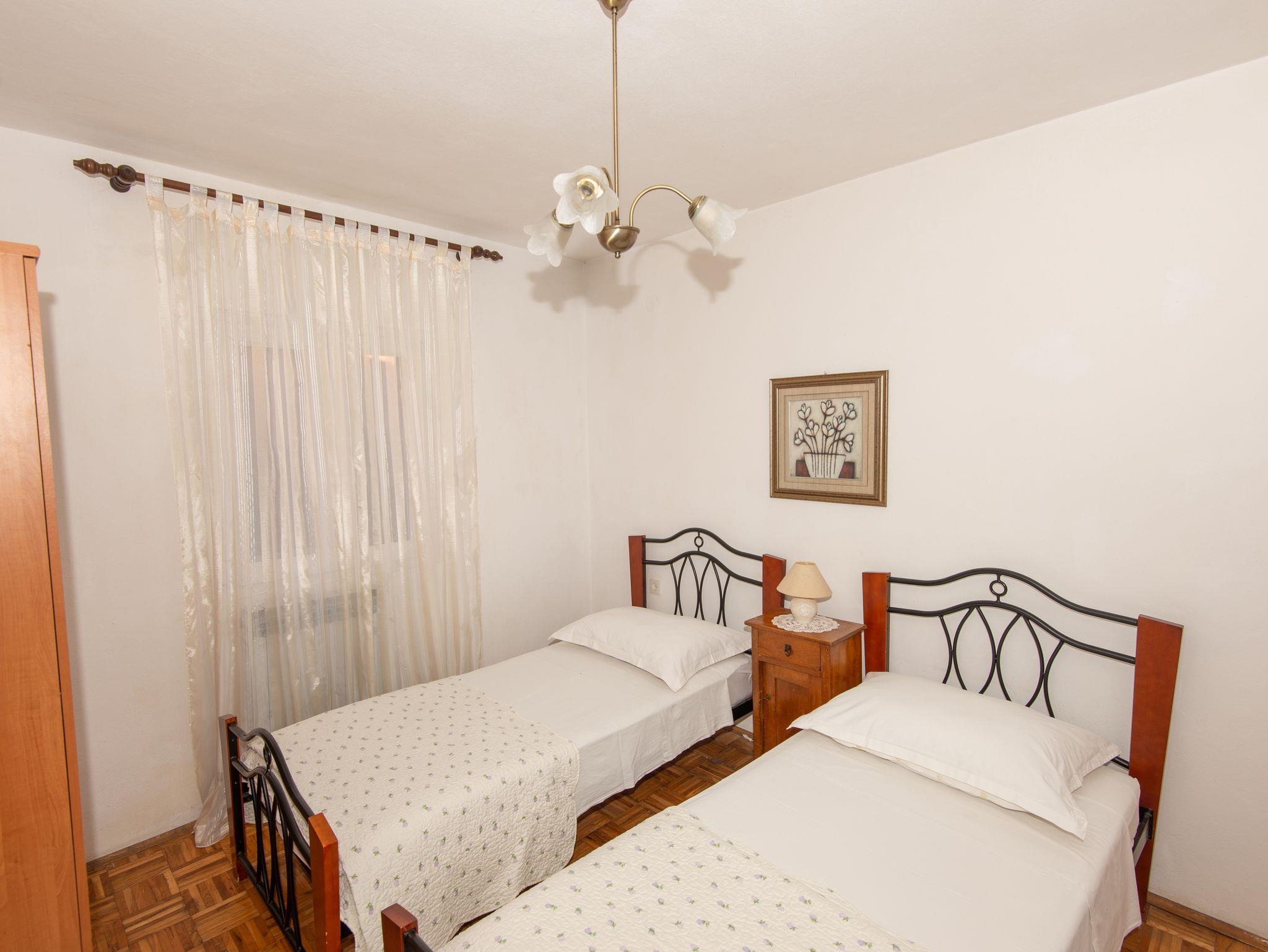 Ferienwohnung bietet Platz für 5 Gäste. Die Betten sind in Schlafzimmern, die es 3 gibt, innerhalb einer Gesamtfläche von 92m2, angeordnet. Die Gäste haben eine eigene Terrasse zur Verfügung, auf der sie in warmen Sommernächten genießen können. Das Apartment bietet Meerblick. Es ist erlaubt, Speisen auf dem Gemeinschafts-Grill vorzubereiten. In der Unterkunftseinheit besteht die Möglichkeit des Mitbringens von Haustieren gegen Aufpreis. IM PREIS INBEGRIFFEN: Kurtaxe, Endreinigung, Klimatisierung, Parkplatz, Internet, Bügeleisen, Bügelbrett, Sonnenschirm. VERBINDLICHE ZUSÄTZLICHE KOSTEN: Aufzahlung für Kurzaufenthalte (prozentualer Zuschlag pro Nächtigungsanzahl: 30% - 1, 20% - 2, 10% - 3). UNVERBINDLICHE ZUSÄTZLICHE KOSTEN: Haustiere (5,00 € pro Nacht). Die Verfügbarkeit zusätzlicher Dienstleistungen in Ihrem reservierten Termin und die Preise derselben (falls nicht aufgeführt) müssen im Voraus überprüft werden. Zusätzliche Dienstleistungen die in der Zahlungsaufforderung nicht aufgeführt sind werden direkt beim Vermieter bezahlt, angenommen der Gast nutzt auch diese.