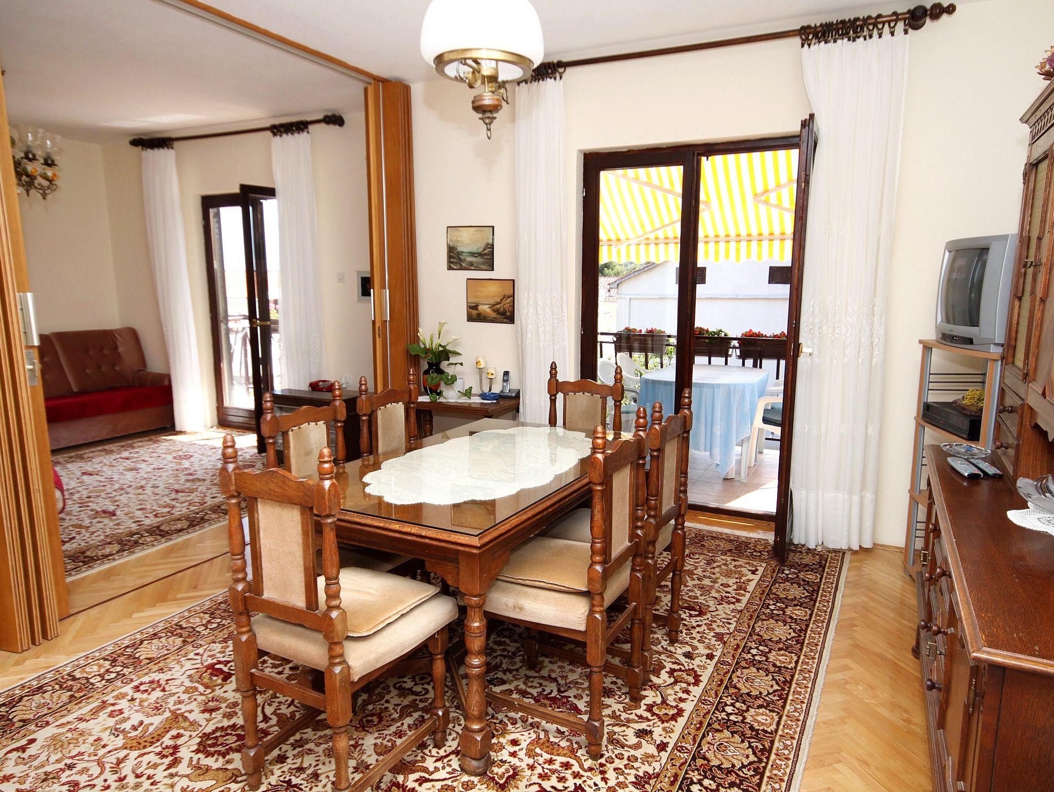 Ferienwohnung bietet Platz für 4 Gäste. Die Betten sind in Schlafzimmern, die es 1 gibt, und in Wohnzimmer, innerhalb einer Gesamtfläche von 58m2, angeordnet. Die Gäste haben eine eigene Terrasse zur Verfügung, auf der sie in warmen Sommernächten genießen können. Das Apartment bietet Meerblick. Es ist erlaubt, Speisen auf dem Gemeinschafts-Grill vorzubereiten. IM PREIS INBEGRIFFEN: Kurtaxe, Endreinigung, Klimatisierung, Parkplatz, Internet, Kinderbett, Bügelbrett, Föhn. Die Verfügbarkeit zusätzlicher Dienstleistungen in Ihrem reservierten Termin und die Preise derselben (falls nicht aufgeführt) müssen im Voraus überprüft werden. Zusätzliche Dienstleistungen die in der Zahlungsaufforderung nicht aufgeführt sind werden direkt beim Vermieter bezahlt, angenommen der Gast nutzt auch diese. Ermäßigung auf den Grundpreis: Gratistag 14=13 (bei einem Aufenthalt von 14 Tagen oder mehr erhalten Sie einen Gratistag für den Aufenthalt bis 31.12.26).
