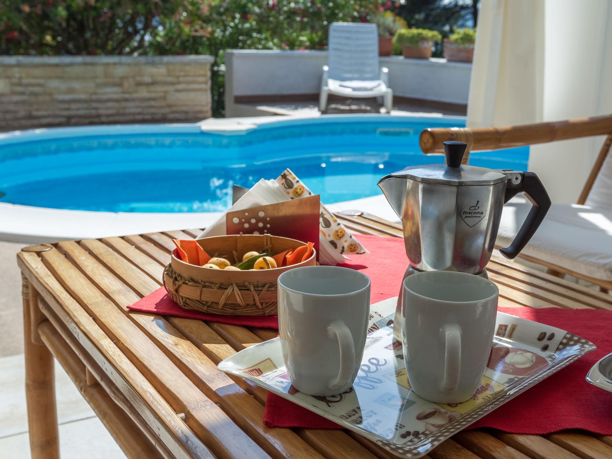 Single-family house "Maya", surrounded by trees. Outside the resort, in a quiet position, 80 m from the sea, 80 m from the beach. Private: property 600 m2 (fenced), well-kept garden with wildlife garden and trees, swimming pool (15 m2, depth 120 cm, seasonal availability: 30.May. - 12.Oct.). Unconventional pool shape. Outdoor shower, arbour, barbecue. In the house: internet access, washing machine. Parking at the house on the premises. Shop 400 m, restaurant 600 m, bus stop 57.5 km, pebble beach 250 m, rocky beach 80 m.