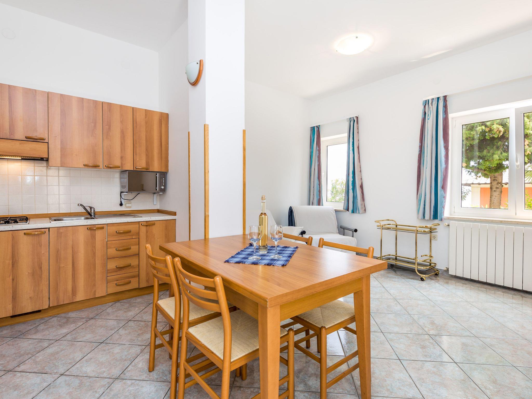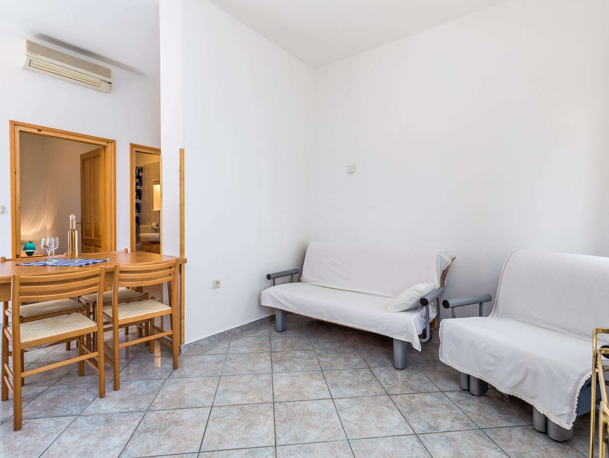 Ferienwohnung bietet Platz für 4 Gäste. Die Betten sind in Schlafzimmern, die es 1 gibt, und in Wohnzimmer, innerhalb einer Gesamtfläche von 32m2, angeordnet. Die Gäste haben eine eigene Terrasse zur Verfügung, auf der sie in warmen Sommernächten genießen können. Das Apartment bietet Meerblick. Es ist erlaubt, Speisen auf dem Gemeinschafts-Grill vorzubereiten. In der Unterkunftseinheit besteht die Möglichkeit des Mitbringens von Haustieren gegen Aufpreis. IM PREIS INBEGRIFFEN: Kurtaxe, Endreinigung, Klimatisierung, Zentralheizung, Parkplatz, Internet, Kinderbett, Bügeleisen, Bügelbrett, Föhn, tragbarer Grill. VERBINDLICHE ZUSÄTZLICHE KOSTEN: Aufzahlung für Kurzaufenthalte (prozentualer Zuschlag pro Nächtigungsanzahl: 30% - 1, 20% - 2, 10% - 3). UNVERBINDLICHE ZUSÄTZLICHE KOSTEN: Wäschewaschen (15,00 € Waschen), Haustiere (10,00 € pro Nacht). Die Verfügbarkeit zusätzlicher Dienstleistungen in Ihrem reservierten Termin und die Preise derselben (falls nicht aufgeführt) müssen im Voraus überprüft werden. Zusätzliche Dienstleistungen die in der Zahlungsaufforderung nicht aufgeführt sind werden direkt beim Vermieter bezahlt, angenommen der Gast nutzt auch diese. Ermäßigung auf den Grundpreis: Gratistag 21=19 (bei einem Aufenthalt von 21 Tagen oder mehr erhalten Sie 2 Gratistage für den Aufenthalt bis 31.12.26).