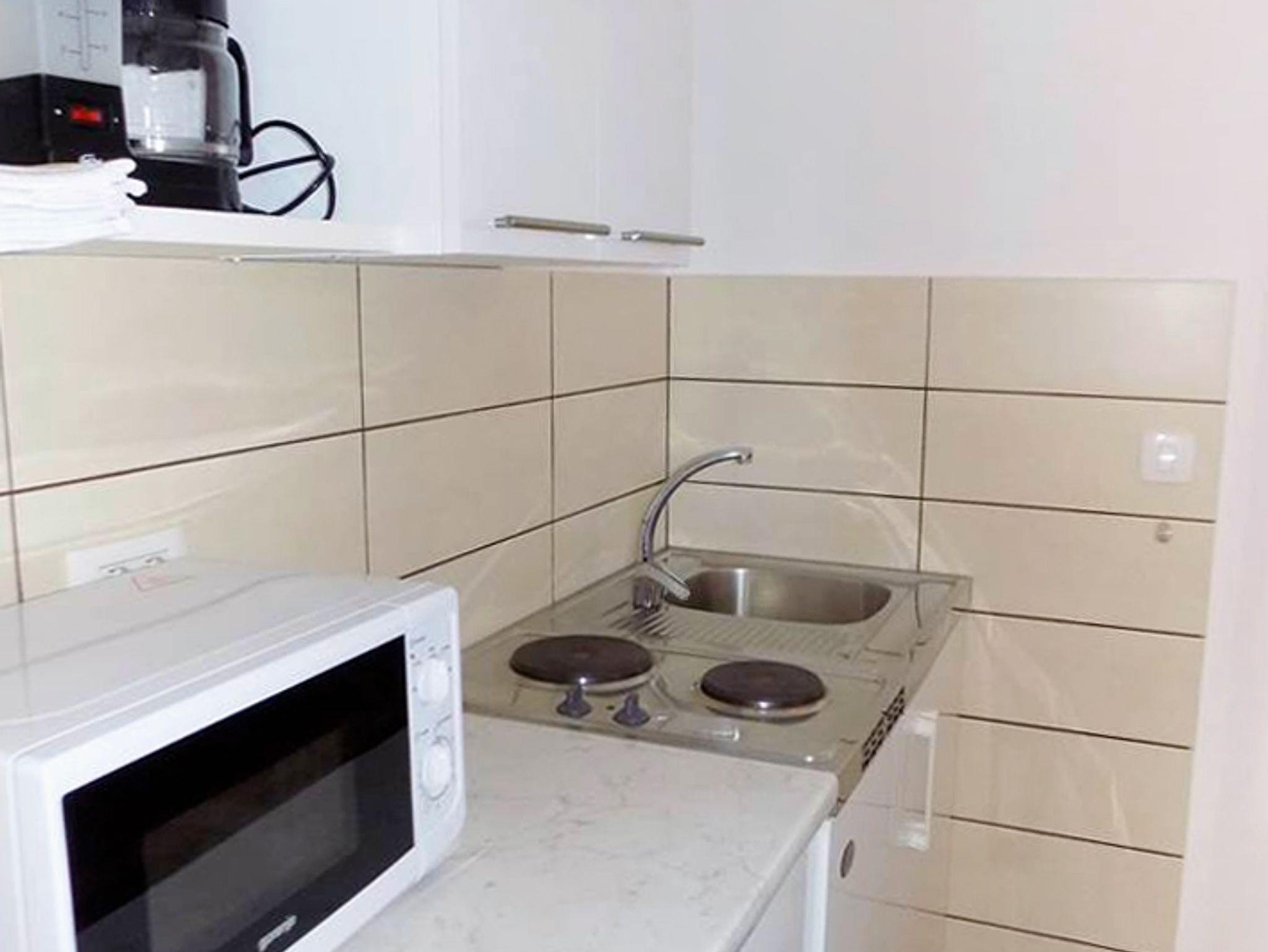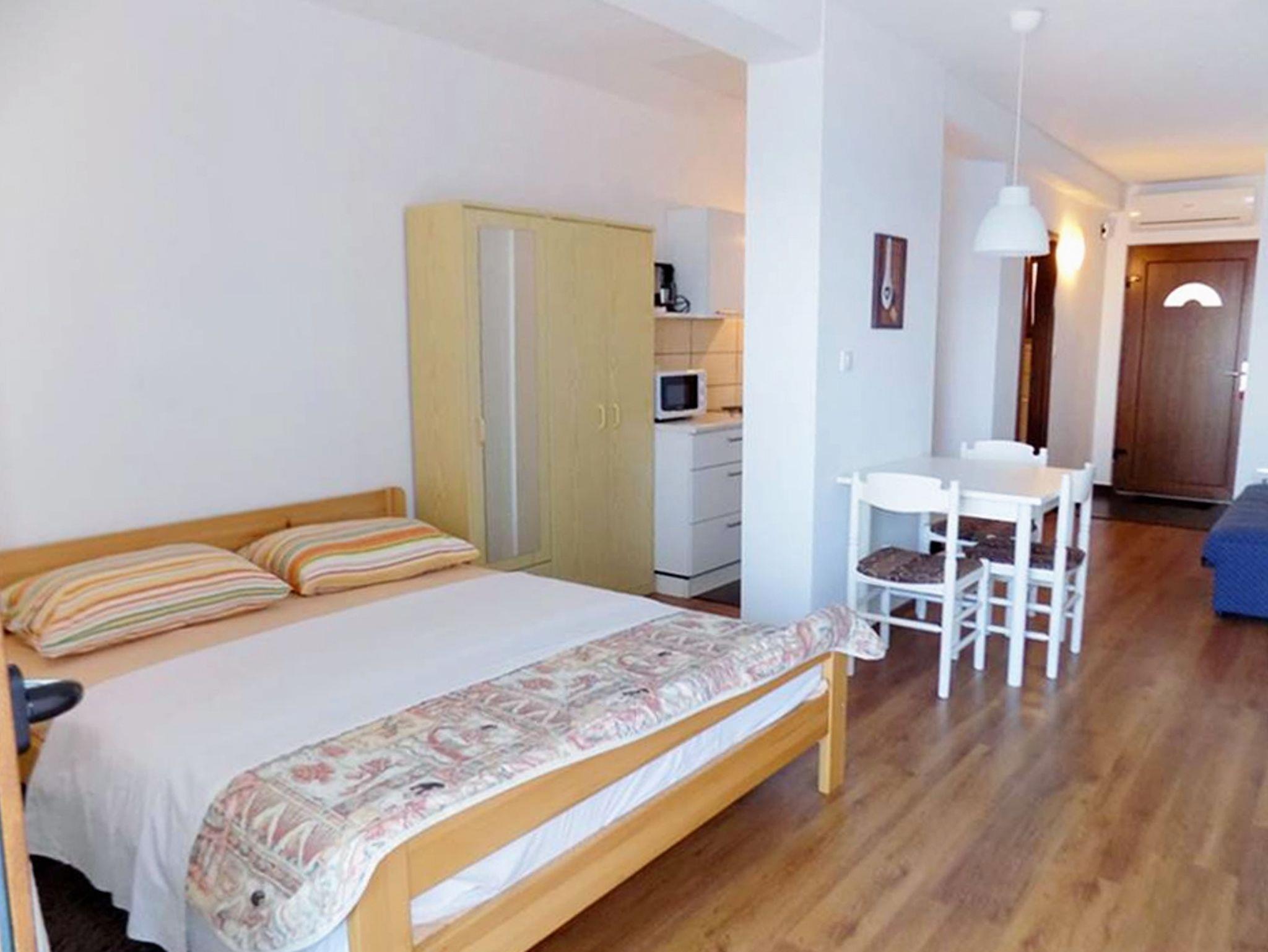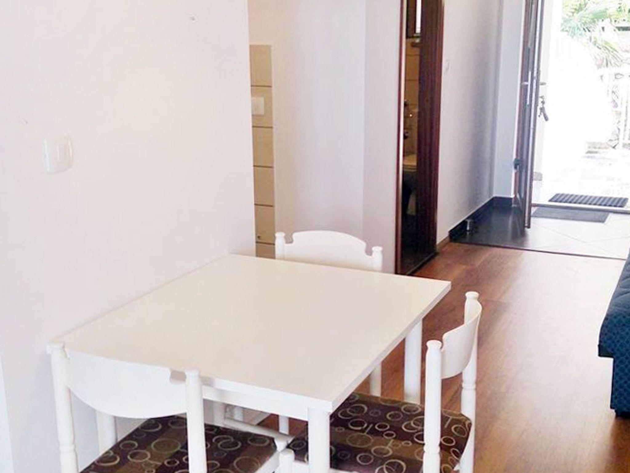 Studio bietet Platz für 3 Gäste. Die Betten sind in Schlafzimmern, die es 1 gibt, und in Esszimmer, innerhalb einer Gesamtfläche von 25m2, angeordnet. Die Gäste haben eine eigene Terrasse zur Verfügung, auf der sie in warmen Sommernächten genießen können. Das Studio-Apartment bietet Meerblick. Es ist erlaubt, Speisen auf dem Gemeinschafts-Grill vorzubereiten. IM PREIS INBEGRIFFEN: Kurtaxe, Endreinigung, Parkplatz, Internet, Bügeleisen, Bügelbrett, Föhn, tragbarer Grill. VERBINDLICHE ZUSÄTZLICHE KOSTEN: Aufzahlung für Kurzaufenthalte (prozentualer Zuschlag pro Nächtigungsanzahl: 30% - 1, 20% - 2, 10% - 3). UNVERBINDLICHE ZUSÄTZLICHE KOSTEN: Klimatisierung (7,00 € pro Nacht). Die Verfügbarkeit zusätzlicher Dienstleistungen in Ihrem reservierten Termin und die Preise derselben (falls nicht aufgeführt) müssen im Voraus überprüft werden. Zusätzliche Dienstleistungen die in der Zahlungsaufforderung nicht aufgeführt sind werden direkt beim Vermieter bezahlt, angenommen der Gast nutzt auch diese.