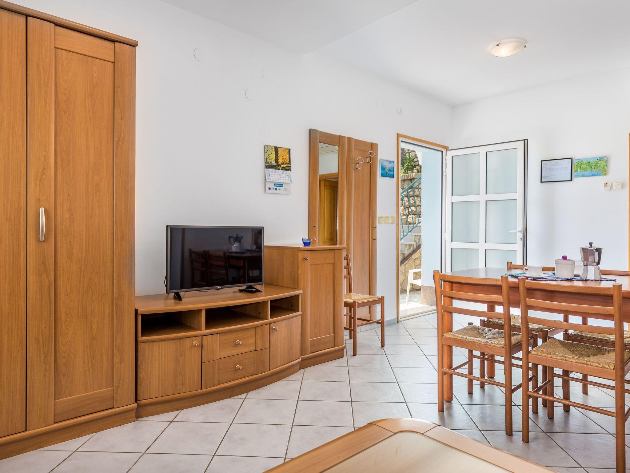Ferienwohnung bietet Platz für 4 Gäste. Die Betten sind in Schlafzimmern, die es 1 gibt, und in Wohnzimmer, innerhalb einer Gesamtfläche von 43m2, angeordnet. Die Gäste haben eine eigene Terrasse zur Verfügung, auf der sie in warmen Sommernächten genießen können. Das Apartment bietet Meerblick. Es ist erlaubt, Speisen auf dem Gemeinschafts-Grill vorzubereiten. In der Unterkunftseinheit besteht die Möglichkeit des Mitbringens von Haustieren gegen Aufpreis. IM PREIS INBEGRIFFEN: Kurtaxe, Endreinigung, Klimatisierung, Zentralheizung, Parkplatz, Internet, Kinderbett, Bügeleisen, Bügelbrett, Föhn, tragbarer Grill. VERBINDLICHE ZUSÄTZLICHE KOSTEN: Aufzahlung für Kurzaufenthalte (prozentualer Zuschlag pro Nächtigungsanzahl: 30% - 1, 20% - 2, 10% - 3). UNVERBINDLICHE ZUSÄTZLICHE KOSTEN: Wäschewaschen (15,00 € Waschen), Haustiere (10,00 € pro Nacht). Die Verfügbarkeit zusätzlicher Dienstleistungen in Ihrem reservierten Termin und die Preise derselben (falls nicht aufgeführt) müssen im Voraus überprüft werden. Zusätzliche Dienstleistungen die in der Zahlungsaufforderung nicht aufgeführt sind werden direkt beim Vermieter bezahlt, angenommen der Gast nutzt auch diese. Ermäßigung auf den Grundpreis: Gratistag 21=19 (bei einem Aufenthalt von 21 Tagen oder mehr erhalten Sie 2 Gratistage für den Aufenthalt bis 31.12.26).