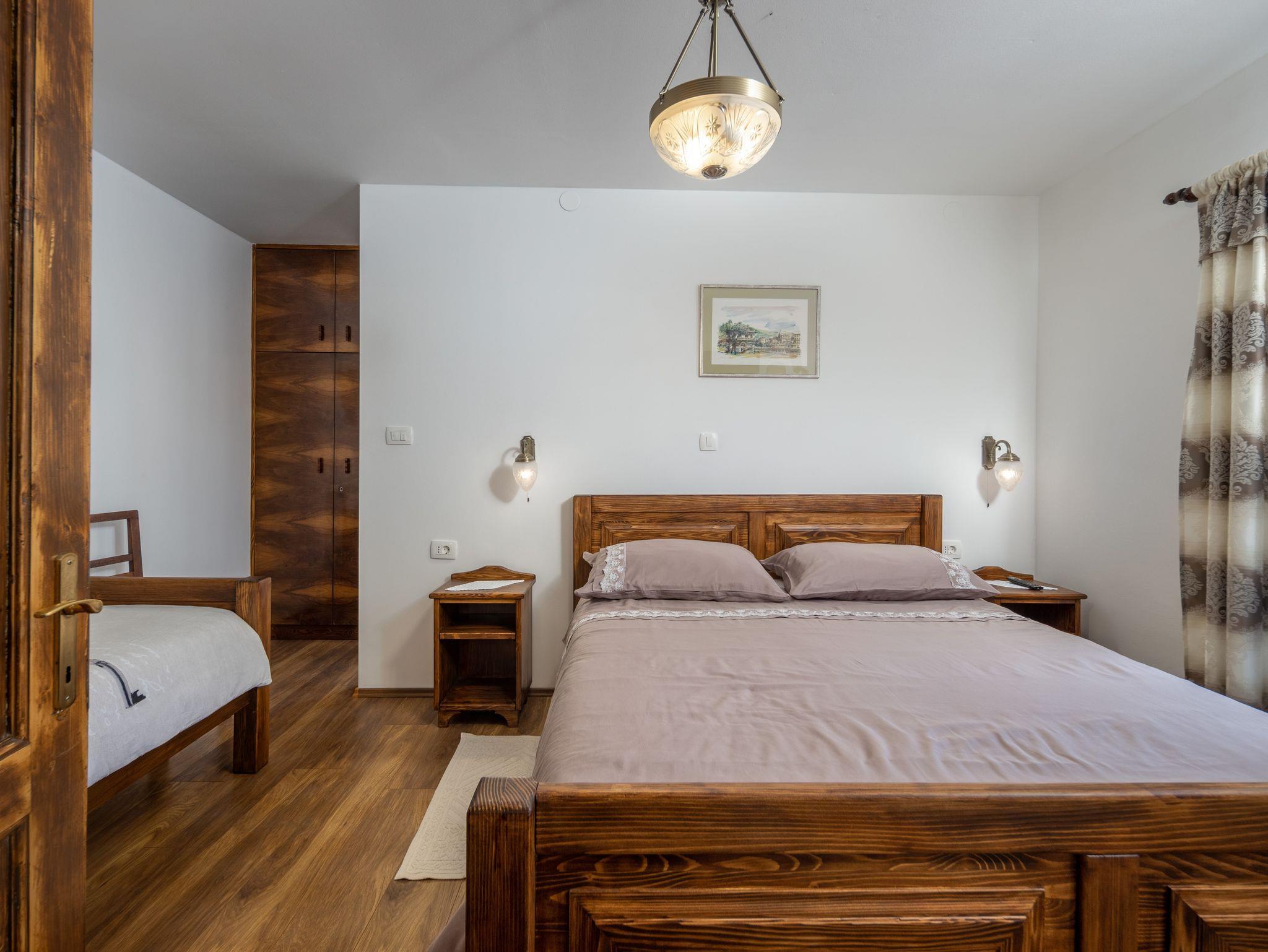 Haus bietet Platz für 7 Gäste. Die Betten sind in Schlafzimmern, die es 2 gibt, und in Wohnzimmer, innerhalb einer Gesamtfläche von 62m2, angeordnet. Die Gäste haben eine eigene Terrasse zur Verfügung, auf der sie in warmen Sommernächten genießen können. Für vollen Genuss und Entspannung gibt es einen privaten Grill für Gäste dieser Unterkunft. Während ihres Aufenthalts können sich Gäste im privaten Schwimmbad entspannen. IM PREIS INBEGRIFFEN: Kurtaxe, Endreinigung, Klimatisierung, Pool, Parkplatz, Internet, Kinderbett, Bügeleisen, Bügelbrett, Föhn, Sonnenschirm. UNVERBINDLICHE ZUSÄTZLICHE KOSTEN: Zentralheizung (10,00 € pro Nacht). Die Verfügbarkeit zusätzlicher Dienstleistungen in Ihrem reservierten Termin und die Preise derselben (falls nicht aufgeführt) müssen im Voraus überprüft werden. Zusätzliche Dienstleistungen die in der Zahlungsaufforderung nicht aufgeführt sind werden direkt beim Vermieter bezahlt, angenommen der Gast nutzt auch diese. Ermäßigung auf den Grundpreis: Gratistag 21=19 (bei einem Aufenthalt von 21 Tagen oder mehr erhalten Sie 2 Gratistage für den Aufenthalt bis 31.12.26).