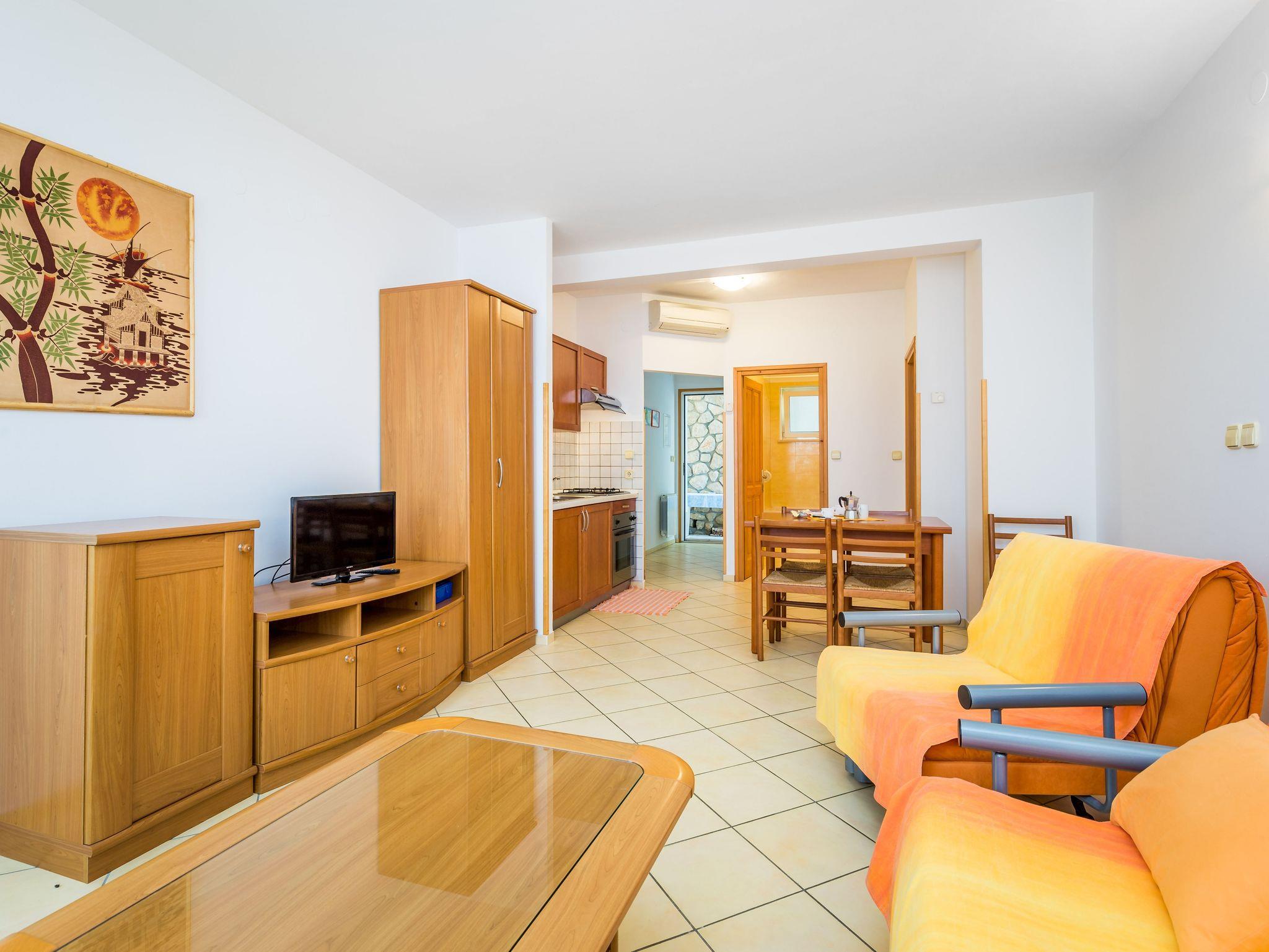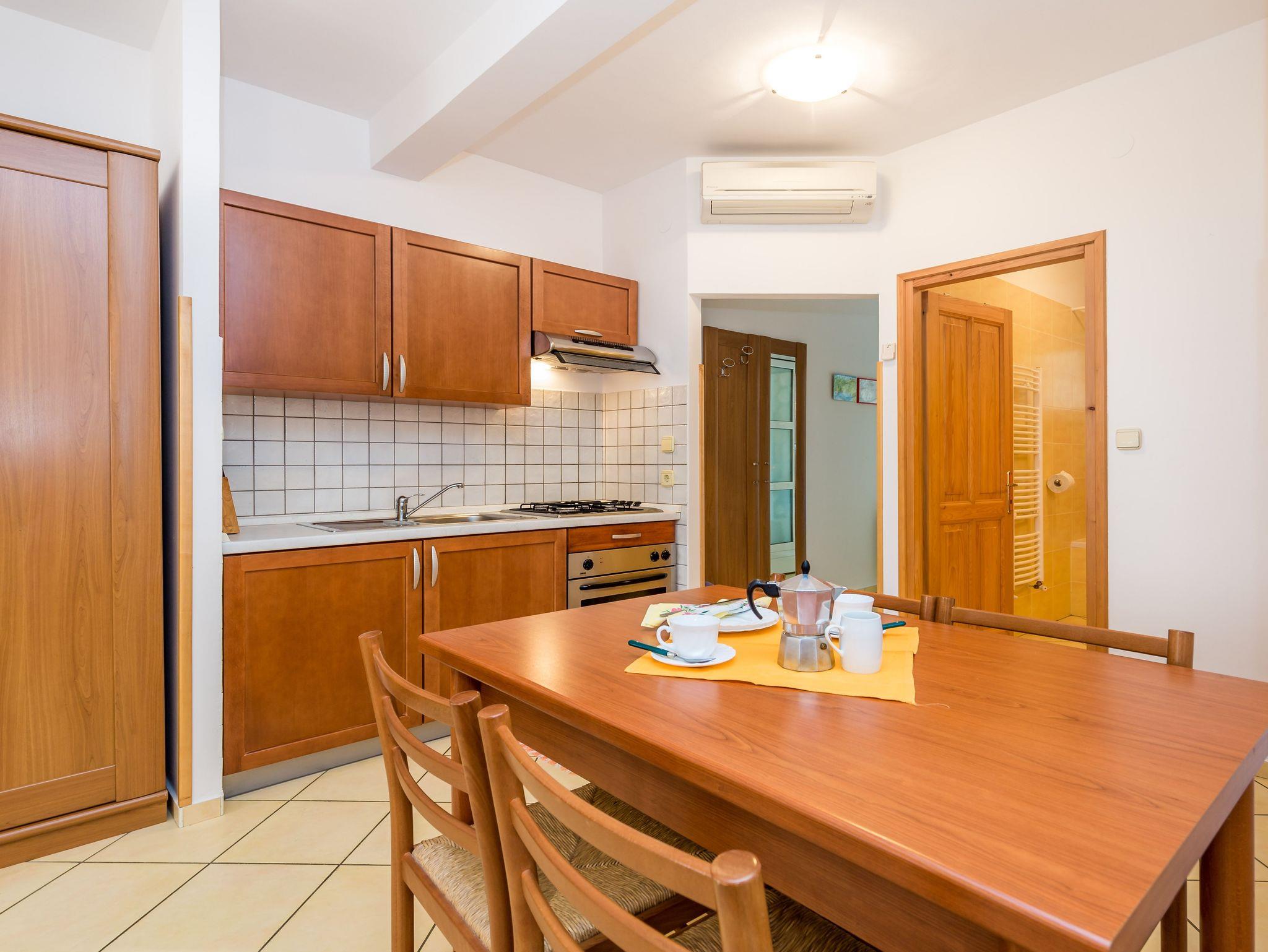 Ferienwohnung bietet Platz für 4 Gäste. Die Betten sind in Schlafzimmern, die es 1 gibt, und in Wohnzimmer, innerhalb einer Gesamtfläche von 44m2, angeordnet. Die Gäste haben eine eigene Terrasse zur Verfügung, auf der sie in warmen Sommernächten genießen können. Das Apartment bietet Meerblick. Es ist erlaubt, Speisen auf dem Gemeinschafts-Grill vorzubereiten. In der Unterkunftseinheit besteht die Möglichkeit des Mitbringens von Haustieren gegen Aufpreis. Unterkunftseinheit hat Räume, die von dem Rest der Einheit abgetrennt werden. IM PREIS INBEGRIFFEN: Kurtaxe, Endreinigung, Klimatisierung, Zentralheizung, Parkplatz, Internet, Kinderbett, Bügeleisen, Bügelbrett, Föhn, tragbarer Grill. VERBINDLICHE ZUSÄTZLICHE KOSTEN: Aufzahlung für Kurzaufenthalte (prozentualer Zuschlag pro Nächtigungsanzahl: 30% - 1, 20% - 2, 10% - 3). UNVERBINDLICHE ZUSÄTZLICHE KOSTEN: Wäschewaschen (15,00 € Waschen), Haustiere (10,00 € pro Nacht). Die Verfügbarkeit zusätzlicher Dienstleistungen in Ihrem reservierten Termin und die Preise derselben (falls nicht aufgeführt) müssen im Voraus überprüft werden. Zusätzliche Dienstleistungen die in der Zahlungsaufforderung nicht aufgeführt sind werden direkt beim Vermieter bezahlt, angenommen der Gast nutzt auch diese. Ermäßigung auf den Grundpreis: Gratistag 21=19 (bei einem Aufenthalt von 21 Tagen oder mehr erhalten Sie 2 Gratistage für den Aufenthalt bis 31.12.26).