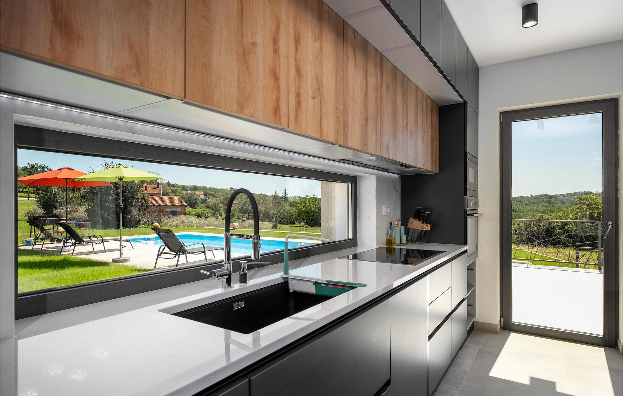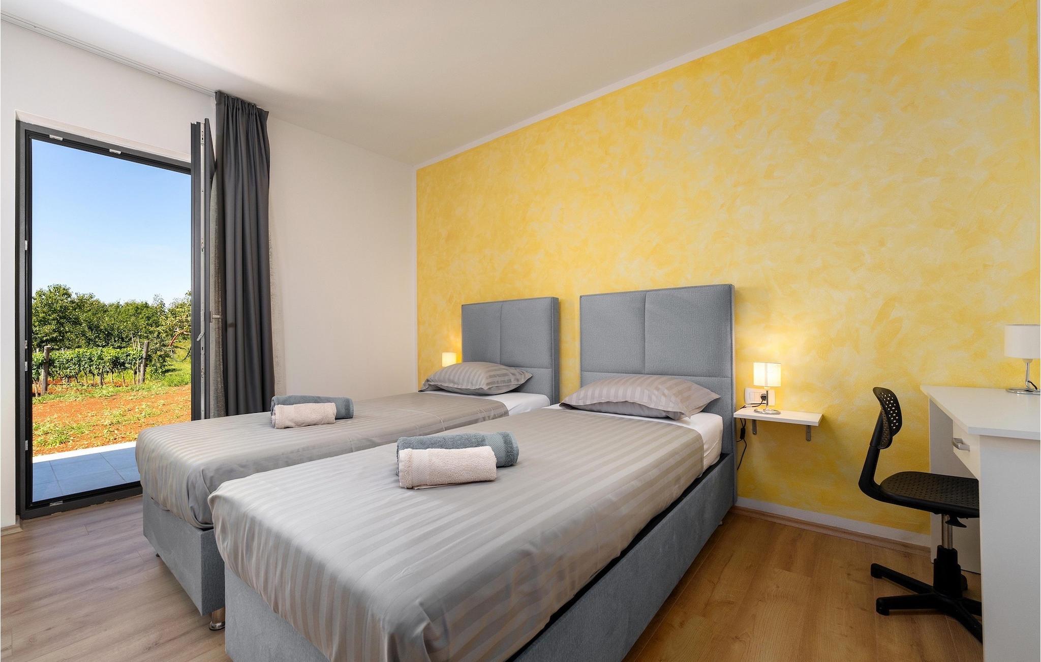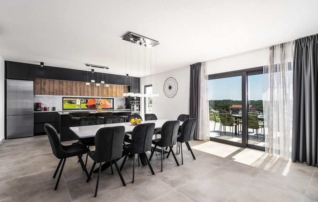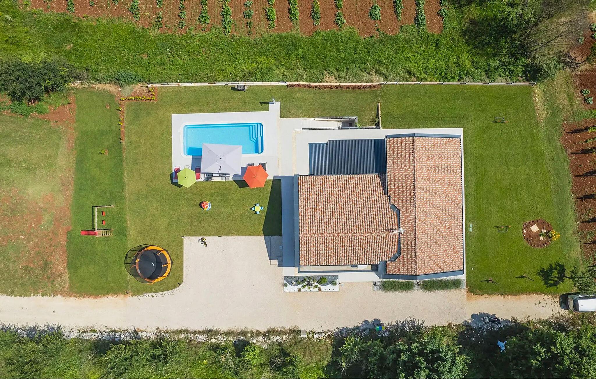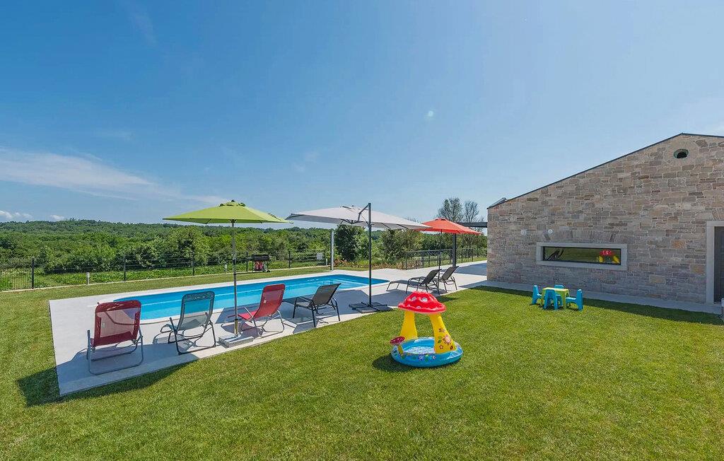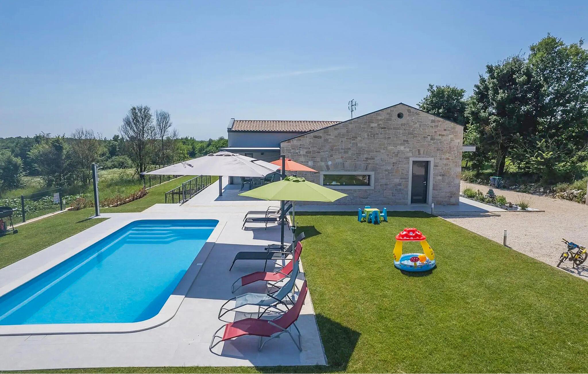 Villa Levak er den perfekte villa til en flugt fra byens stress og jag til landlige omgivelser og en afslappende ferie med familie og venner. Villaens udendørsområde vil fortrylle dig med grønne områder og en vidunderlig swimmingpool med liggestole, perfekt til afslapning og forfriskning i varmen. Villaen tilbyder også udendørs underholdning for alle aldre. Del op i hold og spil minifodbold, mens de yngste gæster vil blive glade for børnenes legeplads med gynger. Hvis du kan lide at udforske naturen på egen hånd, er der også en cykel i villaen, og du kan tage ud på de omkringliggende cykelstier. Benyt tilbuddet af indenlandske produkter fra OPG Šegala og tilbered specialiteter på grillen med dem til hele familien. Samles ved det udendørs spisebord og nyd smagen af det traditionelle istriske køkken beriget med økologisk dyrkede ingredienser. Dette smukke moderne en-etagers hus har 4 soveværelser, et fuldt udstyret køkken med en 10-sæders spisestue, en hyggelig stue og 3 badeværelser. Et soveværelse har tre senge, og de resterende tre værelser er udstyret med dobbeltsenge og aircondition. Nyd din morgenkaffe ved et charmerende udendørsbord med en smuk udsigt over det grønne og poolen. Hvis du sætter pris på den økologiske livsstil, afsondrethed og et landligt miljø, så genskab forbindelsen til naturen i denne villa i hjertet af Istrien. Slap af din sjæl og krop med dine kære under din ferie på Villa Levak. Villa Levak ligger i det centrale Istrien nær Pazin. Pazin er en by, der værner om en lang tradition og er Istriens turistcentrum. Byens centrale træk er middelalderfæstningen Pazinski Slot, som ligger over Pazin-grotten. Naturelskere vil bestemt ikke blive efterladt ligeglade af Pazinska jama. Opdag selv, hvorfor disse to attraktioner tjente som inspiration til adskillige litterære værker af Jules Verne, Vladimir Nazor og Dante. Udforsk dette landskab på pædagogiske vandrestier, og adrenalinjunkier kan forvente en zip-line. Gå ikke glip af at udforske det gastronomiske udbud af traditionelle istriske retter i hele det centrale Istrien, og tilbered de afprøvede specialiteter i villaen, hvor du kan få lokale landbrugsprodukter. Nyd de smukke strande på Istriens vestkyst og besøg turistcentre, der skiller sig ud for deres rige kulturelle arv, såsom Porec og Rovinj.