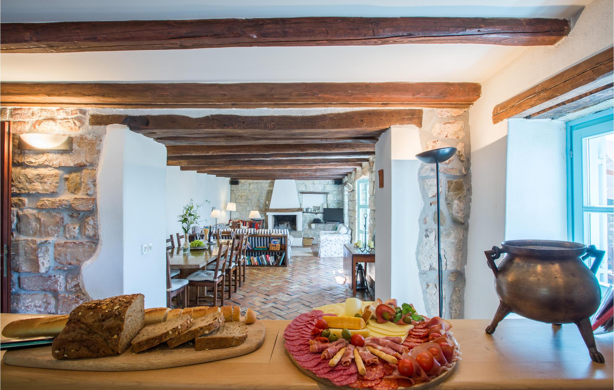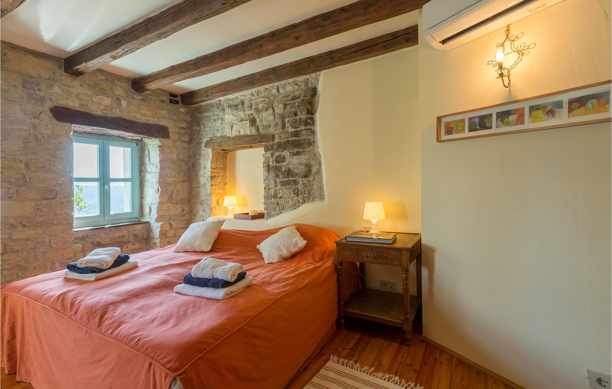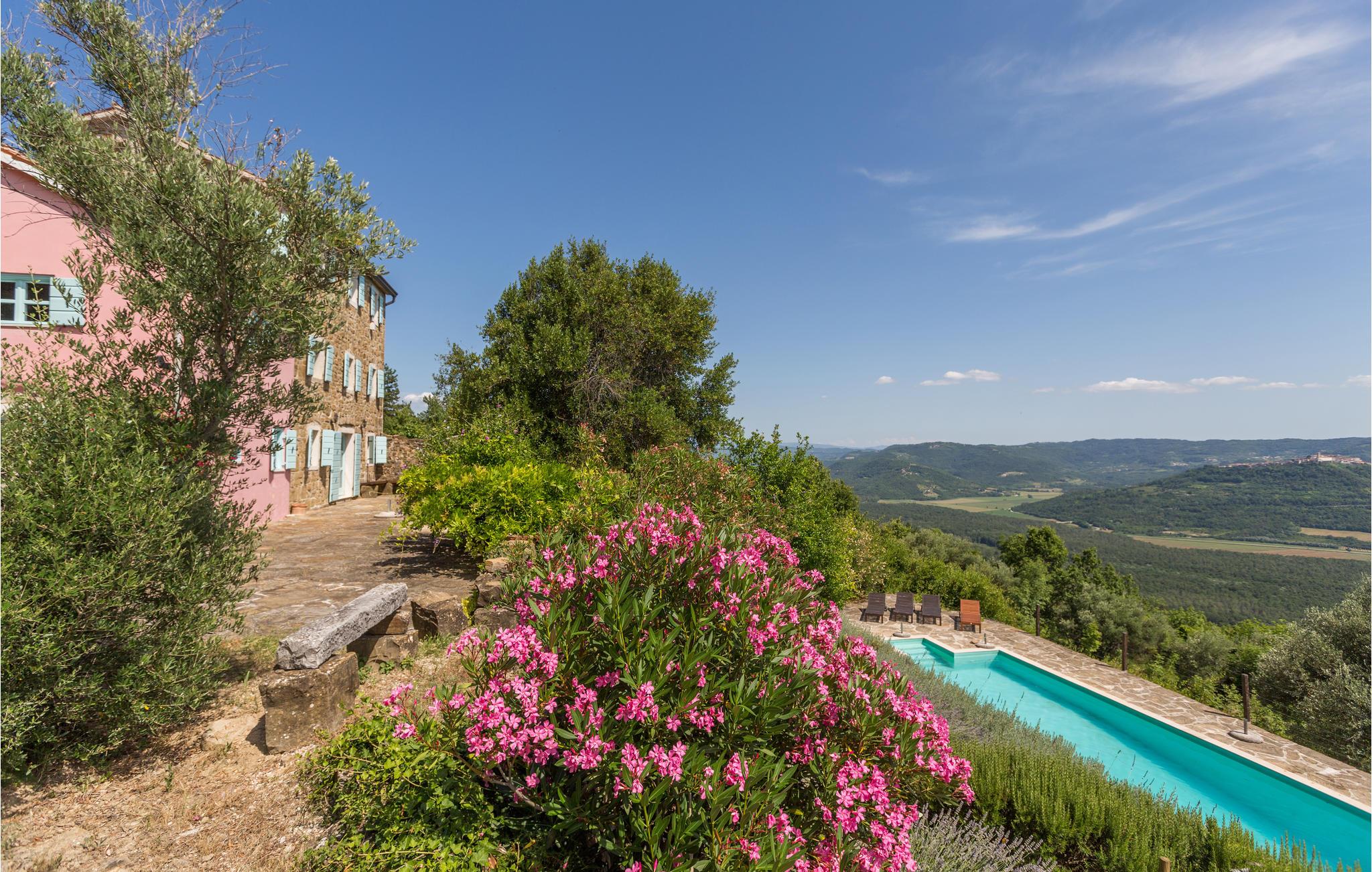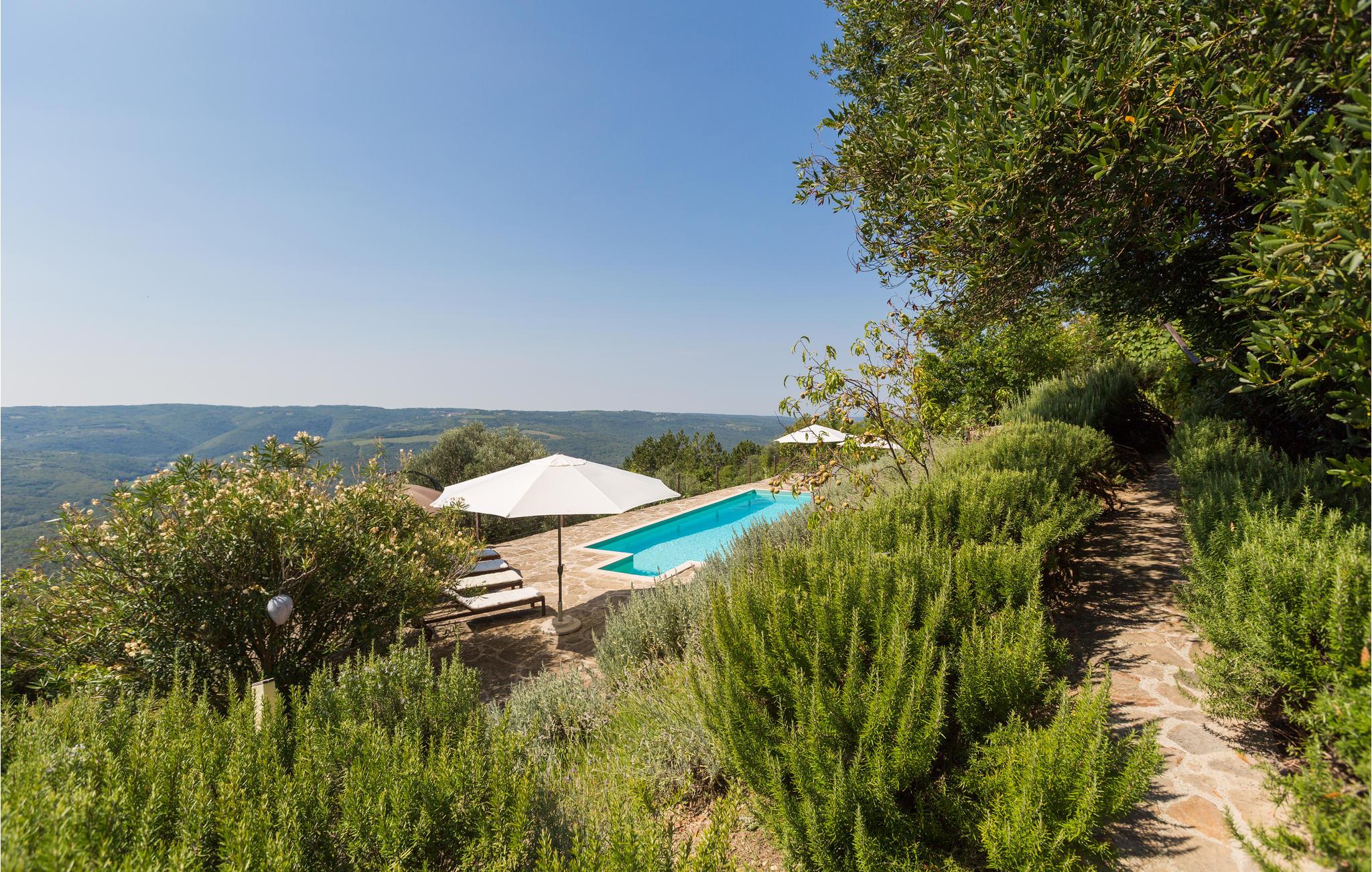 Dette store og traditionelle stenhus med pool ligger midt i skoven, med en vidunderlig panoramaudsigt over Motovun. Kom her og føl jer hjemme. På tre etager kan I nyde en fantastisk udsigt over det nordlige Istriens landskab og føle jer godt tilpas i huset. Synlige loftsbjælker, lyse vægge og stenvægge giver det store hus sin traditionelle charme. Men også møblerne og udstyret tilbyder jer komfort og et fantastisk miljø. Træd ud på terrassen med jeres morgenkaffe og slentre gennem haven, fyldt med blomster, træer og lavendel, ned til swimmingpoolen. Svøm de første længder i vandet og nyd udsigten over landskabet. Nyd den smukke natur og det maleriske landskab, mens I vandrer eller cykler, og opdag lokale delikatesser på markeder og restauranter, som I virkelig gerne ville prøve. Mærker I havets tiltrækning, kan I tage på dagsture til Adriaterhavets smukke strande og vende tilbage til det smukke feriehus med mange indtryk!