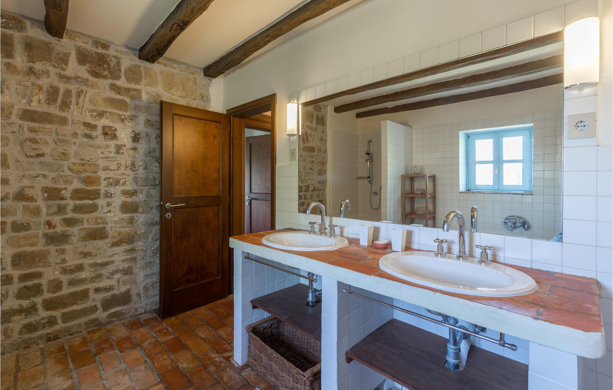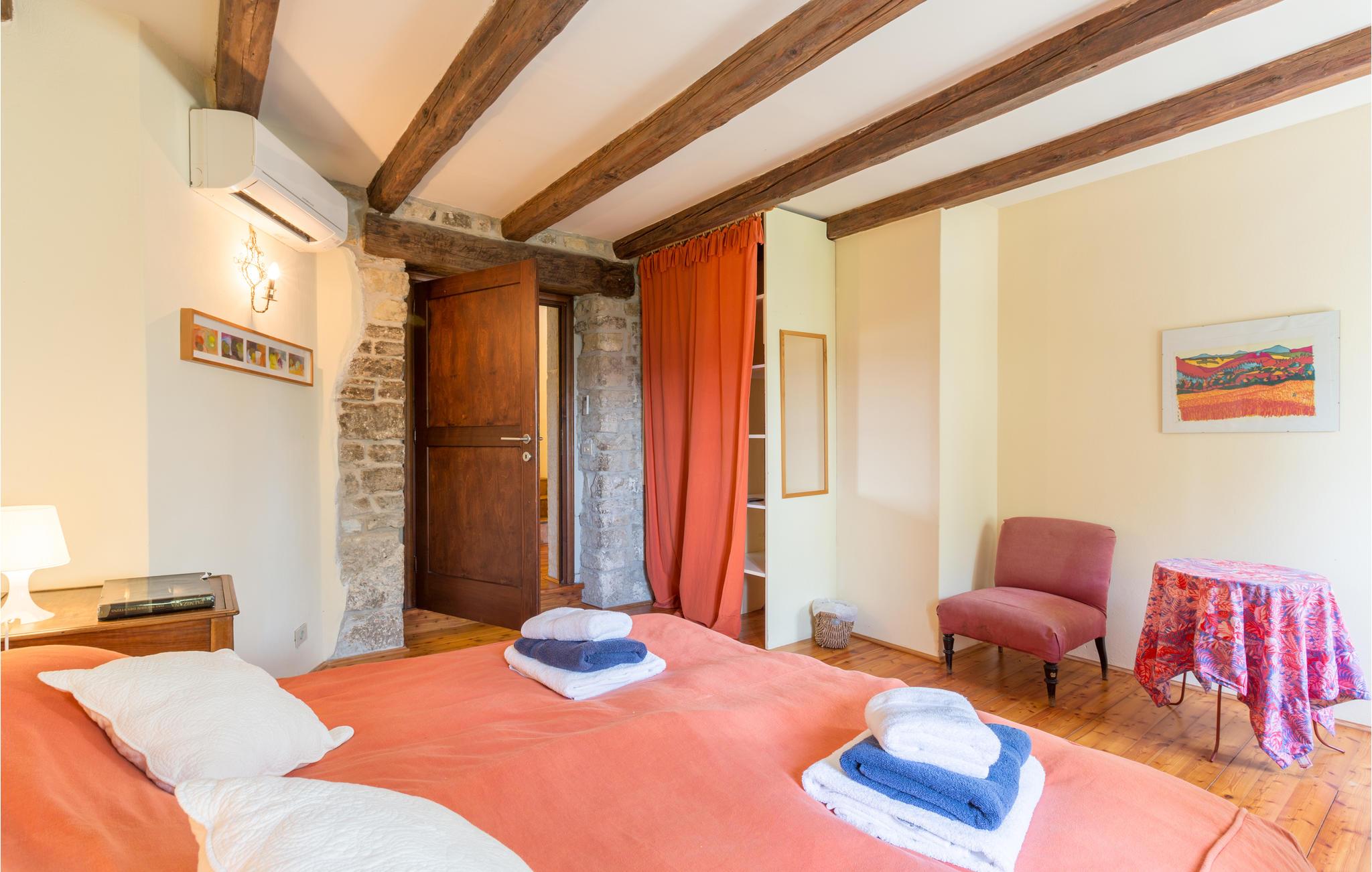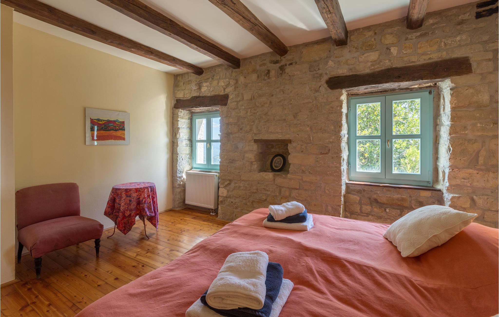 Dette store og traditionelle stenhus med pool ligger midt i skoven, med en vidunderlig panoramaudsigt over Motovun. Kom her og føl jer hjemme. På tre etager kan I nyde en fantastisk udsigt over det nordlige Istriens landskab og føle jer godt tilpas i huset. Synlige loftsbjælker, lyse vægge og stenvægge giver det store hus sin traditionelle charme. Men også møblerne og udstyret tilbyder jer komfort og et fantastisk miljø. Træd ud på terrassen med jeres morgenkaffe og slentre gennem haven, fyldt med blomster, træer og lavendel, ned til swimmingpoolen. Svøm de første længder i vandet og nyd udsigten over landskabet. Nyd den smukke natur og det maleriske landskab, mens I vandrer eller cykler, og opdag lokale delikatesser på markeder og restauranter, som I virkelig gerne ville prøve. Mærker I havets tiltrækning, kan I tage på dagsture til Adriaterhavets smukke strande og vende tilbage til det smukke feriehus med mange indtryk!