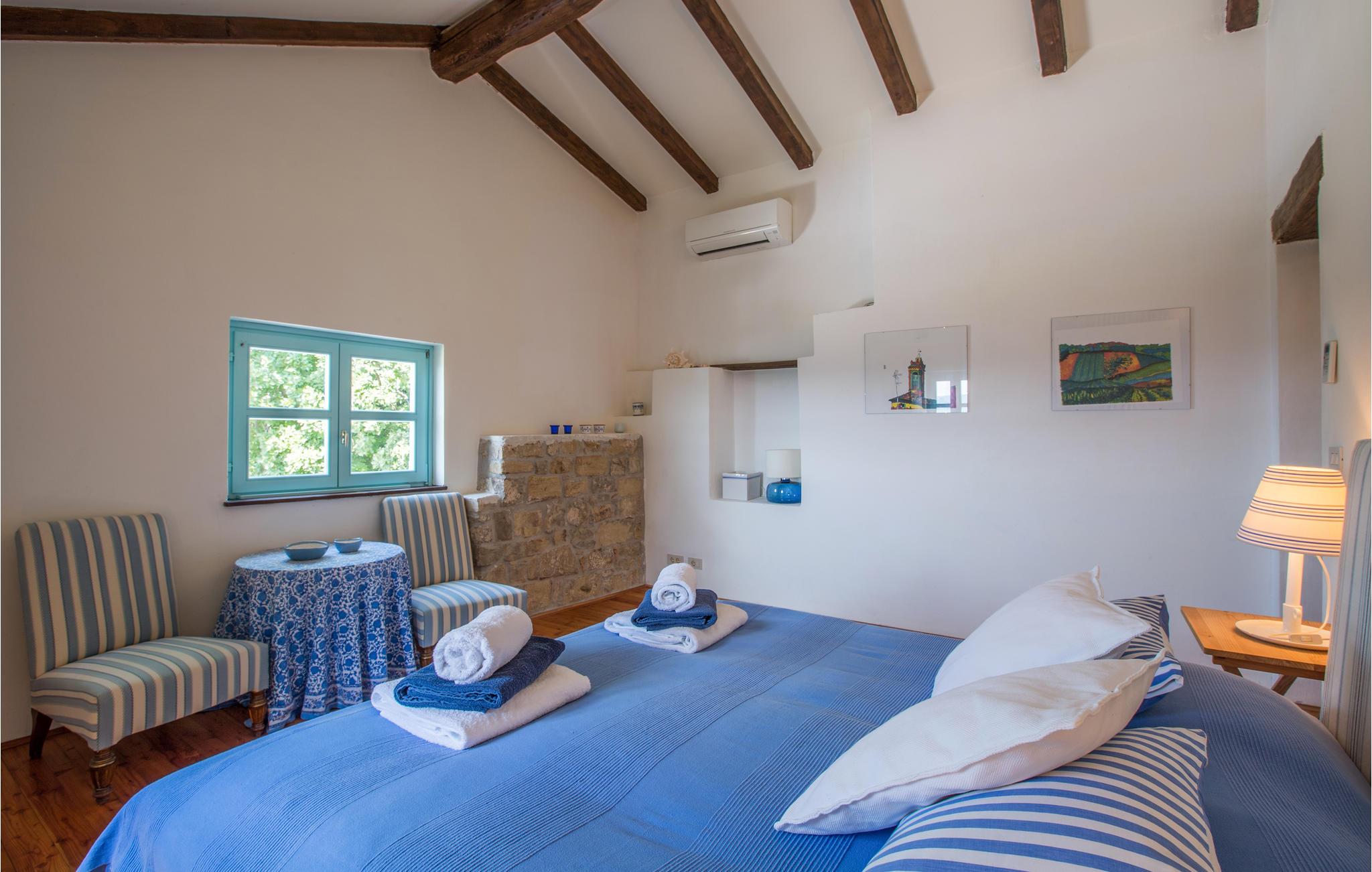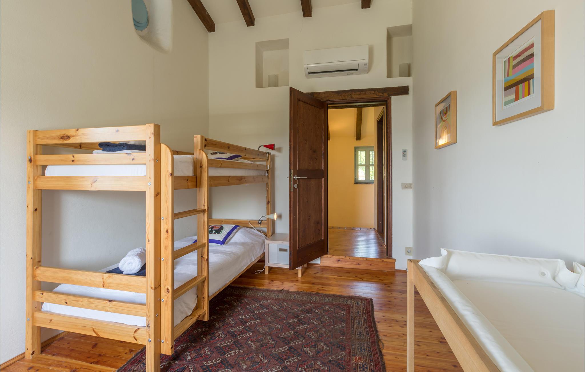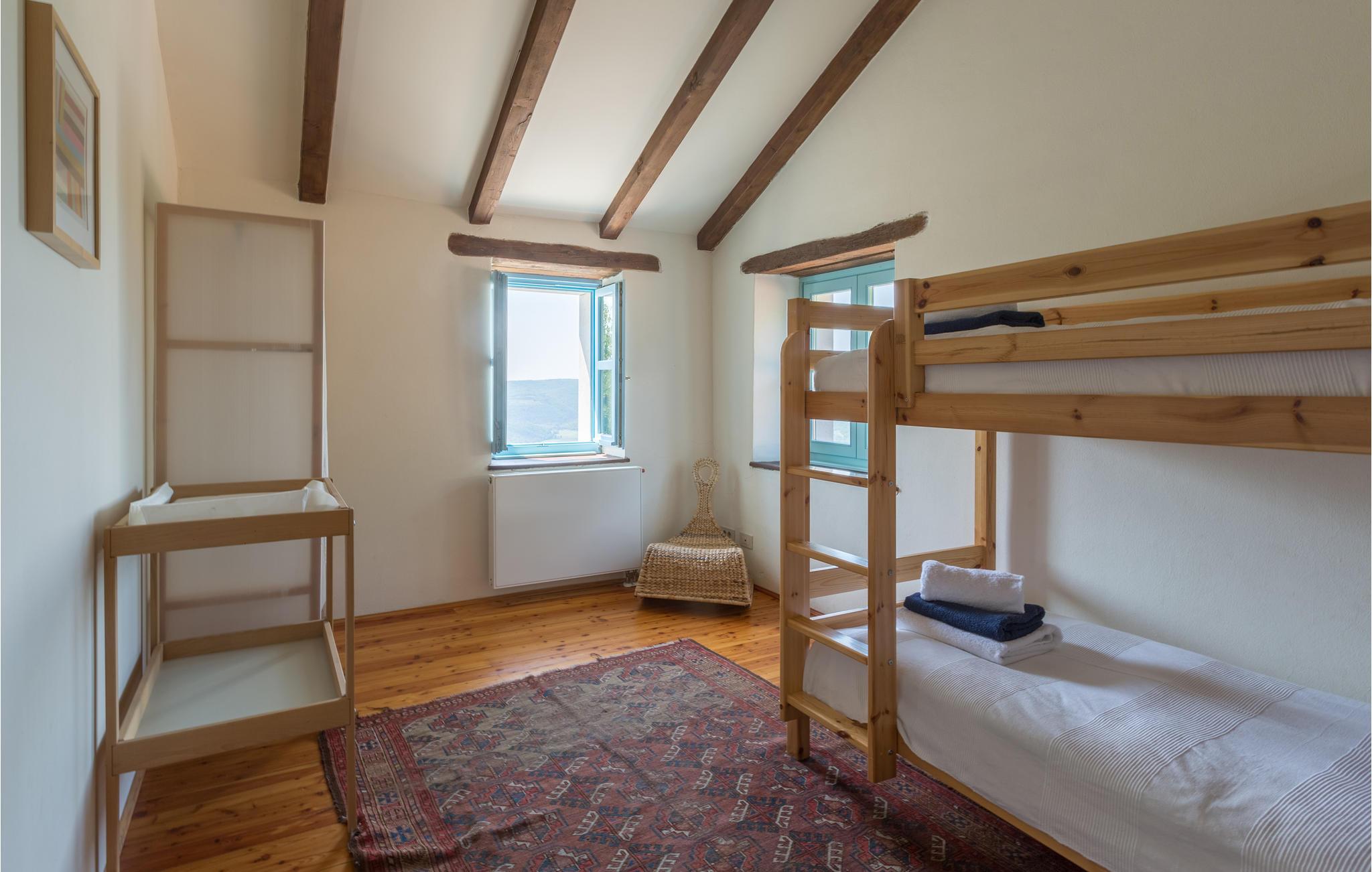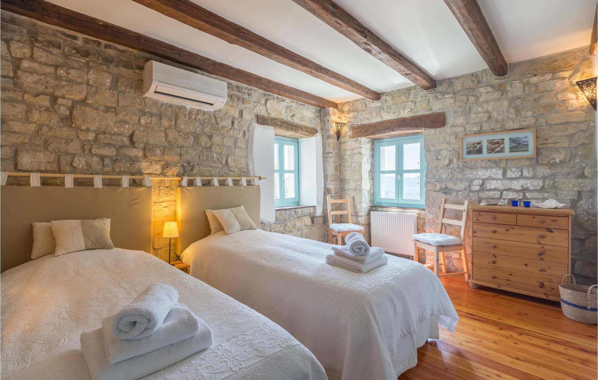 Dette store og traditionelle stenhus med pool ligger midt i skoven, med en vidunderlig panoramaudsigt over Motovun. Kom her og føl jer hjemme. På tre etager kan I nyde en fantastisk udsigt over det nordlige Istriens landskab og føle jer godt tilpas i huset. Synlige loftsbjælker, lyse vægge og stenvægge giver det store hus sin traditionelle charme. Men også møblerne og udstyret tilbyder jer komfort og et fantastisk miljø. Træd ud på terrassen med jeres morgenkaffe og slentre gennem haven, fyldt med blomster, træer og lavendel, ned til swimmingpoolen. Svøm de første længder i vandet og nyd udsigten over landskabet. Nyd den smukke natur og det maleriske landskab, mens I vandrer eller cykler, og opdag lokale delikatesser på markeder og restauranter, som I virkelig gerne ville prøve. Mærker I havets tiltrækning, kan I tage på dagsture til Adriaterhavets smukke strande og vende tilbage til det smukke feriehus med mange indtryk!