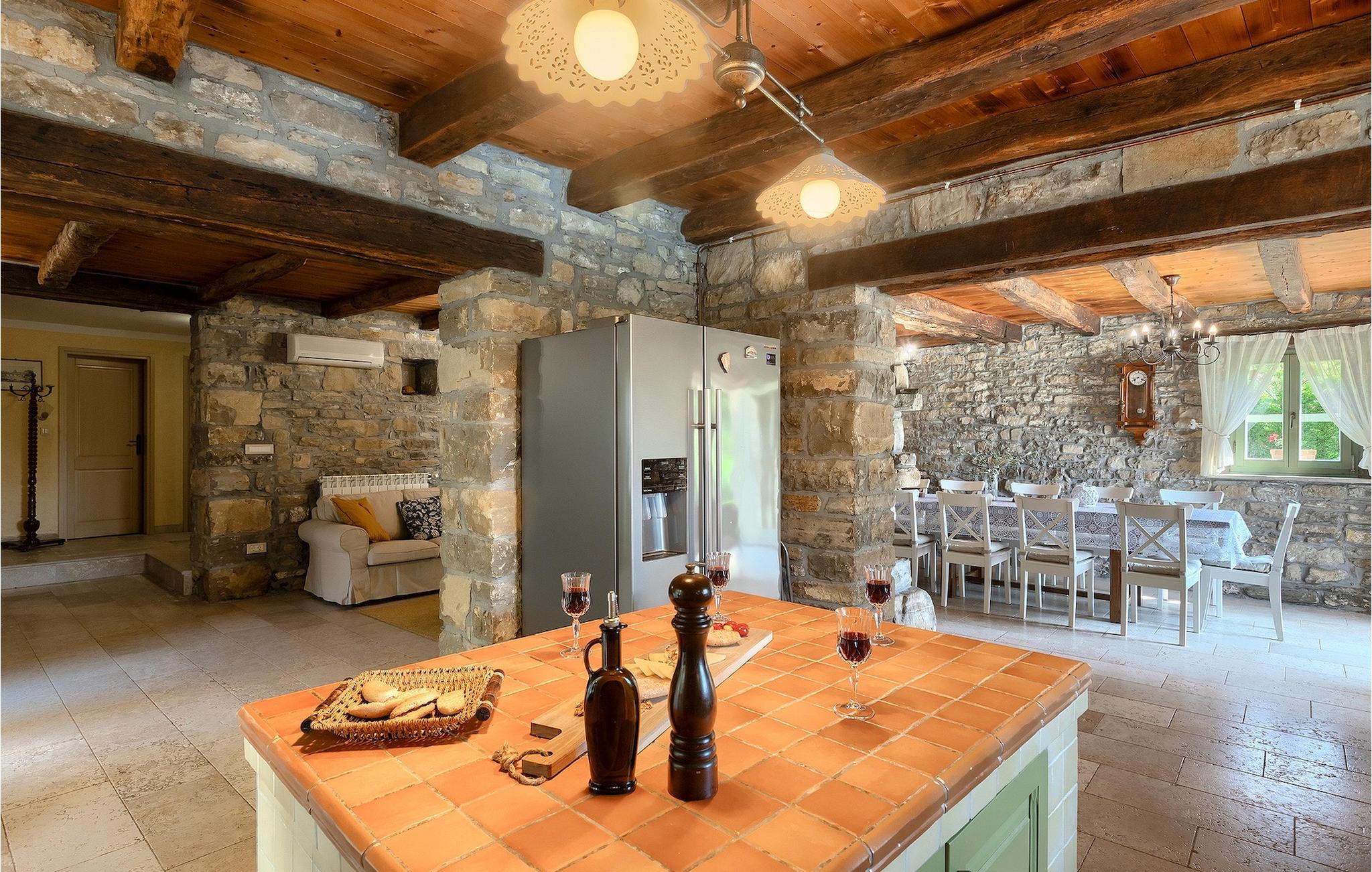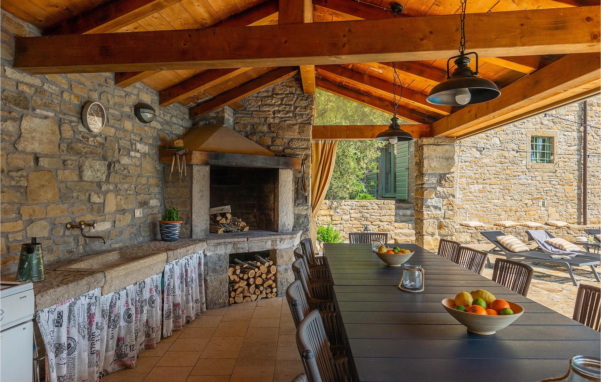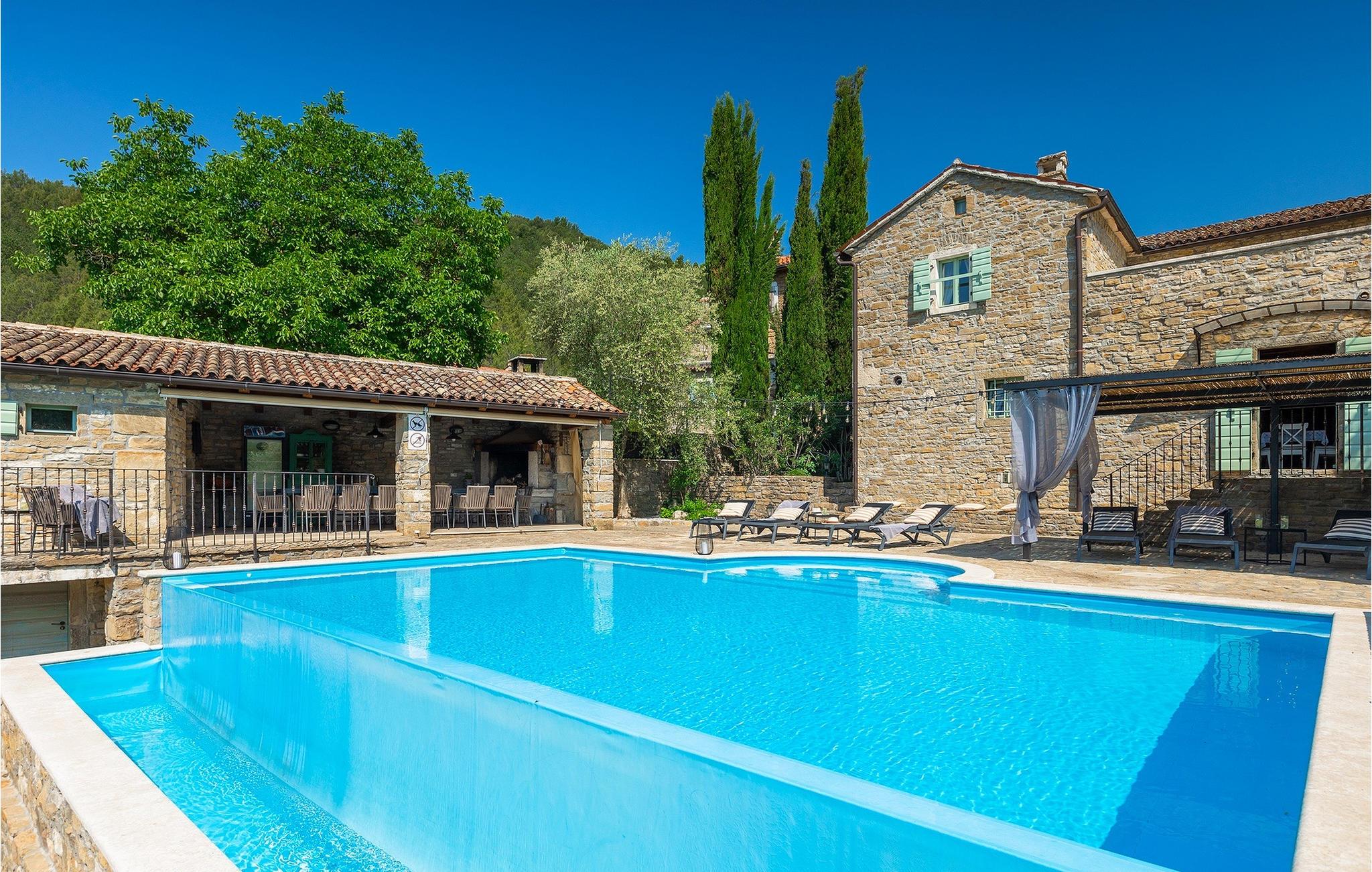 Villa Luigi & Luisa er en rigtig flugt! Disse to gamle restaurerede landhuse ligger på en lille bakke mellem kun en håndfuld huse, der giver dig følelsen af at bo langt væk. Det ydre byder på en 50m2 infinity-pool og en omhyggeligt plejet have - ideel til familier med børn. Der er et overdækket sommerkøkken med grill, spiseplads og en storslået udsigt over grønne bakketoppe, Mirna-flodens dal og Motovun. Husene med en interessant rumindretning udlejes som en enkelt enhed for op til 14 gæster fordelt på 6 soveværelser. Den ene enhed har to soveværelser med eget badeværelse, den anden har fire af dem. En kombination af møbler i 1800-talsstil med sten og træ i den åbne stue og køkken skaber en hyggelig atmosfære. Altanen giver dig et ekstra privat sted at nyde panoramaudsigten. En bonus er en velassorteret kælder, hvor du kan smage en masse lokale specialiteter i selskab med familie og venner. Som et kirsebær på toppen tilbyder ejerne af Villa Luigi & Luisa dig en madlavningsservice efter behov. Når du befinder dig et sted kendt for sine kulinariske specialiteter - som hvide trøfler, honning, olivenolie og ost, bør du ikke lade denne mulighed gå forbi... Villa Luigi & Luisa ligger i Bazjaki nær Livade, en lille landsby kendt for sin trøffel Dage i efteråret. Der er en købmand, restauranter og posthus. Fra villaen kan du nyde udsigten over Motovun, hvor den berømte Motovun Film Festival finder sted hvert år. I 18 km finder du byen Buzet med et interessant tilbud på vandreture, som fører os til Hum - den mindste by i verden. Det centrale Istrien er bestemt et besøg værd! På den anden side har du Novigrad på Istriens vestkyst, med dens strande, seværdigheder og restauranter. På lidt mere end halvdelen af afstanden, 20 minutters kørsel væk, er der Aquapark Istralandia, hvis du leder efter denne form for action til dig og dine børn. Et andet bad, et terapeutisk, er Istarske Toplice på 10 km afstand fra din Villa Luigi & Luisa. Temperaturen i den opvarmede swimmingpool er afhængig af eksterne faktorer, herunder vejrforhold, og som sådan kan temperaturen på vandet ikke garanteres.