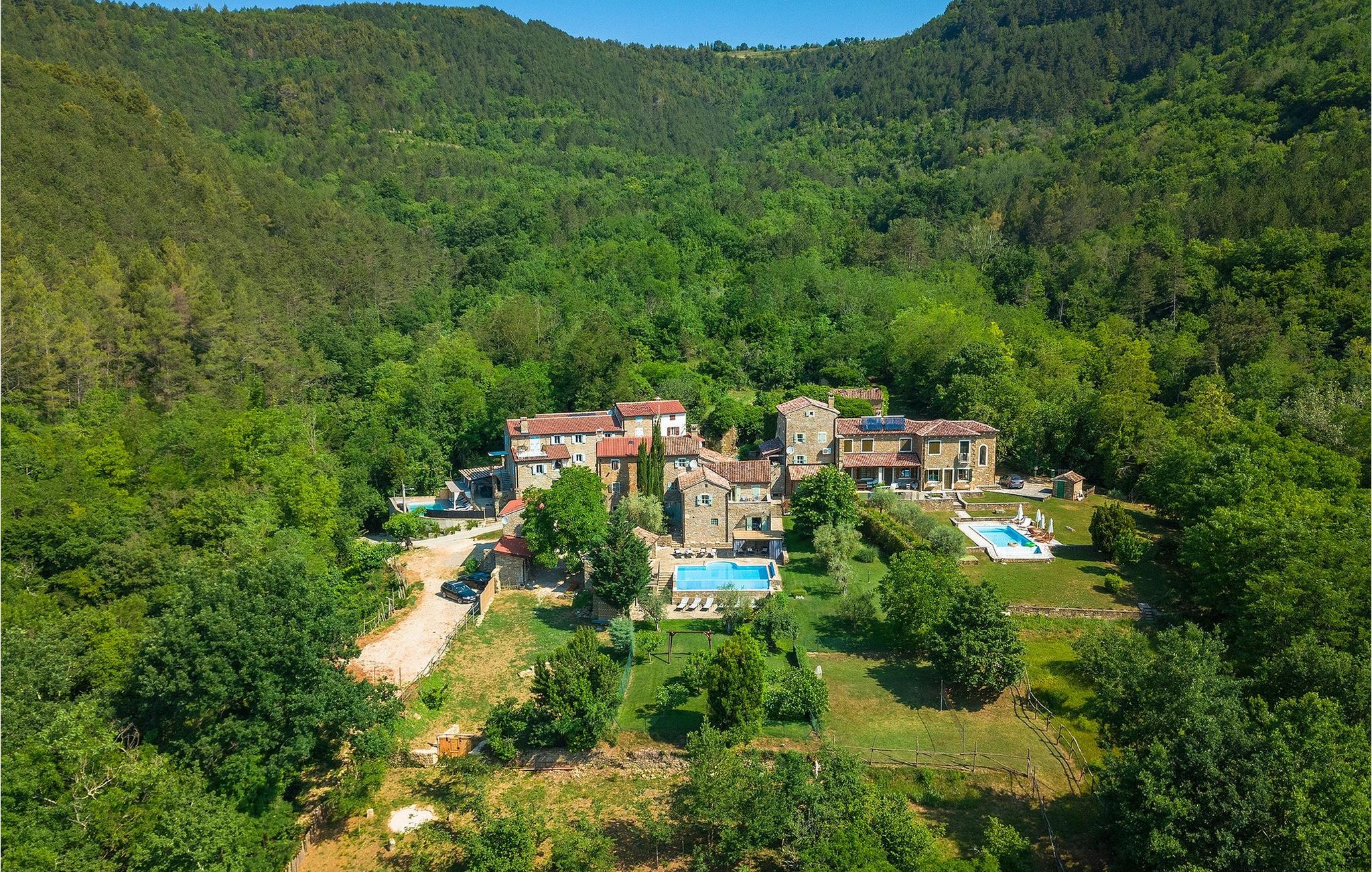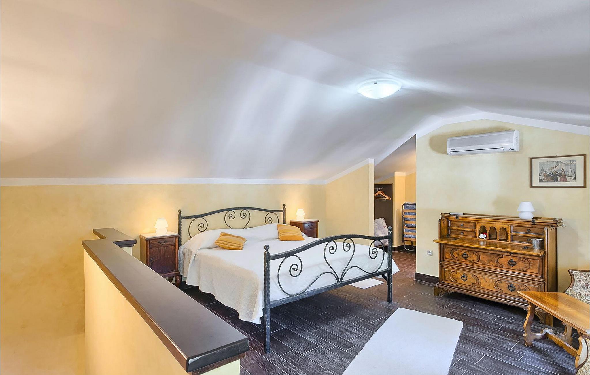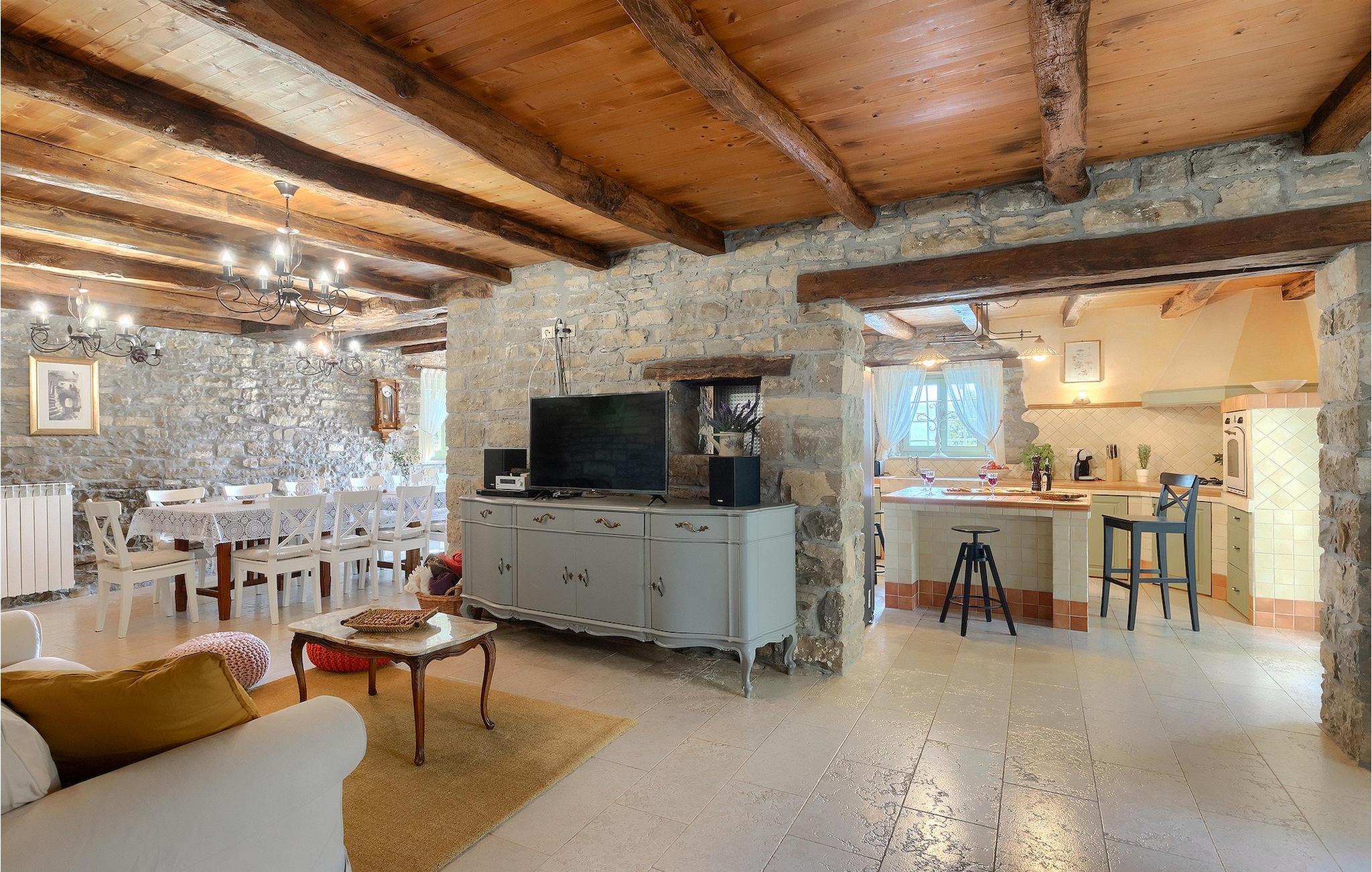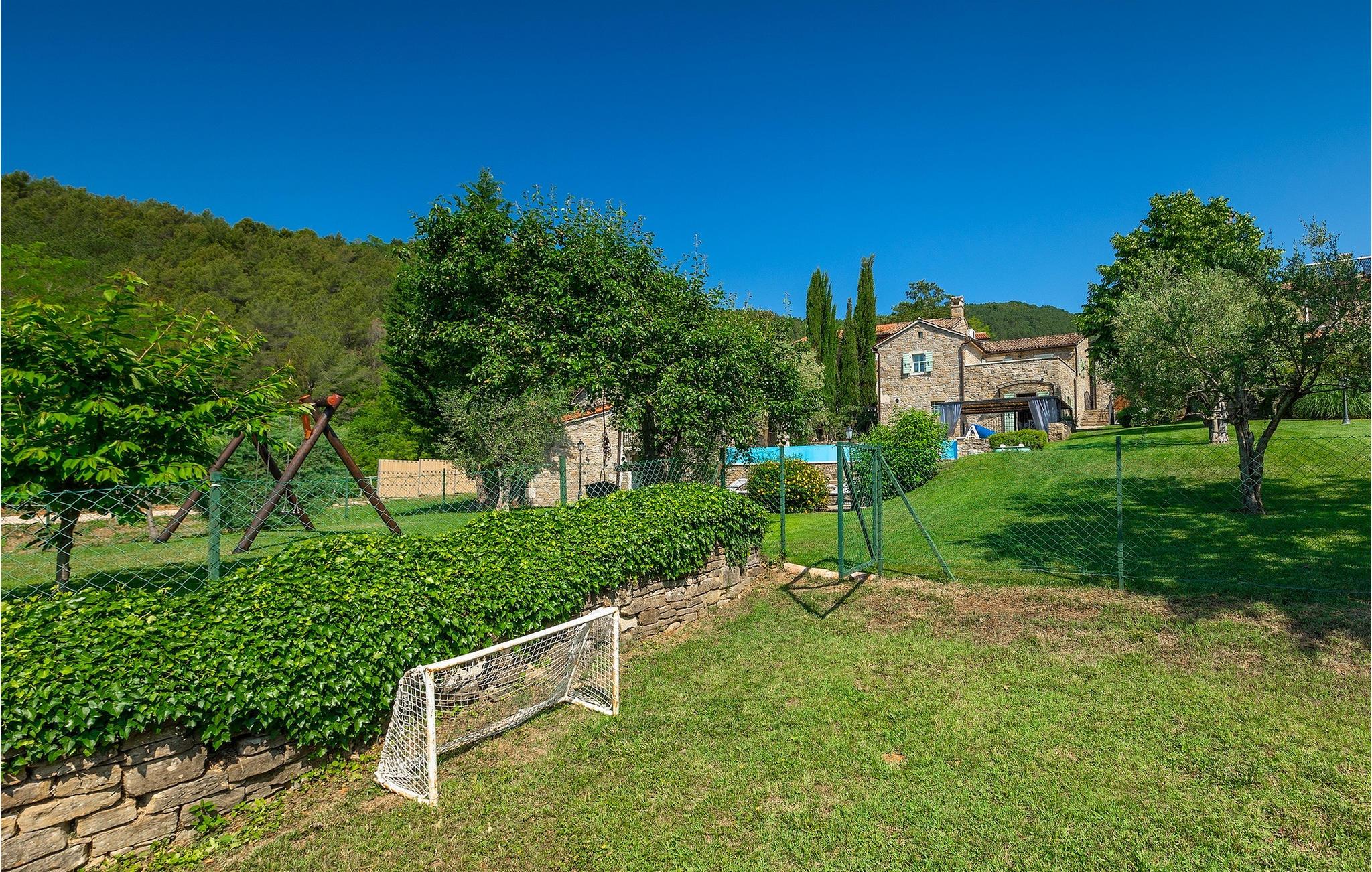 Villa Luigi & Luisa er en rigtig flugt! Disse to gamle restaurerede landhuse ligger på en lille bakke mellem kun en håndfuld huse, der giver dig følelsen af at bo langt væk. Det ydre byder på en 50m2 infinity-pool og en omhyggeligt plejet have - ideel til familier med børn. Der er et overdækket sommerkøkken med grill, spiseplads og en storslået udsigt over grønne bakketoppe, Mirna-flodens dal og Motovun. Husene med en interessant rumindretning udlejes som en enkelt enhed for op til 14 gæster fordelt på 6 soveværelser. Den ene enhed har to soveværelser med eget badeværelse, den anden har fire af dem. En kombination af møbler i 1800-talsstil med sten og træ i den åbne stue og køkken skaber en hyggelig atmosfære. Altanen giver dig et ekstra privat sted at nyde panoramaudsigten. En bonus er en velassorteret kælder, hvor du kan smage en masse lokale specialiteter i selskab med familie og venner. Som et kirsebær på toppen tilbyder ejerne af Villa Luigi & Luisa dig en madlavningsservice efter behov. Når du befinder dig et sted kendt for sine kulinariske specialiteter - som hvide trøfler, honning, olivenolie og ost, bør du ikke lade denne mulighed gå forbi... Villa Luigi & Luisa ligger i Bazjaki nær Livade, en lille landsby kendt for sin trøffel Dage i efteråret. Der er en købmand, restauranter og posthus. Fra villaen kan du nyde udsigten over Motovun, hvor den berømte Motovun Film Festival finder sted hvert år. I 18 km finder du byen Buzet med et interessant tilbud på vandreture, som fører os til Hum - den mindste by i verden. Det centrale Istrien er bestemt et besøg værd! På den anden side har du Novigrad på Istriens vestkyst, med dens strande, seværdigheder og restauranter. På lidt mere end halvdelen af afstanden, 20 minutters kørsel væk, er der Aquapark Istralandia, hvis du leder efter denne form for action til dig og dine børn. Et andet bad, et terapeutisk, er Istarske Toplice på 10 km afstand fra din Villa Luigi & Luisa. Temperaturen i den opvarmede swimmingpool er afhængig af eksterne faktorer, herunder vejrforhold, og som sådan kan temperaturen på vandet ikke garanteres.