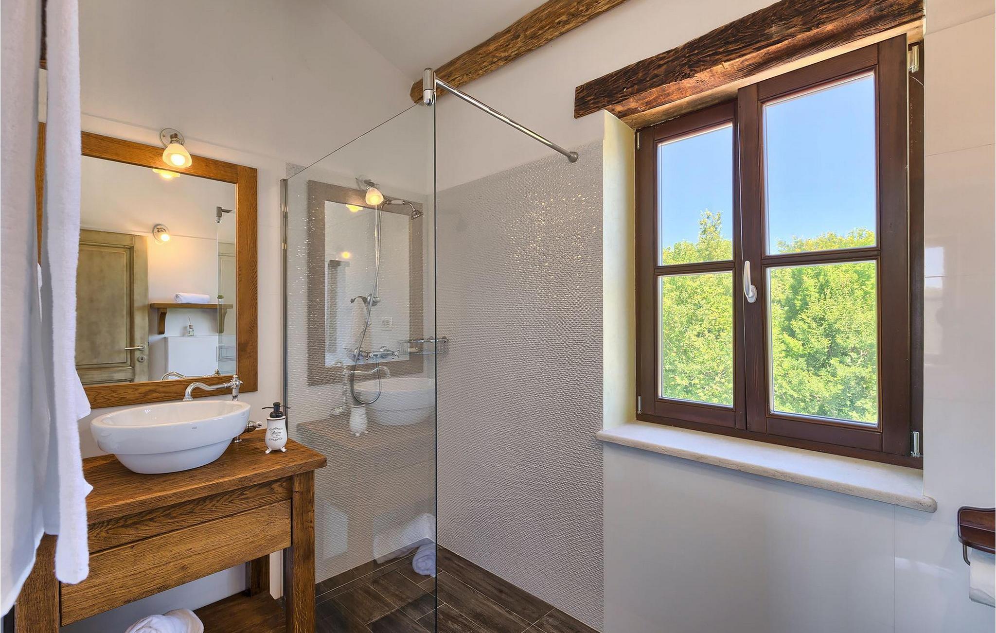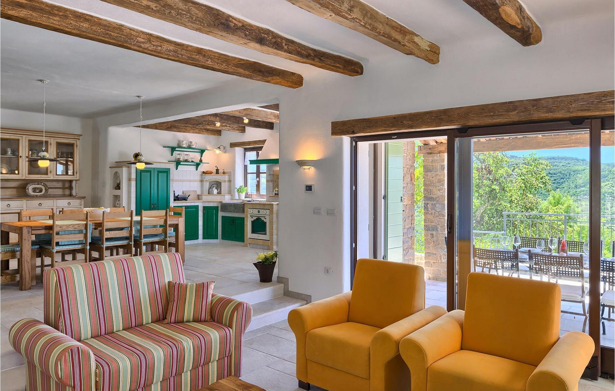 Tilbring din ferie på denne pragtfulde ejendom og oplev de fortryllende omgivelser. Villaen er beliggende nær den antikke by Buzet. Buzet ligger i den nordlige del af Istrien nær grænsen til Slovenien. Dens historiske kerne, der stammer fra middelalderen, ligger på en bakketop over en frugtbar dal af den længste flod i Istrien - Mirna. I dag er Buzet almindeligt kendt som 'Trøflernes by', da skovene