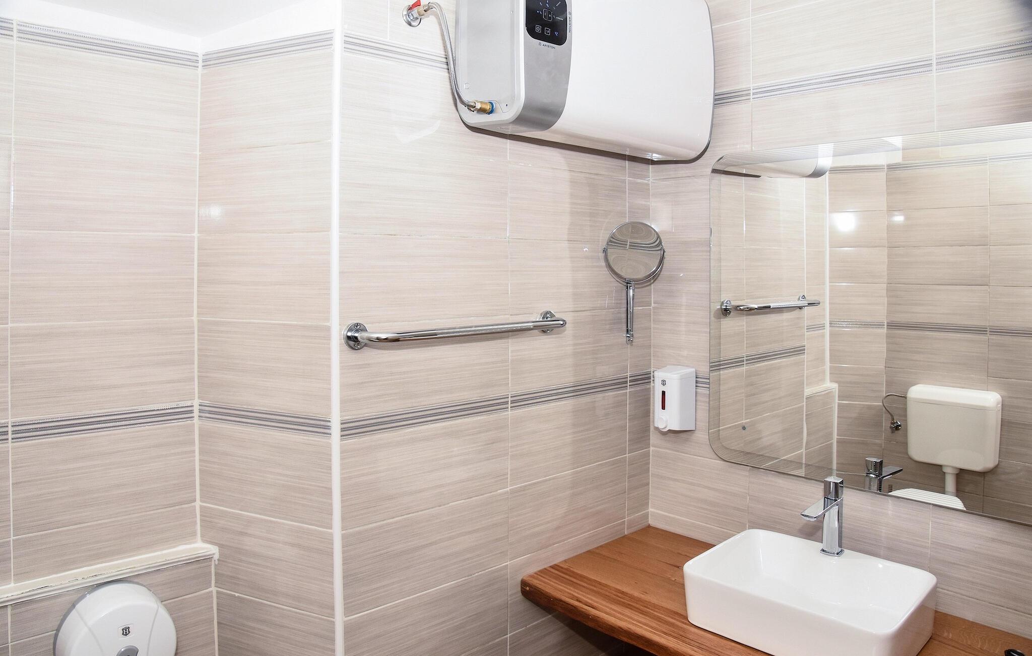 Badeværelse (nr. 1) - WC. Varmt og koldt vand. Bruser