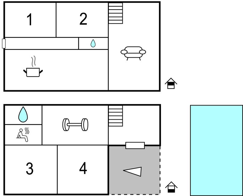Soveværelse (nr. 4) - 1 Soveplads. (Enkeltseng(e)). 2 Sovepladser. (Dobbeltseng(e)).