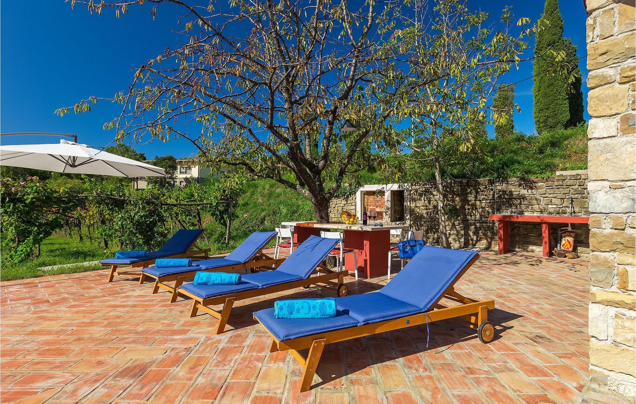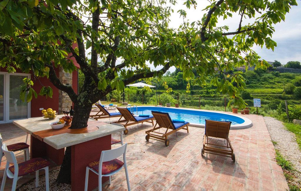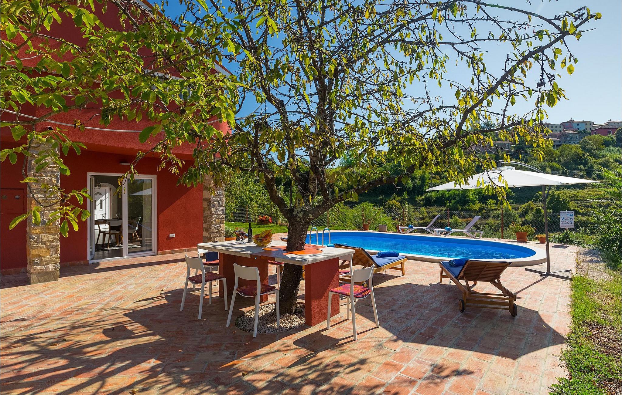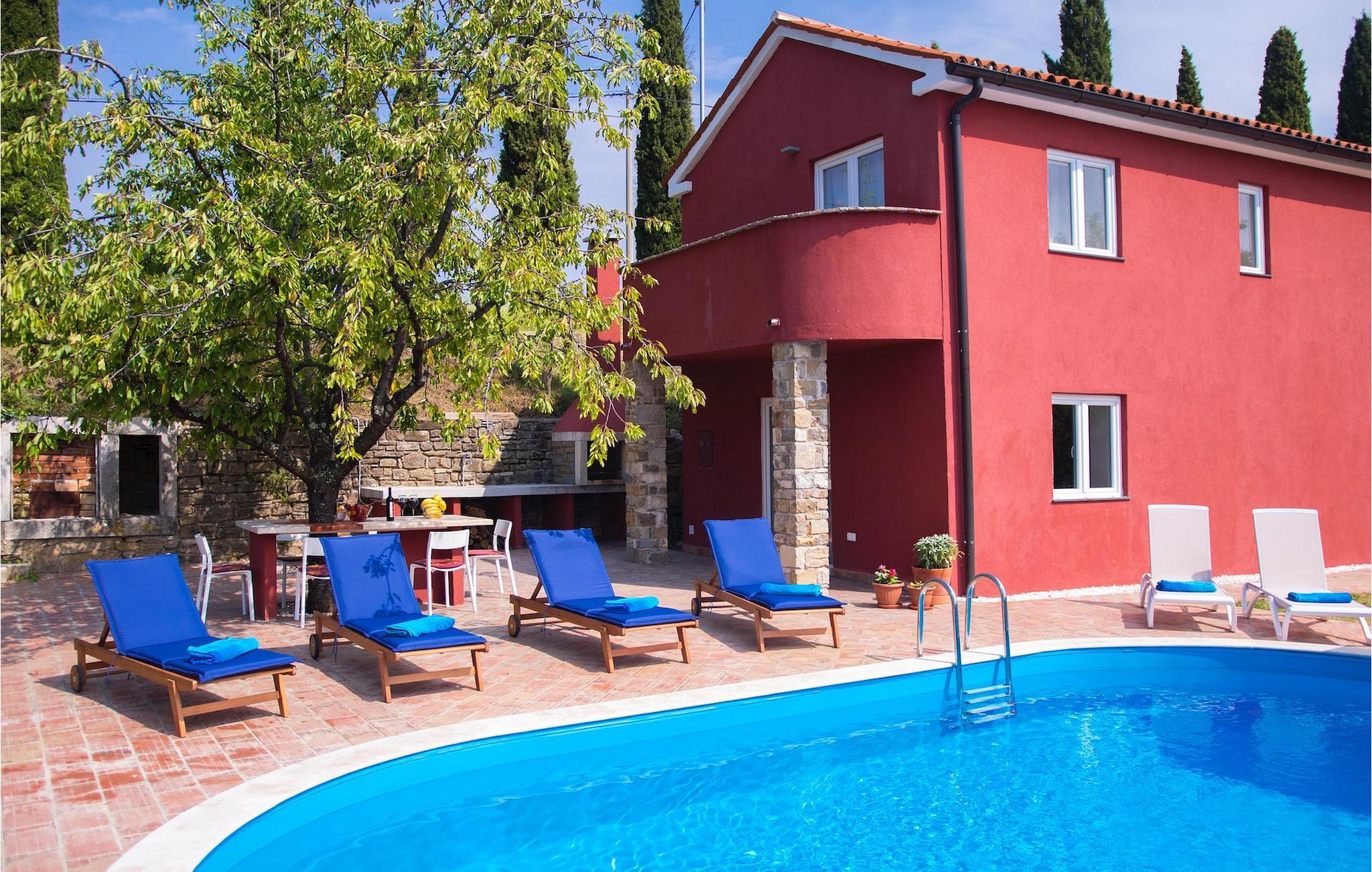Die charmante Villa Mamma Mia ist die ideale Wahl für alle, die sich in einer ruhigen Umgebung entspannen möchten. Dieses liebevoll restaurierte Steinhaus befindet sich auf einem 1200 m² großen Grundstück und bietet Platz für bis zu 6 Personen mit drei Schlafzimmern, eigenem Badezimmer und einem privatem Pool. Das Erdgeschoss besteht aus einem komfortablen Wohnzimmer mit einem Flachbild-Sat-TV und einer völlig ausgestatteten Küche mit Essbereich. Die Schlafzimmer, mit Kingsize-Betten, und Badezimmer befinden sich im ersten Stock. Entspannen Sie sich auf den Sonnenliegen am privaten Pool, genießen Sie eine köstliche Mahlzeit vom Grill oder mieten Sie einen Fahrrad und probieren Sie die Parenzana-Strecke. Der Obstgarten und der 50 Jahre alte Weinberg bei der Villa stehen Ihnen ebenfalls zur Verfügung.