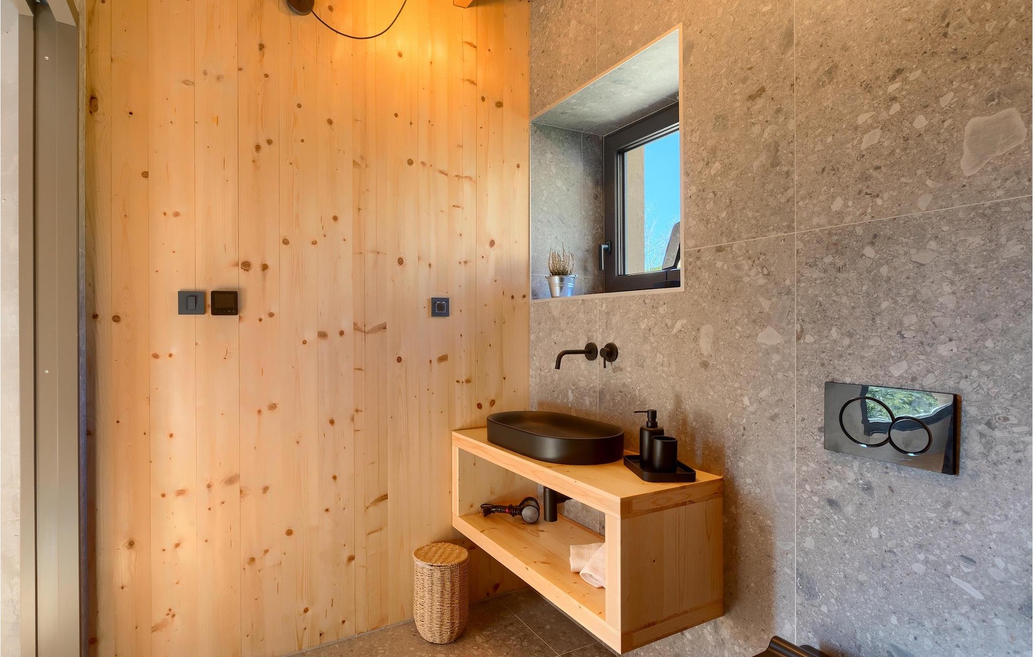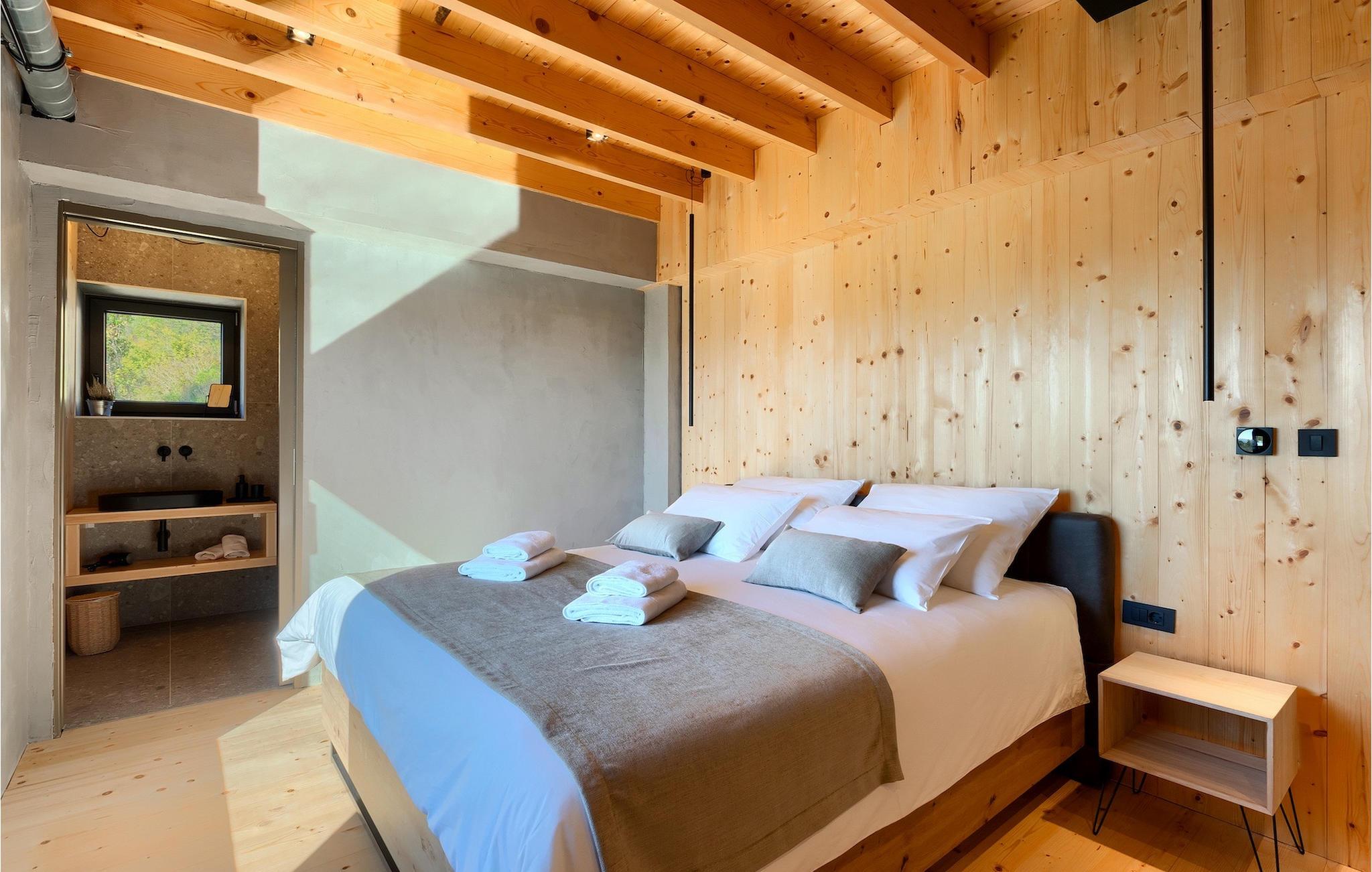 Das elegant eingerichtete Interieur der Villa Terra Motovun wird Sie in Staunen versetzen. Über 3 Etagen verteilt bietet diese Villa ausreichend Platz und Komfort für bis zu 8 Gäste. Im Erdgeschoss betreten Sie den offenen klimatisierten Wohnraum mit voll ausgestatteter Küche und Essbereich. Auf der gleichen Ebene werden Sie im Spa-Bereich die Vorzüge der Sauna und des Jacuzzi genießen können. Eine Dusche, die Gästetoilette und der Waschraum komplettieren diese Etage. Im ersten und zweiten Obergeschoss versprechen jeweils 2 Schlafzimmer erholsame Nächte - es sei denn, Sie genießen die tolle Aussicht mit Sternenhimmel bis tief in die Nacht. :-) Jedes der Schlafzimmer hat ein großes bequemes Doppelbett und verfügt zudem über ein eigenes ensuite Badezimmer mit Dusche.