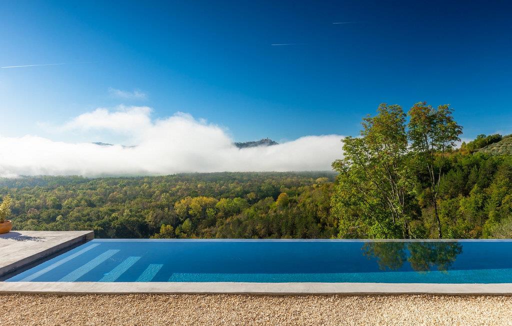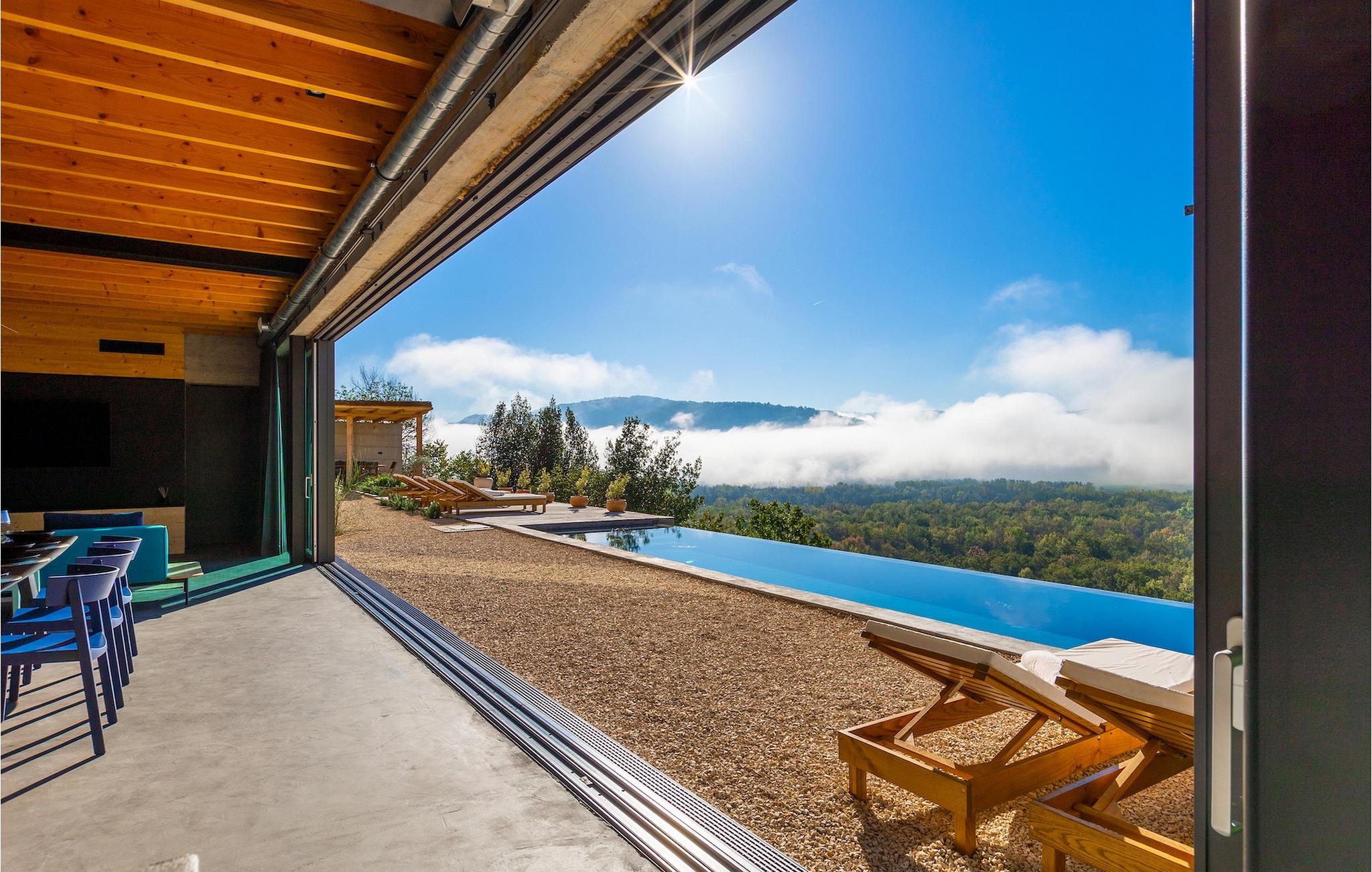 In Zentralistrien nahe Motovun auf einer Anhöhe gelegen, bietet sich Ihnen hier ein wahrhaft magischer Ausblick, denn diese luxuriöse Villa ist von grünen Feldern, Weinbergen und Hügeln umgeben.