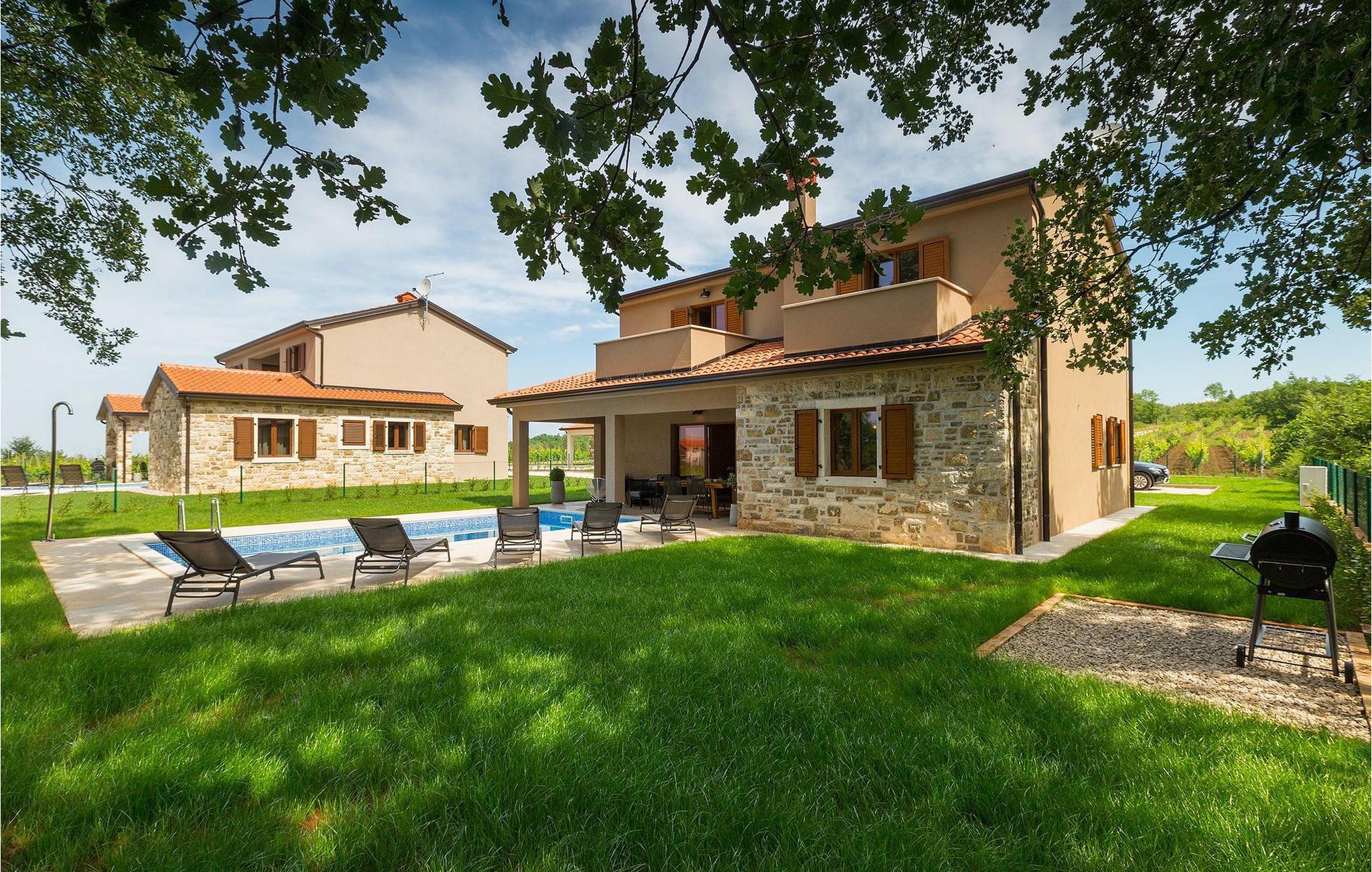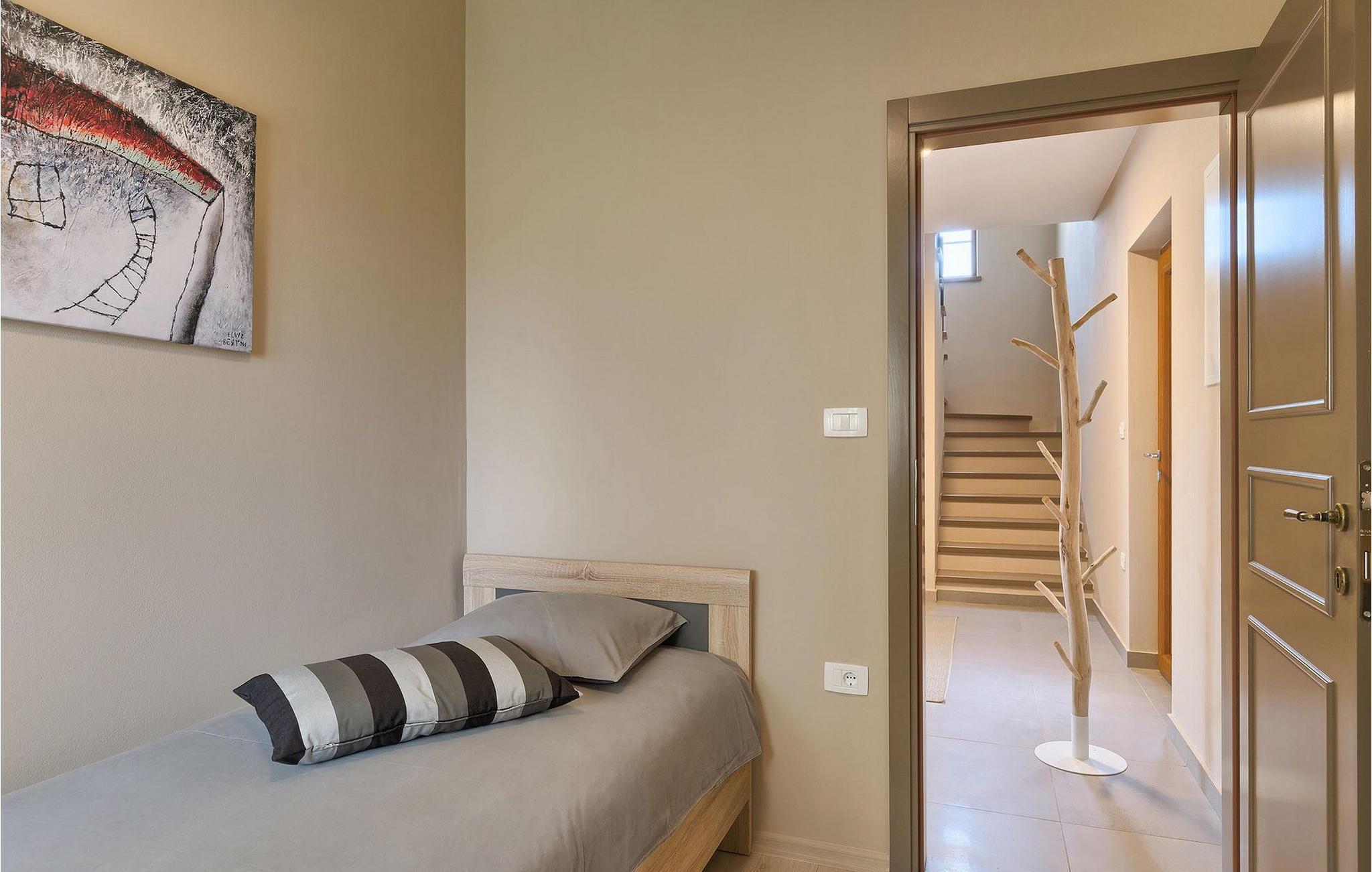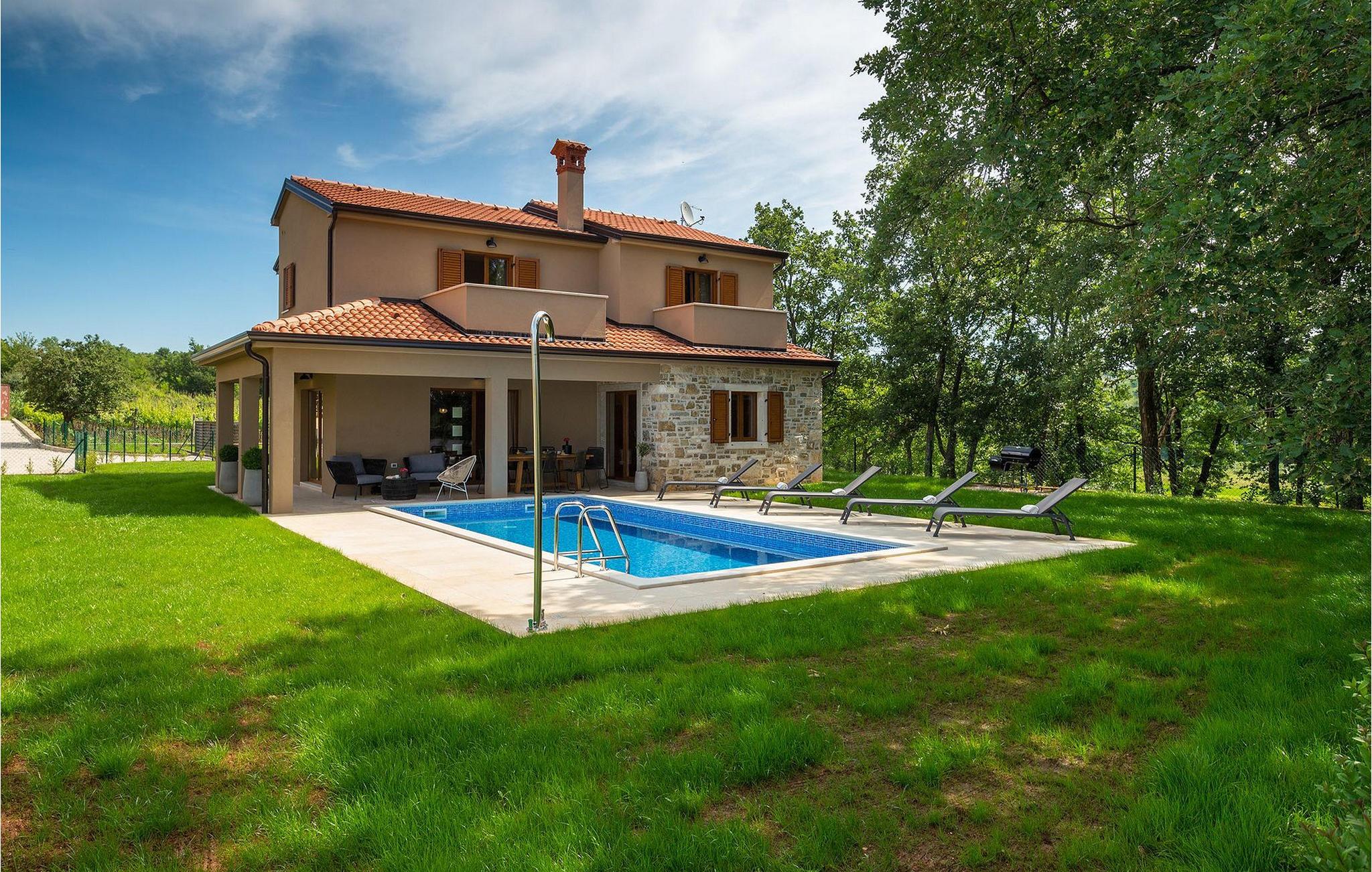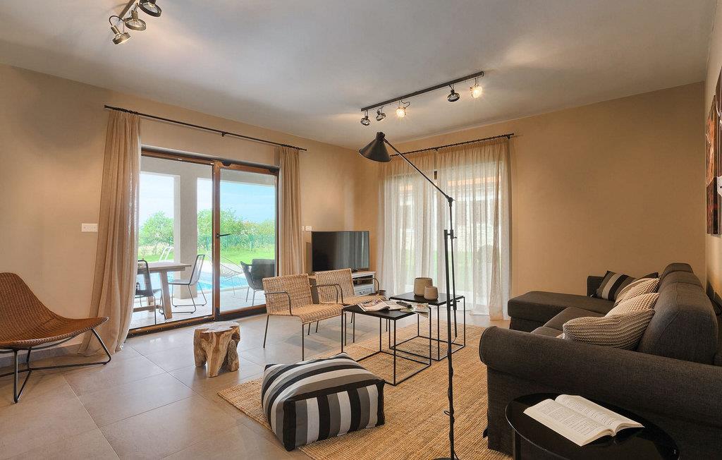 Villaens stueetage består af en luftig opholdsstue med direkte adgang til haven og poolområdet, samt en fuldt udstyret køkken med spiseplads. Et toilet og et værelse med en enkeltseng findes også i stueetagen, mens de resterende tre soveværelser, hver med en dobbeltseng, er på øverste etage. Et af disse soveværelser har eget badeværelse og adgang til en af de to altaner, hvor du kan nyde en kop kaffe under den varme istriske sol om morgenen.