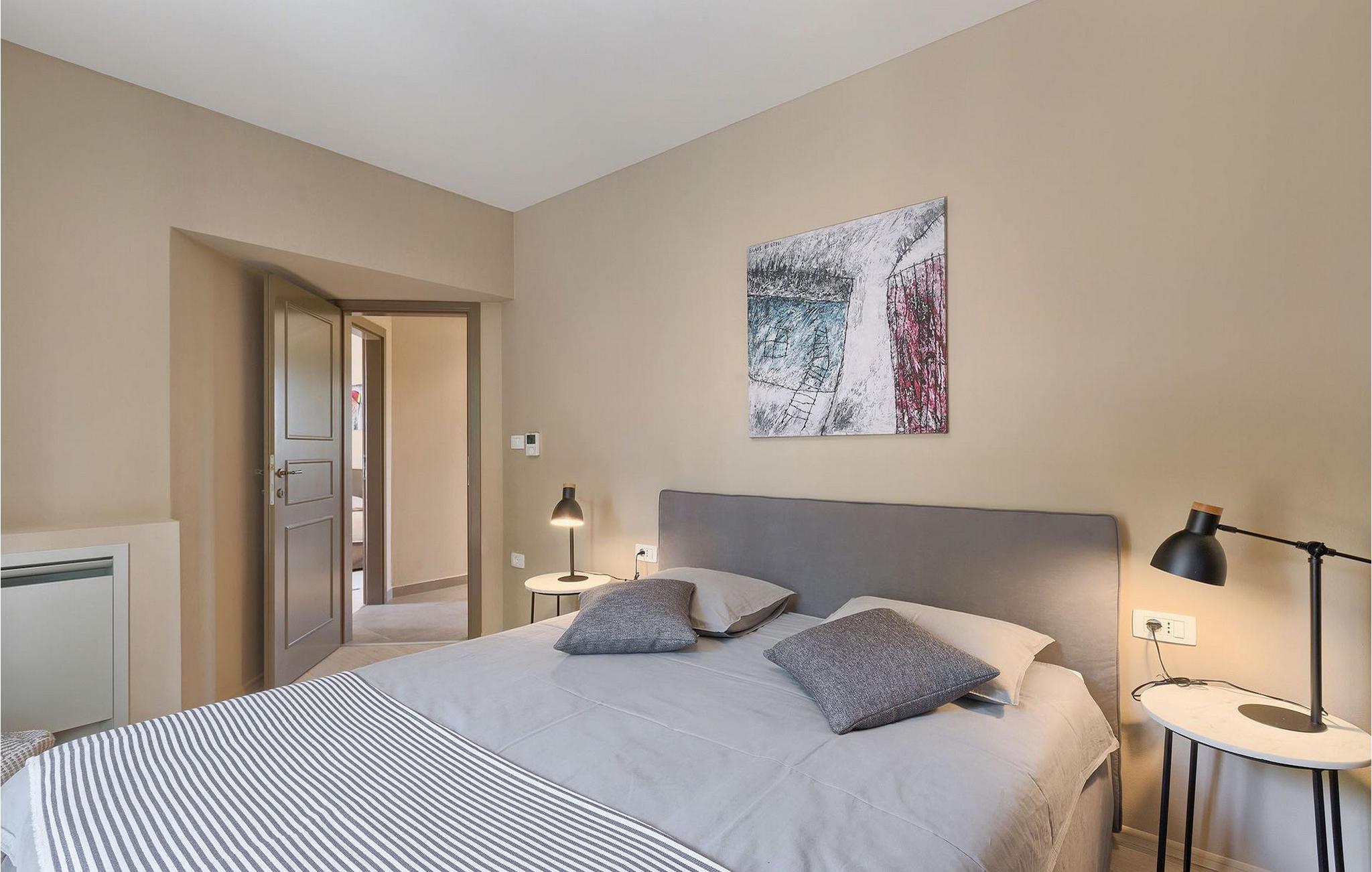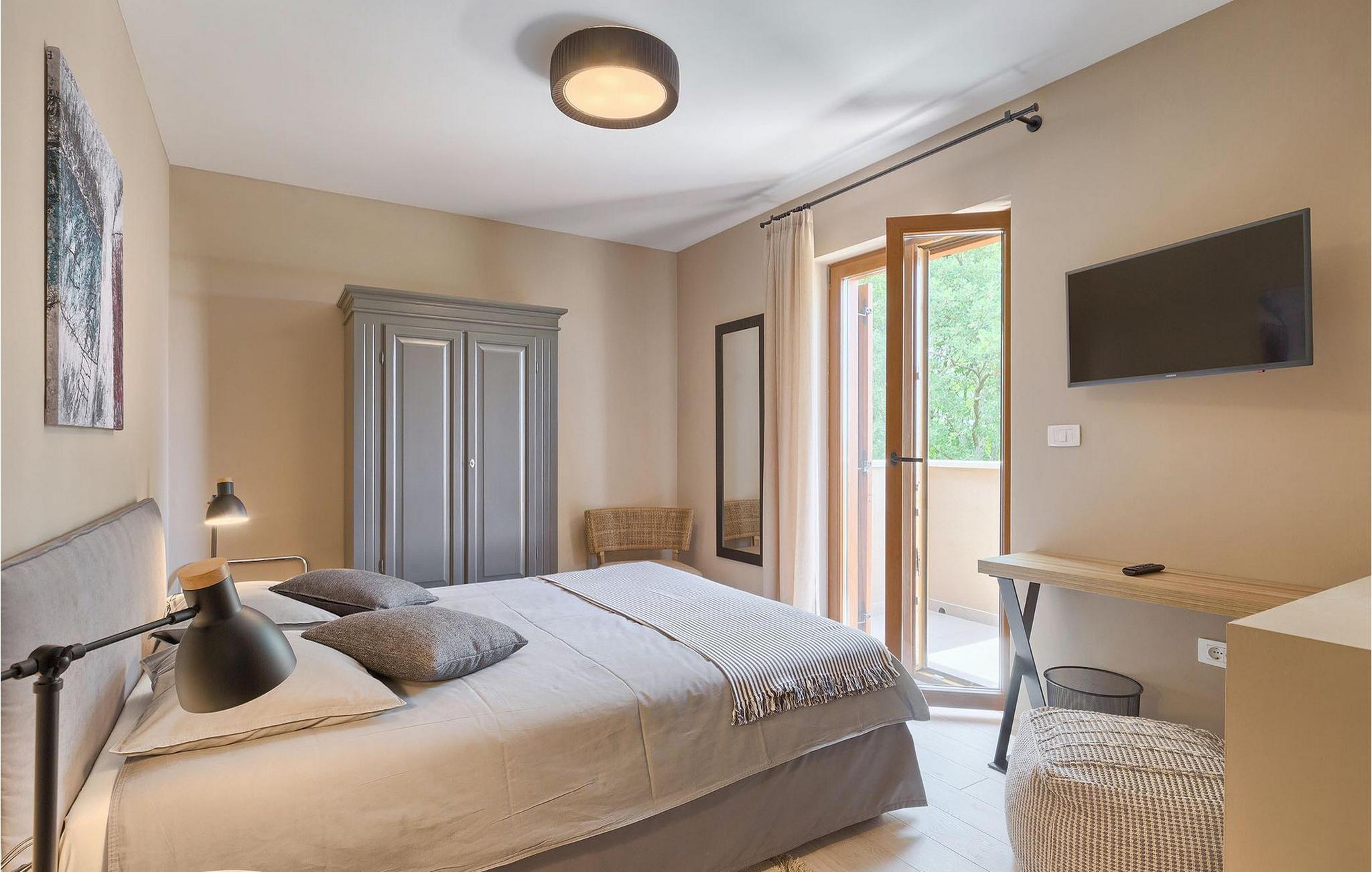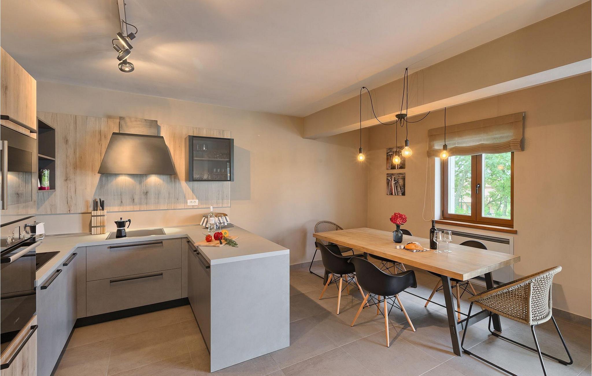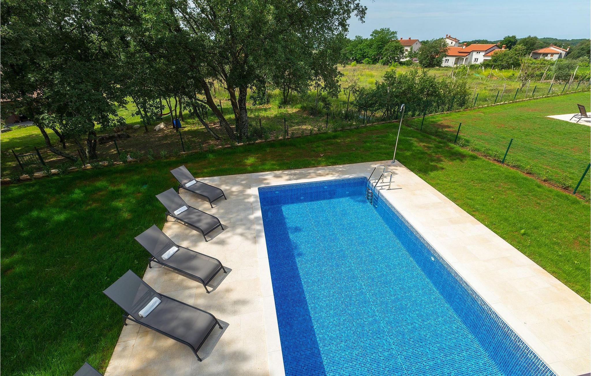 Villaens stueetage består af en luftig opholdsstue med direkte adgang til haven og poolområdet, samt en fuldt udstyret køkken med spiseplads. Et toilet og et værelse med en enkeltseng findes også i stueetagen, mens de resterende tre soveværelser, hver med en dobbeltseng, er på øverste etage. Et af disse soveværelser har eget badeværelse og adgang til en af de to altaner, hvor du kan nyde en kop kaffe under den varme istriske sol om morgenen.