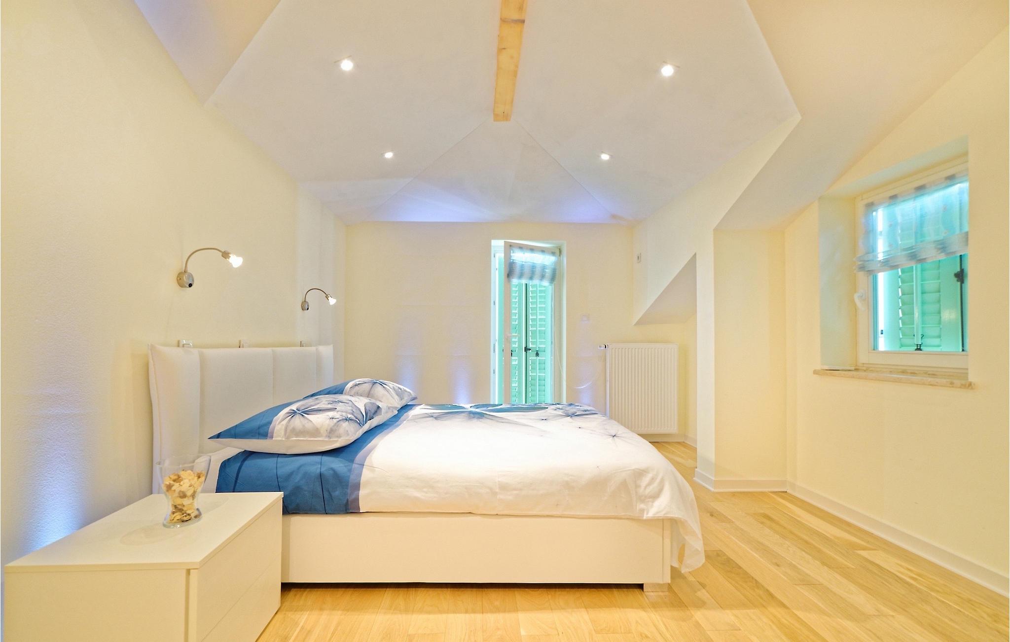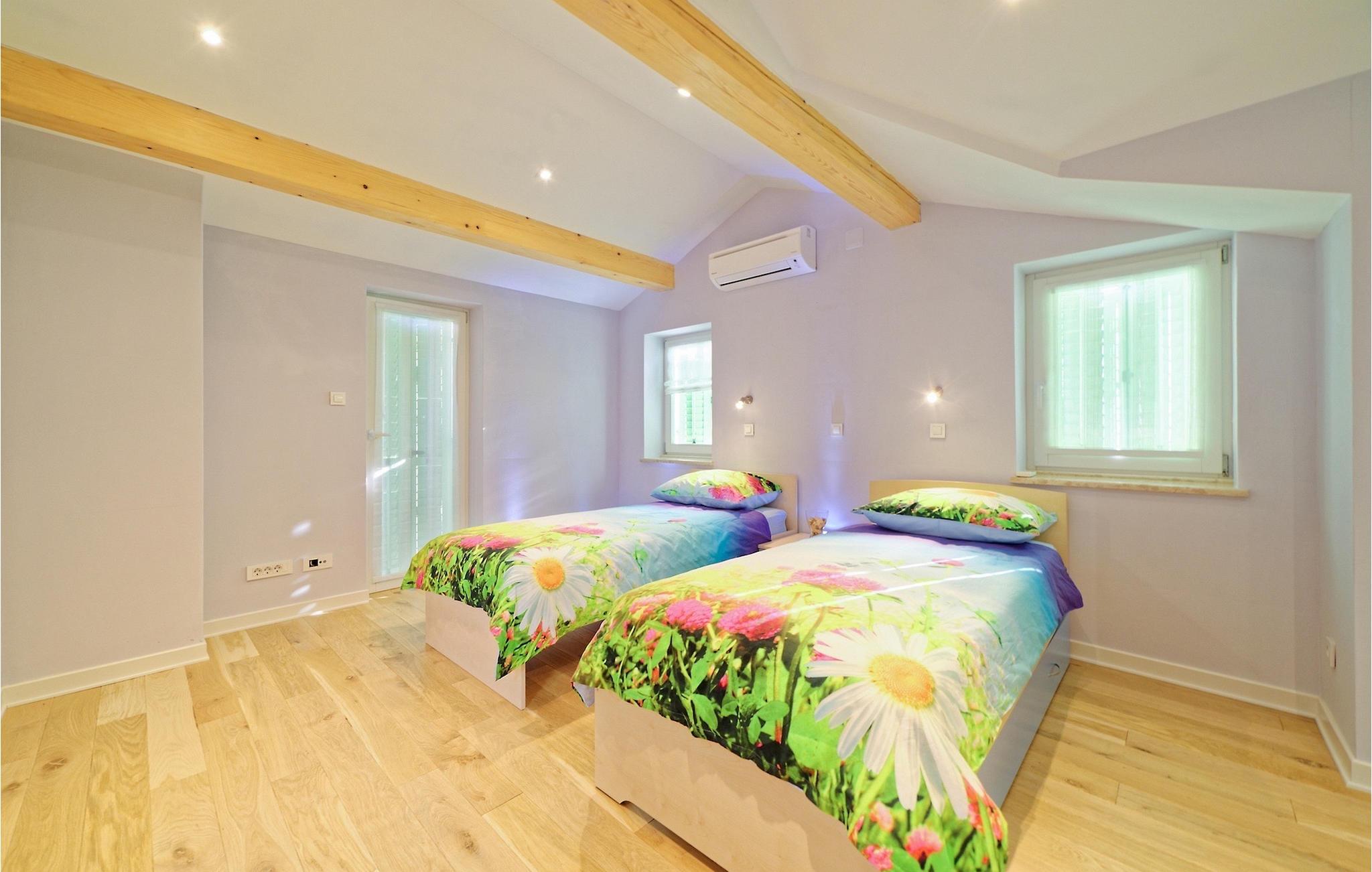 Die Treppe führt Sie zur ersten Etage, wo sich zwei Schlafzimmer mit Doppelbetten befinden, jeweils mit eigenem Bad mit Dusche. Zwei weitere Schlafzimmer, eines mit Doppelbett und eines mit zwei Einzelbetten, gibt es auf der zweiten Etage. Nutzen Sie Ihren Urlaub, um dem Alltagsstress zu entfliehen und endlich gut zu schlafen! Da alle Schlafzimmer Zugang zu einem Balkon haben, können Sie morgens als Erstes den Balkon betreten, die frische Luft und die ersten Sonnenstrahlen genießen.