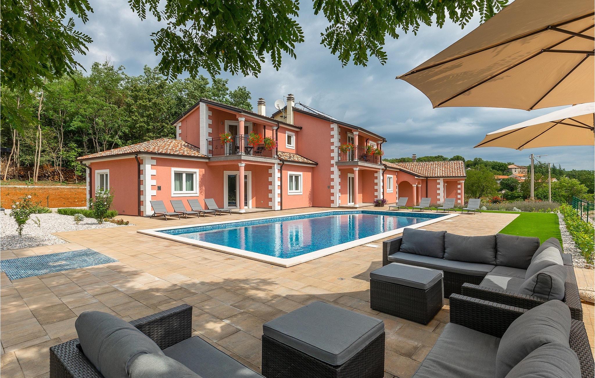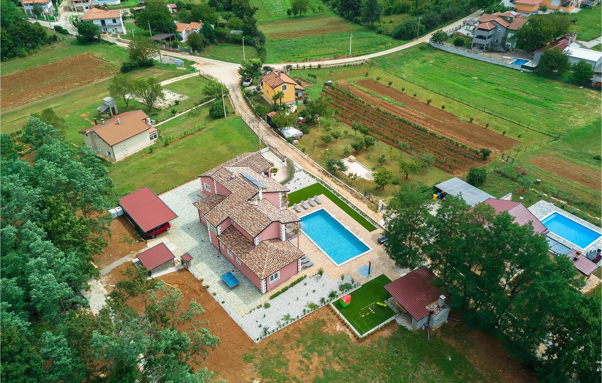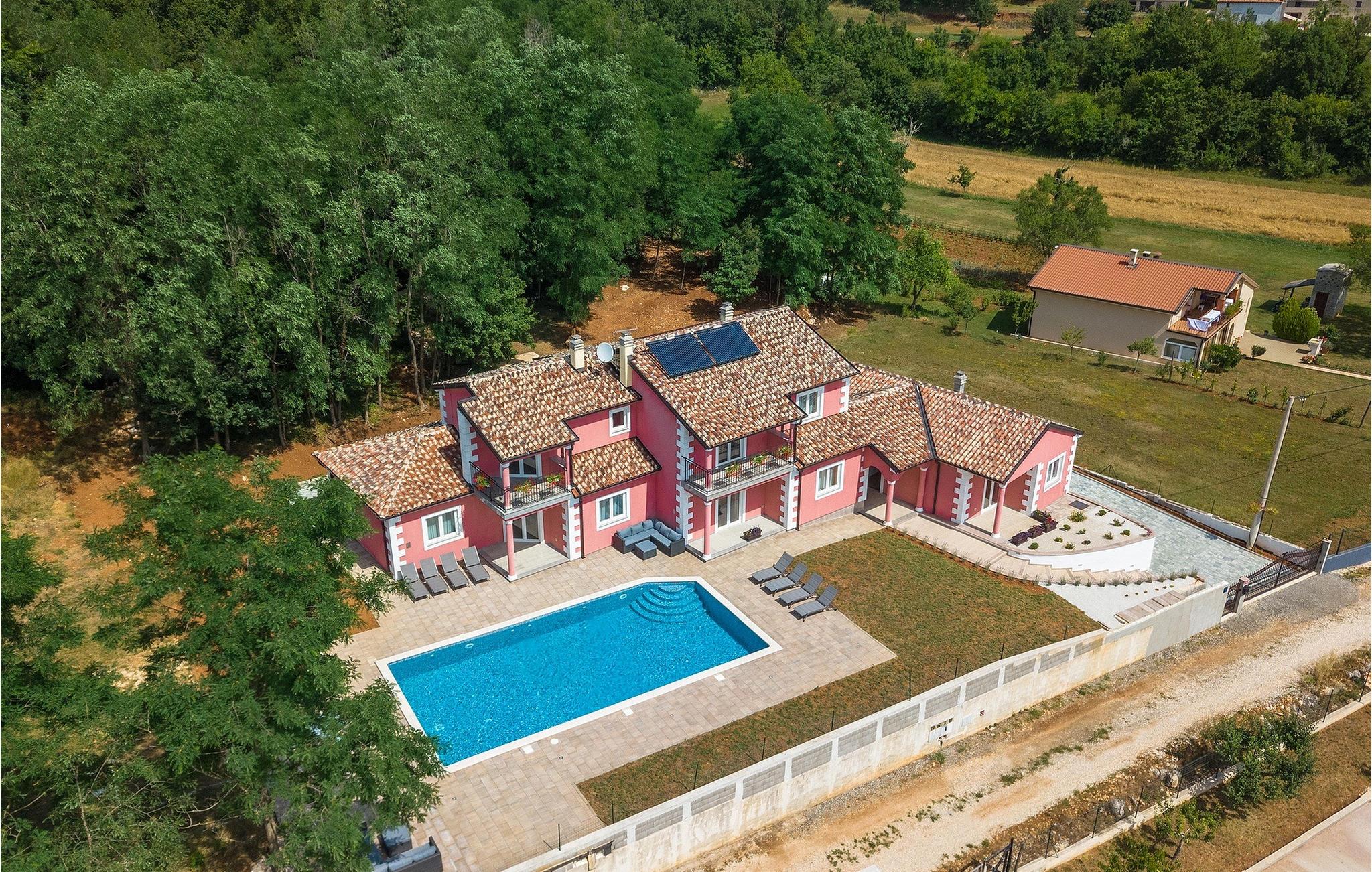 Den charmerende Villa Rose Mocitada er det ideelle sted for din ferie. Omgivet af natur ligger det på en stor ejendom med privat parkering og swimmingpool og kan rumme op til 20 personer i husets rummelige indre. Villaen er en stor bygning med et indvendigt areal på 281m2 og et udvendigt areal på 1180m2. Den består af 4 enheder med hver sin indgang. I alt er der 8 soveværelser og 6 badeværelser, der tilbyder gæsterne fuld komfort. Den moderne stueetage med 3 boligenheder omfatter 3 stuer med fuldt udstyrede køkkener, 6 store soveværelser, 4 badeværelser og 1 toilet. Fra opholdsstuen har du direkte udgang til udearealets terrasse. På husets øverste etage er der en boligenhed med skøn stue og veludstyret køkken. 2 komfortable soveværelser lover afslappende nætter. Der er også 2 badeværelser med bruser. 2 terrasser med udsigt over poolen og det smukke landskab er det perfekte sted at nyde den første kop kaffe om morgenen, inden du begiver dig ud for at udforske regionen. Uden for hjemmet byder denne villa på en ideel kombination af natur, en smuk have omgivet af træer og planter og hygge ved poolen med dine kære. Liggestole og havemøbler er også til rådighed og er et ideelt sted at underholde og nyde solens stråler. Book den smukke villa Rose Mocitada og forkæl dig selv med en uforglemmelig ferie på et smukt sted i Istrien! Landsbyen Rakotule ligger i den nordlige del af Istrien, i tæt afstand til byerne Porec og Motovun. Et besøg i Motovun er umagen værd, da kelterne og illyrerne byggede storslåede fæstninger her i oldtiden, som byder på en unik historisk oplevelse. Navnet på landsbyen er også af keltisk oprindelse og kommer fra ordet Monton, som betyder "by i bakkerne". Udover den smukke udsigt fra bakkerne, kan du også nyde trøffel- og vinsmagning, som dette område er så berømt for. Porec er et populært sommerferiested på kysten af ??halvøen Istrien i det vestlige Kroatien. I den historiske gamle bydel er komplekset af Euphrasius-basilikaen fra det 6. århundrede berømt for sine byzantinske mosaikker. Kysten nord og syd for byen byder på lystbådehavne og strande med vandsportsaktiviteter.