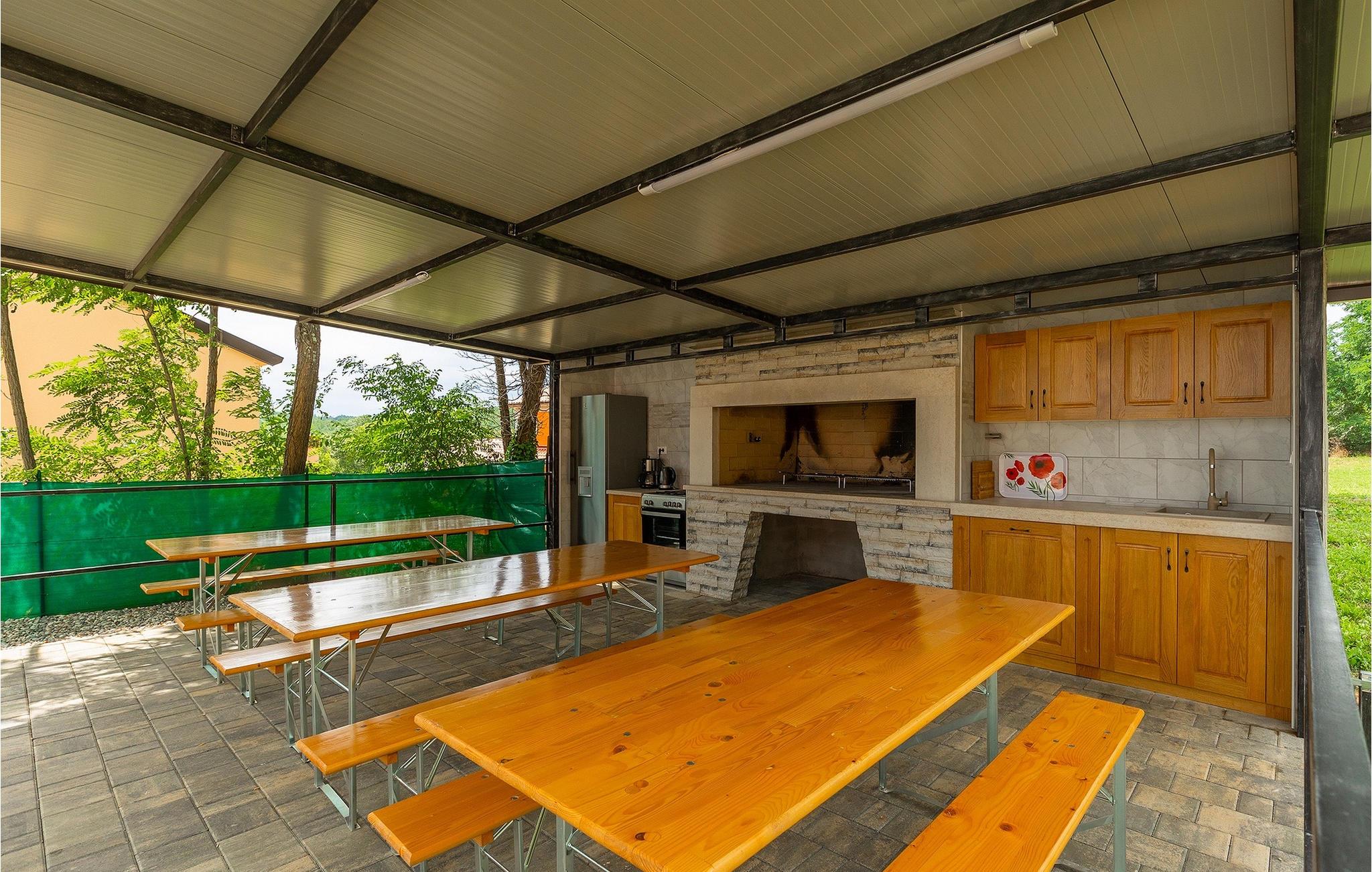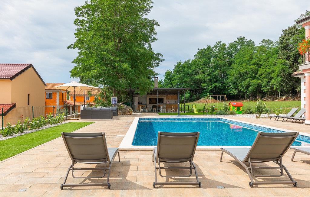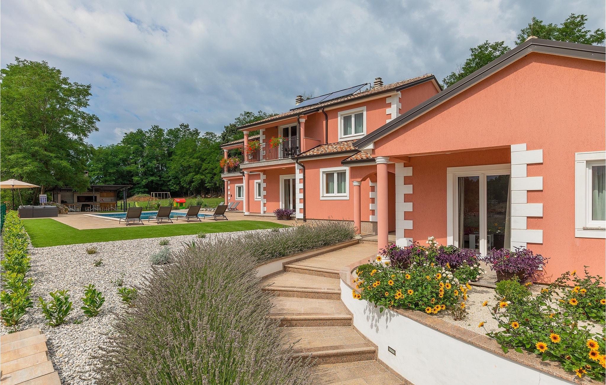 Den charmerende Villa Rose Mocitada er det ideelle sted for din ferie. Omgivet af natur ligger det på en stor ejendom med privat parkering og swimmingpool og kan rumme op til 20 personer i husets rummelige indre. Villaen er en stor bygning med et indvendigt areal på 281m2 og et udvendigt areal på 1180m2. Den består af 4 enheder med hver sin indgang. I alt er der 8 soveværelser og 6 badeværelser, der tilbyder gæsterne fuld komfort. Den moderne stueetage med 3 boligenheder omfatter 3 stuer med fuldt udstyrede køkkener, 6 store soveværelser, 4 badeværelser og 1 toilet. Fra opholdsstuen har du direkte udgang til udearealets terrasse. På husets øverste etage er der en boligenhed med skøn stue og veludstyret køkken. 2 komfortable soveværelser lover afslappende nætter. Der er også 2 badeværelser med bruser. 2 terrasser med udsigt over poolen og det smukke landskab er det perfekte sted at nyde den første kop kaffe om morgenen, inden du begiver dig ud for at udforske regionen. Uden for hjemmet byder denne villa på en ideel kombination af natur, en smuk have omgivet af træer og planter og hygge ved poolen med dine kære. Liggestole og havemøbler er også til rådighed og er et ideelt sted at underholde og nyde solens stråler. Book den smukke villa Rose Mocitada og forkæl dig selv med en uforglemmelig ferie på et smukt sted i Istrien! Landsbyen Rakotule ligger i den nordlige del af Istrien, i tæt afstand til byerne Porec og Motovun. Et besøg i Motovun er umagen værd, da kelterne og illyrerne byggede storslåede fæstninger her i oldtiden, som byder på en unik historisk oplevelse. Navnet på landsbyen er også af keltisk oprindelse og kommer fra ordet Monton, som betyder "by i bakkerne". Udover den smukke udsigt fra bakkerne, kan du også nyde trøffel- og vinsmagning, som dette område er så berømt for. Porec er et populært sommerferiested på kysten af ??halvøen Istrien i det vestlige Kroatien. I den historiske gamle bydel er komplekset af Euphrasius-basilikaen fra det 6. århundrede berømt for sine byzantinske mosaikker. Kysten nord og syd for byen byder på lystbådehavne og strande med vandsportsaktiviteter.