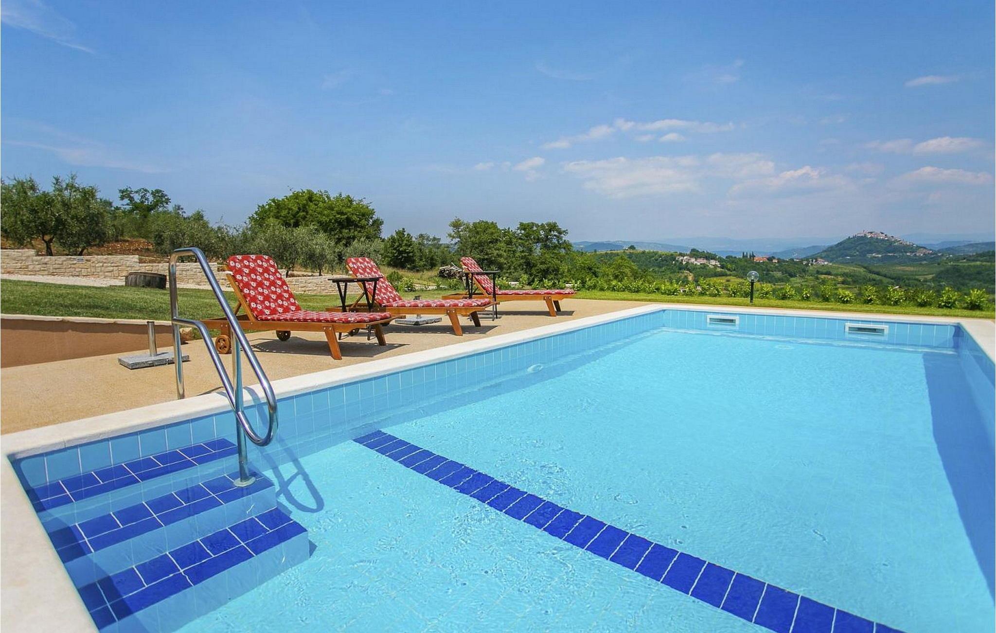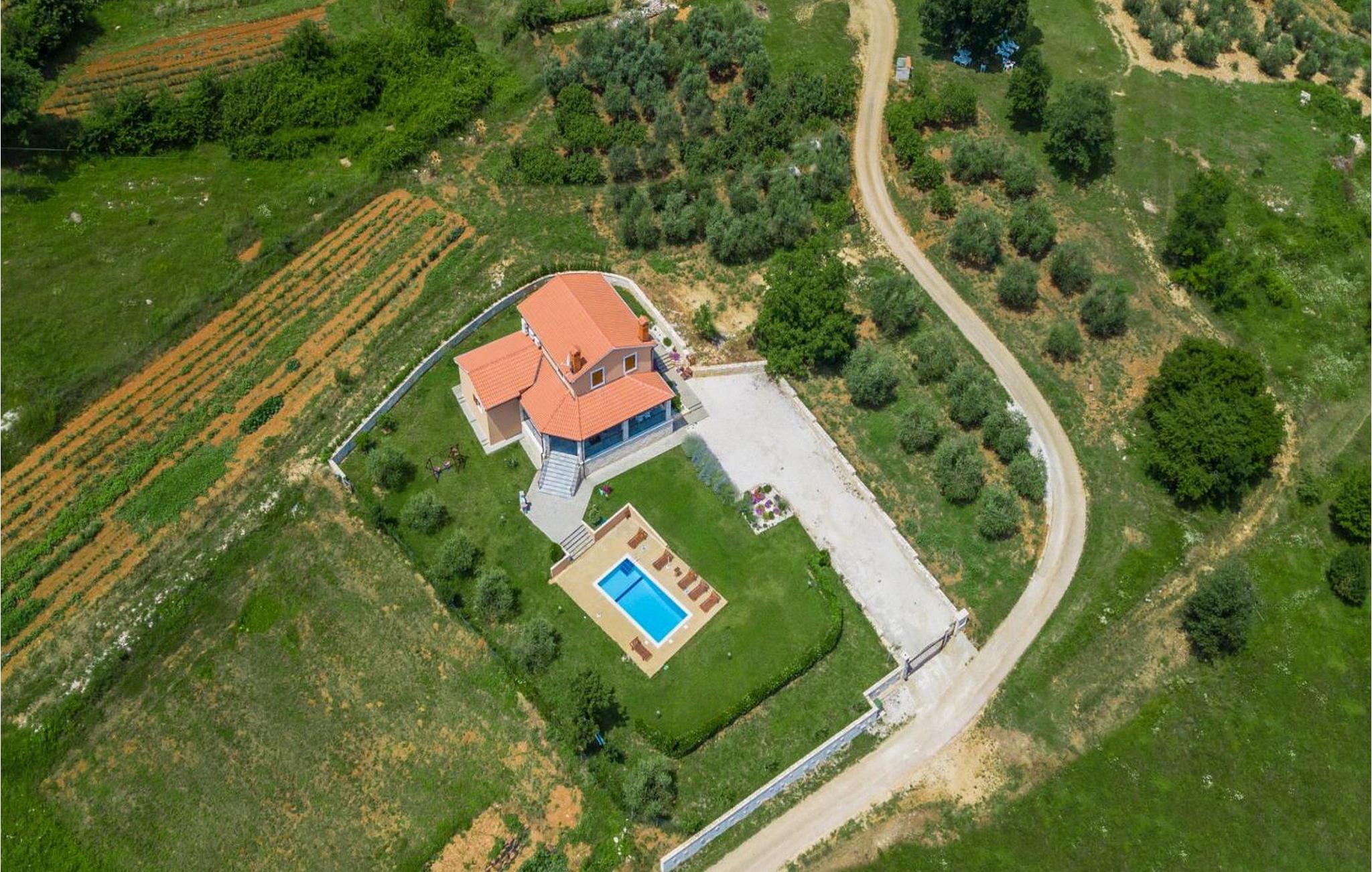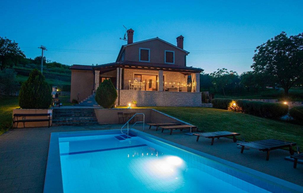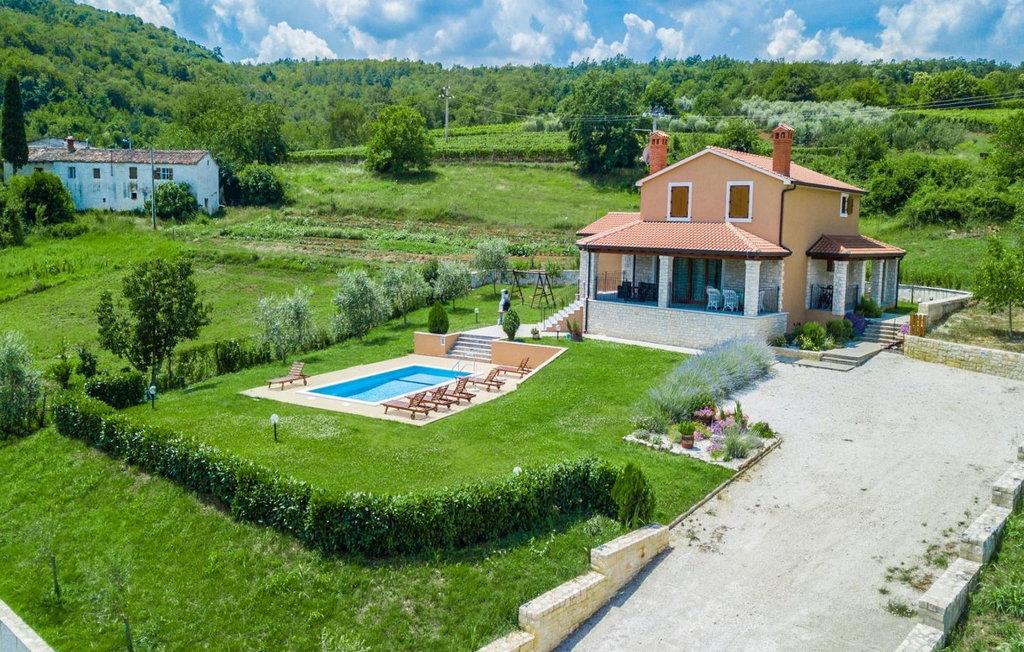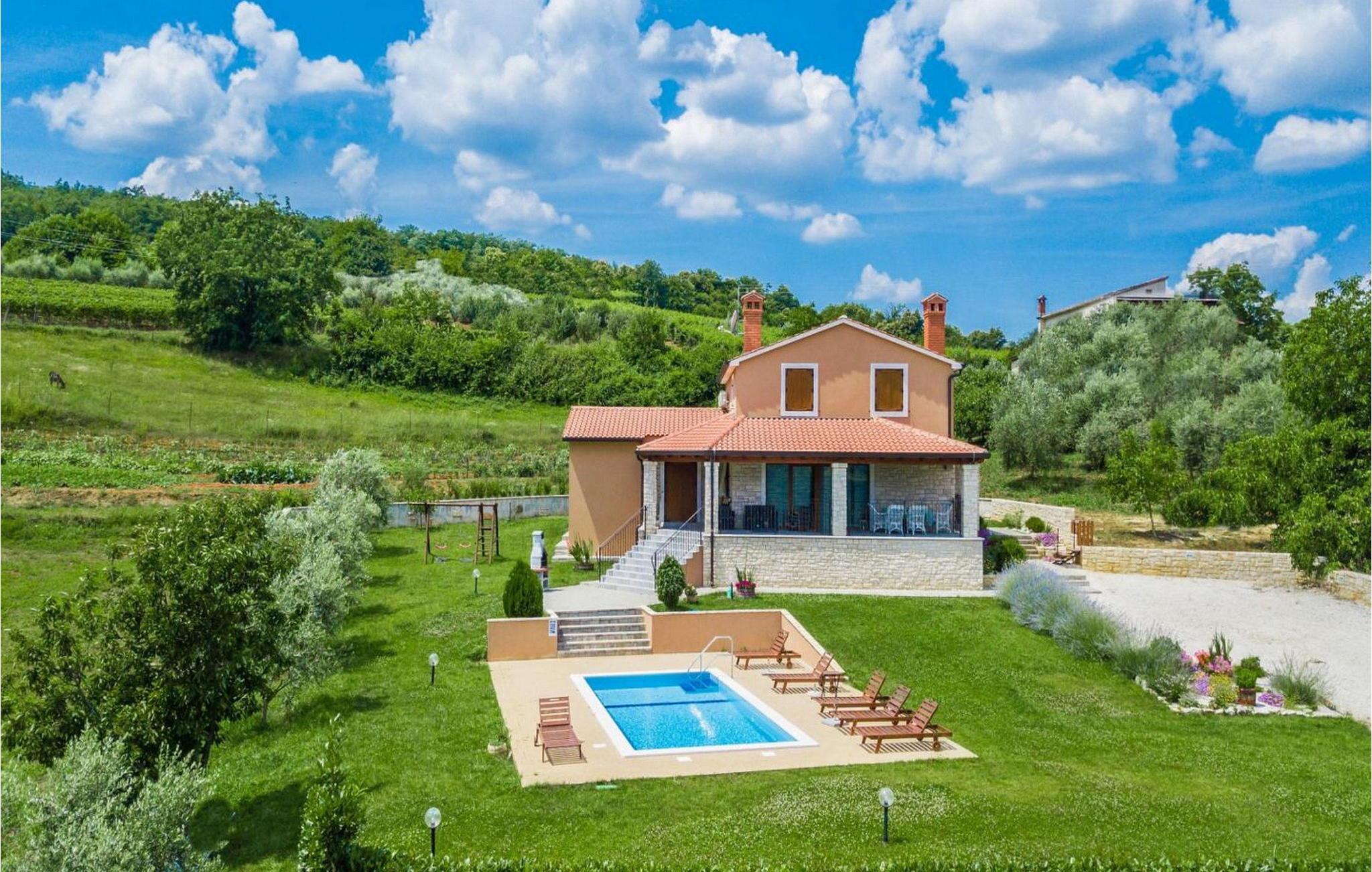 Villa Fiore Spinovci er et nybygget landsted med swimmingpool beliggende i det grønne indre af Istrien med smuk udsigt over middelalderbyen Motovun og de frodige bakker. Huset er opført i 2015 og har egen indhegnet grund på 1600 kvm med velholdt græsplæne. Gæsterne på Villa Fiore Spinovci har følgende udendørs faciliteter til rådighed: overdækket terrasse med bord og stole til udendørs spisning, grill, swimmingpool på 32 kvm, parkering til flere biler og en lille legeplads. Feriehus til 6 gæster med 200 kvm boligareal fordelt på to etager med aircondition. Det består af en stueetage, hvor vi finder en rummelig opholdsstue med et fuldt udstyret køkken, spisebord, satellit-tv og adgang til terrassen, et soveværelse med aircondition med dobbeltseng, badeværelse/toilet og adgang til terrassen, separat toilet og spisekammer. På første sal er der to airconditionerede soveværelser med dobbeltseng og eget badeværelse/toilet, det ene med jacuzzi. BEMÆRK: Kun 200 meter fra huset ligger den landlige husstand Tikel hvor det er muligt at bestille morgenmad, frokost eller aftensmad baseret på lokale, økologisk dyrkede fødevarer og at købe kvalitetsvin og olivenolie til rimelige priser. Bemærk venligst, at denne ejendom ikke accepterer ungdomsgrupper eller polterabends. En ungdomsgruppe på denne ejendom er en gruppe bestående af personer på 26 år eller derunder. Book ikke denne ejendom, hvis du er en ungdomsgruppe eller et polterabend, da din reservation vil blive afvist efter booking, hvilket kan omfatte ved ankomst til ejendommen eller under dit ophold, og du vil ikke blive refunderet.