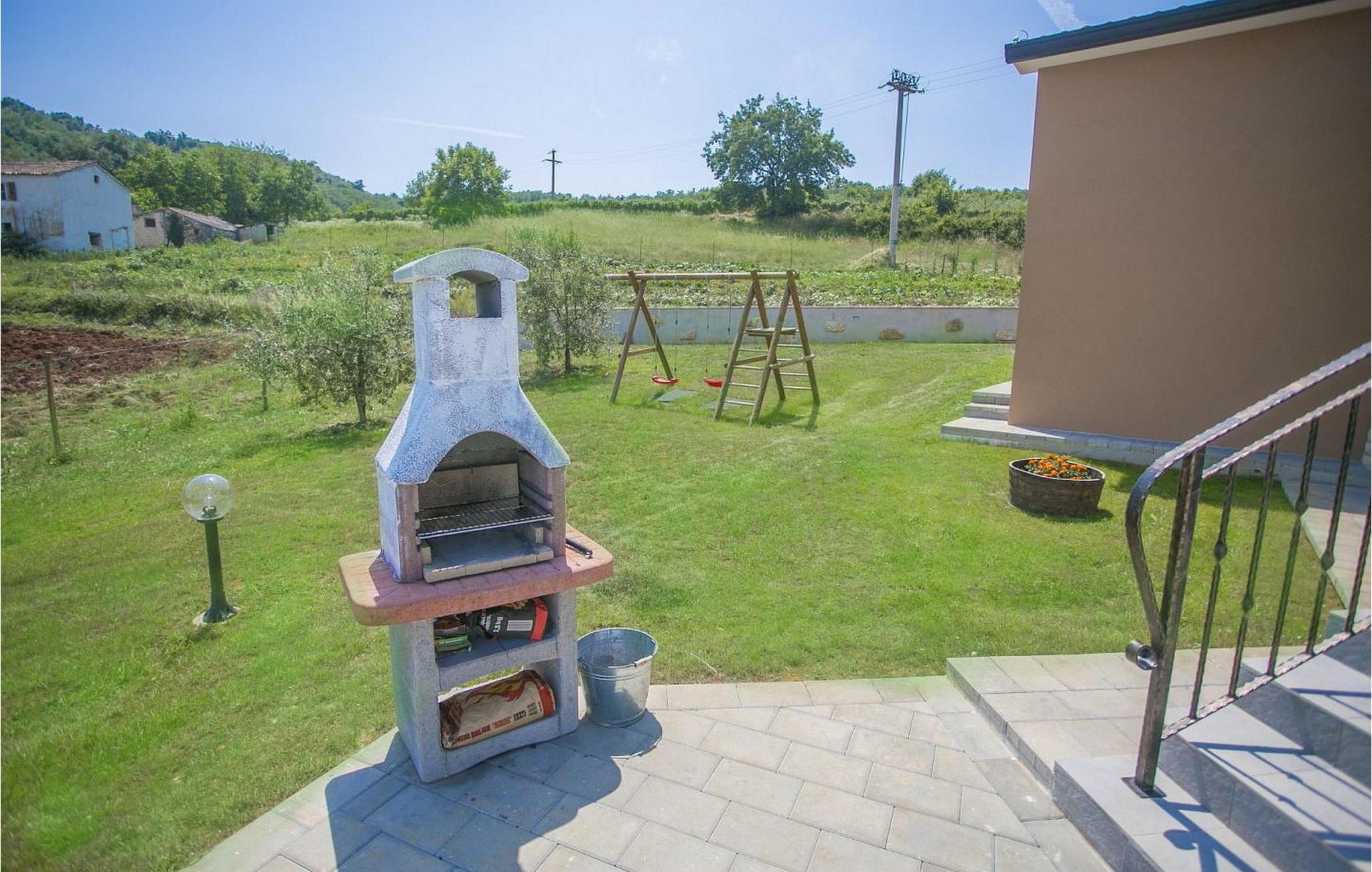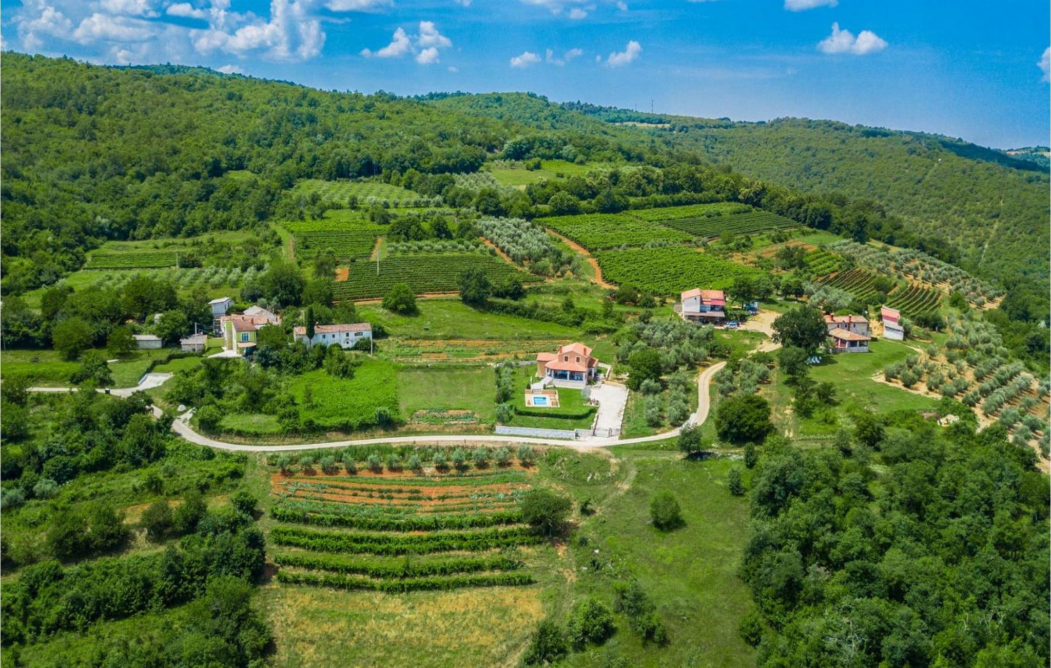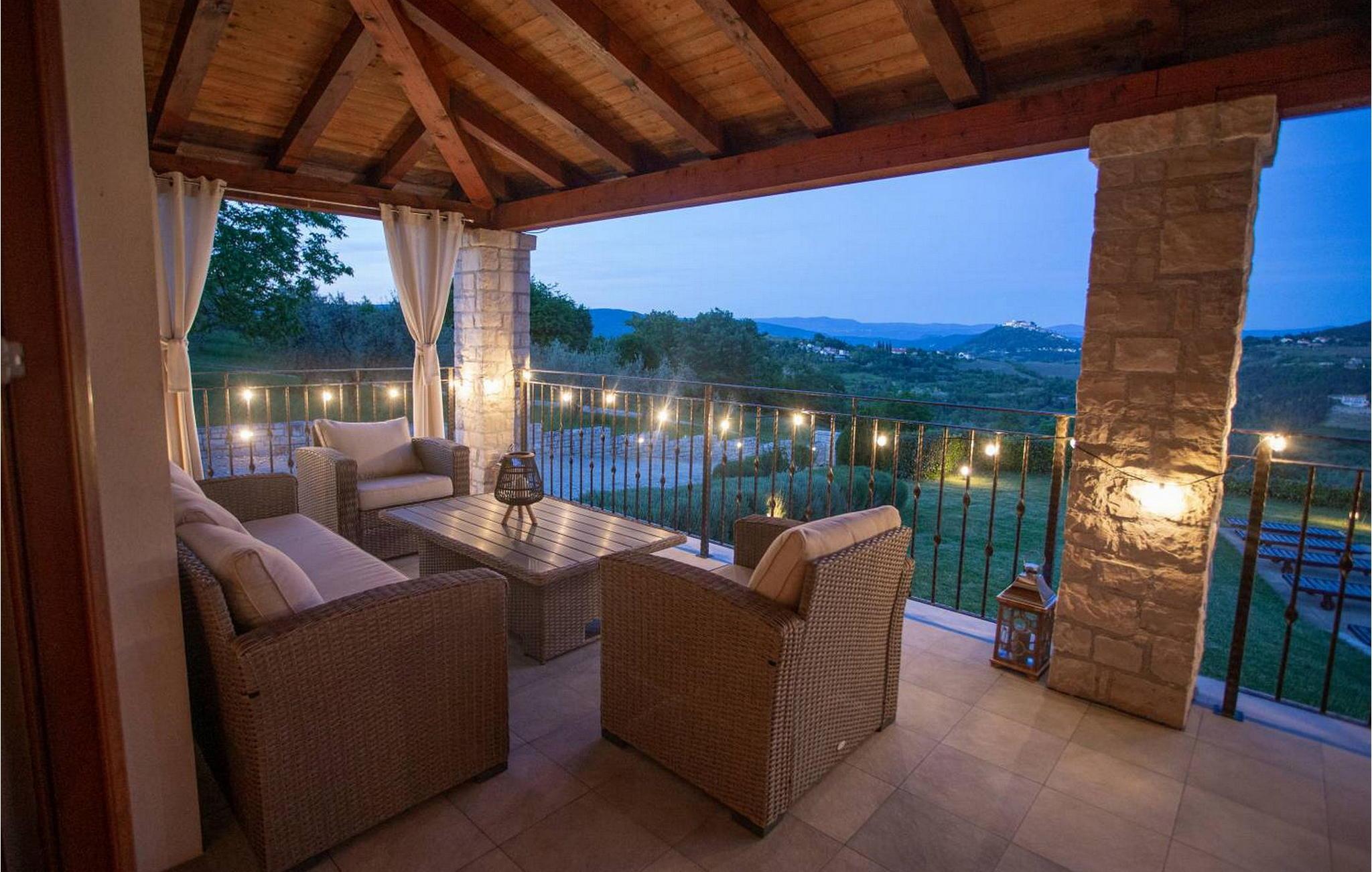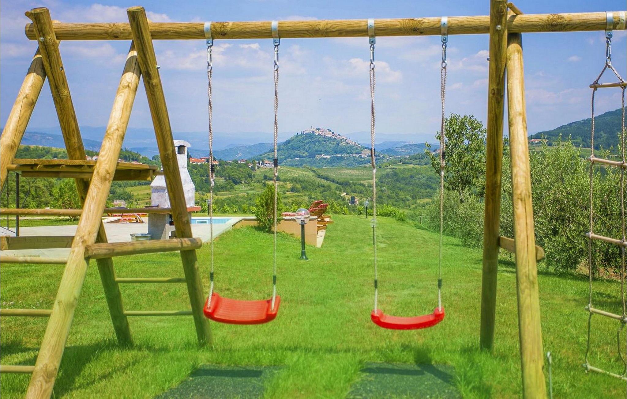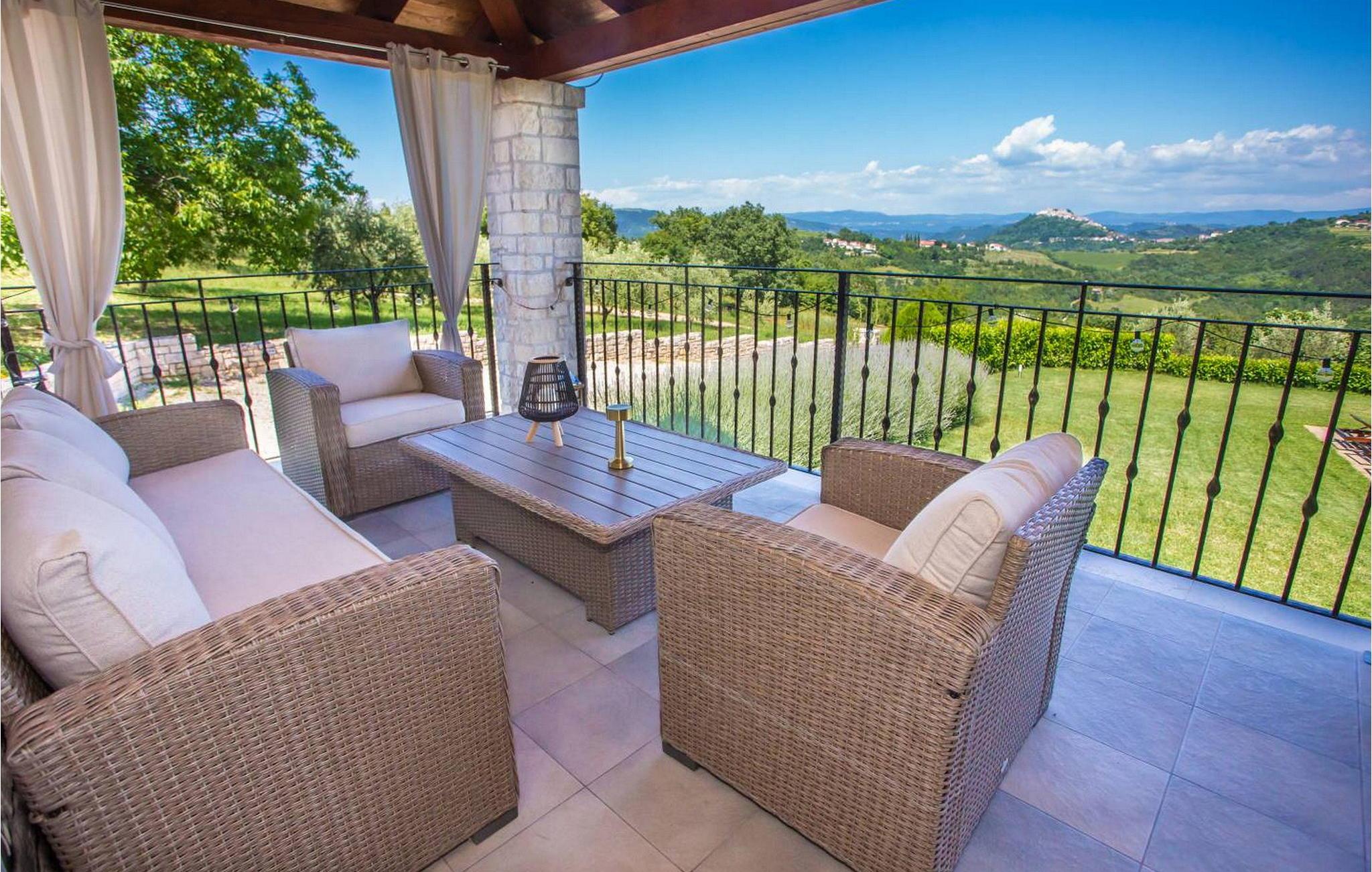 Villa Fiore Spinovci er et nybygget landsted med swimmingpool beliggende i det grønne indre af Istrien med smuk udsigt over middelalderbyen Motovun og de frodige bakker. Huset er opført i 2015 og har egen indhegnet grund på 1600 kvm med velholdt græsplæne. Gæsterne på Villa Fiore Spinovci har følgende udendørs faciliteter til rådighed: overdækket terrasse med bord og stole til udendørs spisning, grill, swimmingpool på 32 kvm, parkering til flere biler og en lille legeplads. Feriehus til 6 gæster med 200 kvm boligareal fordelt på to etager med aircondition. Det består af en stueetage, hvor vi finder en rummelig opholdsstue med et fuldt udstyret køkken, spisebord, satellit-tv og adgang til terrassen, et soveværelse med aircondition med dobbeltseng, badeværelse/toilet og adgang til terrassen, separat toilet og spisekammer. På første sal er der to airconditionerede soveværelser med dobbeltseng og eget badeværelse/toilet, det ene med jacuzzi. BEMÆRK: Kun 200 meter fra huset ligger den landlige husstand Tikel hvor det er muligt at bestille morgenmad, frokost eller aftensmad baseret på lokale, økologisk dyrkede fødevarer og at købe kvalitetsvin og olivenolie til rimelige priser. Bemærk venligst, at denne ejendom ikke accepterer ungdomsgrupper eller polterabends. En ungdomsgruppe på denne ejendom er en gruppe bestående af personer på 26 år eller derunder. Book ikke denne ejendom, hvis du er en ungdomsgruppe eller et polterabend, da din reservation vil blive afvist efter booking, hvilket kan omfatte ved ankomst til ejendommen eller under dit ophold, og du vil ikke blive refunderet.