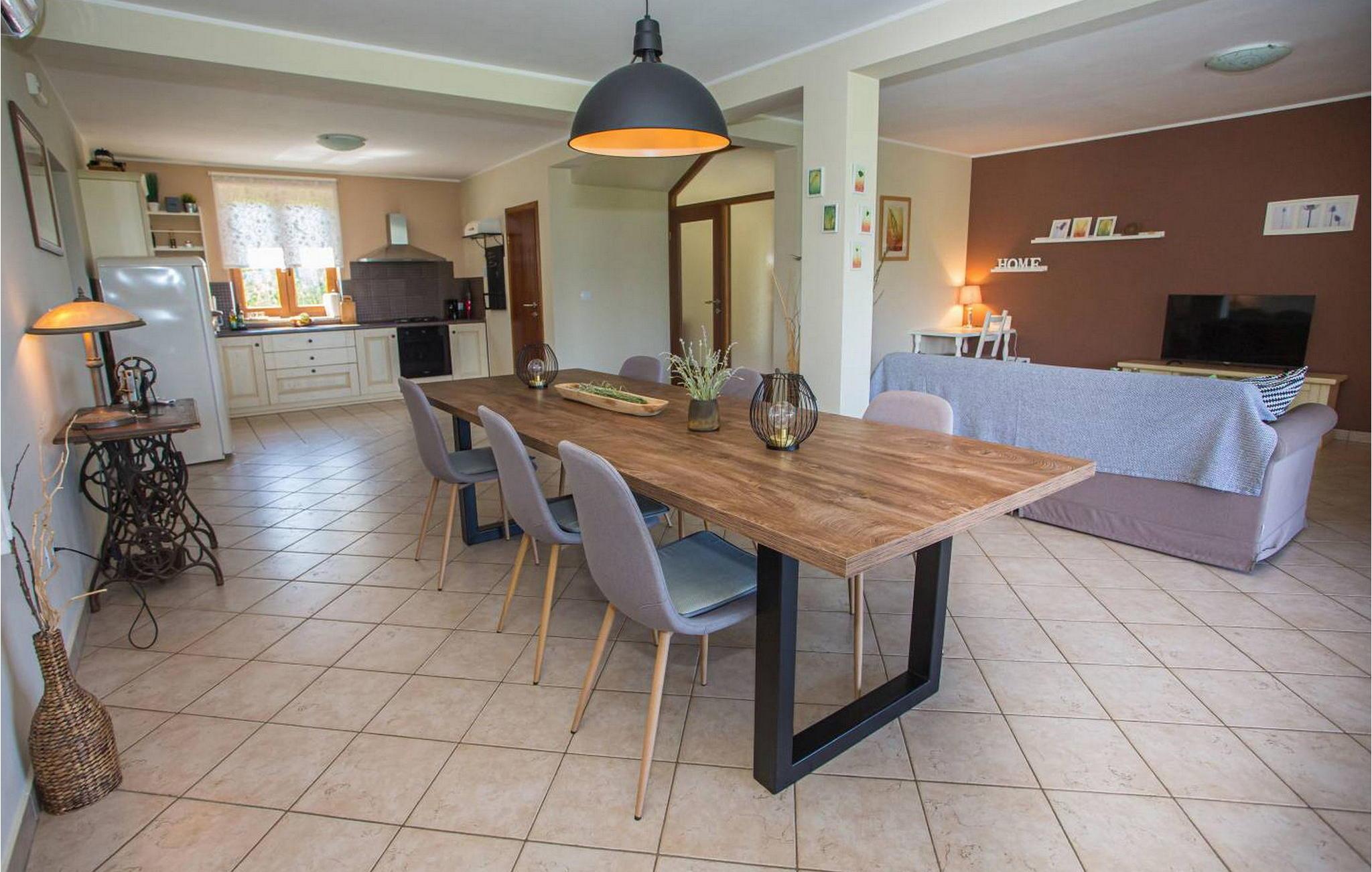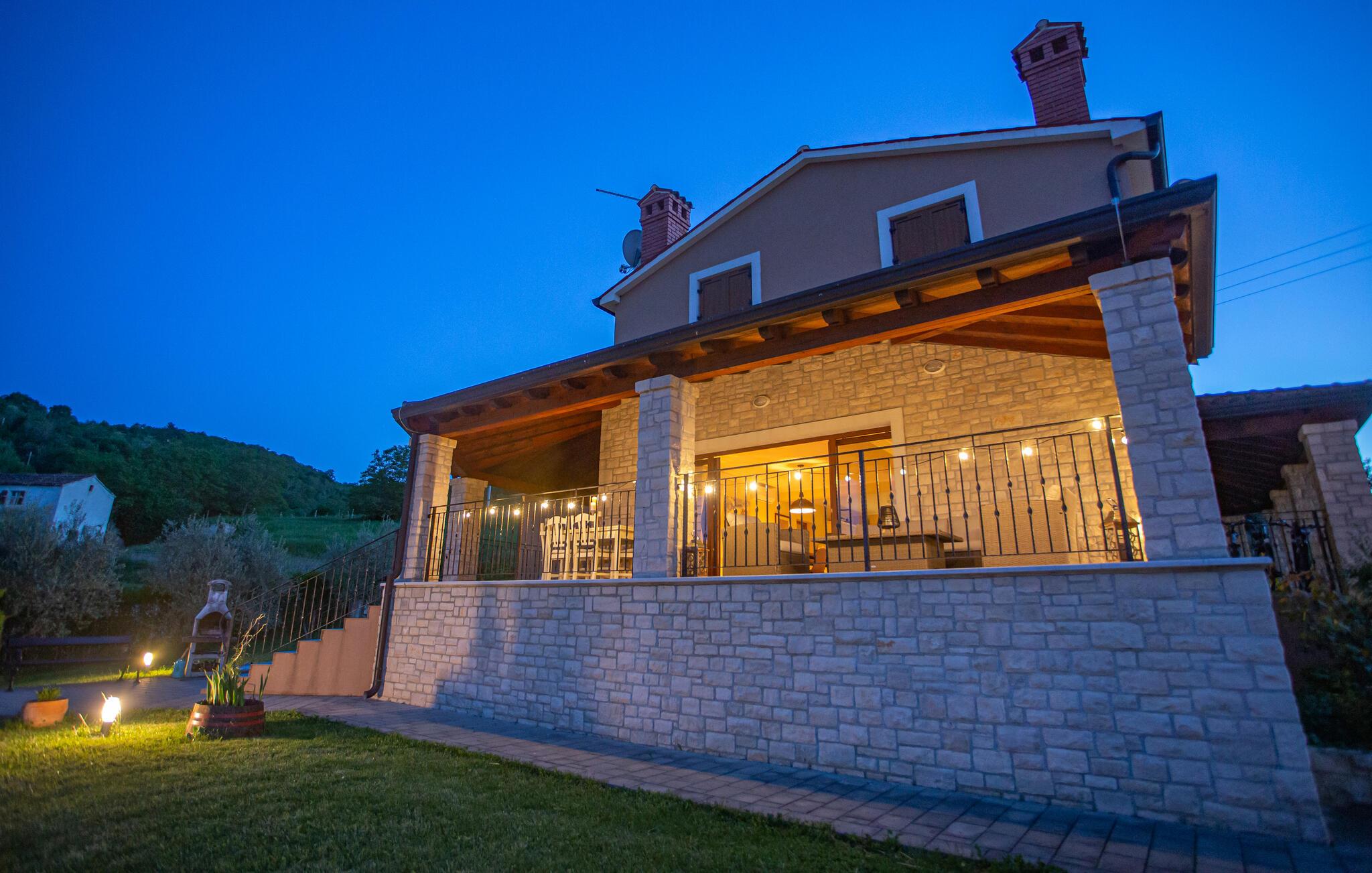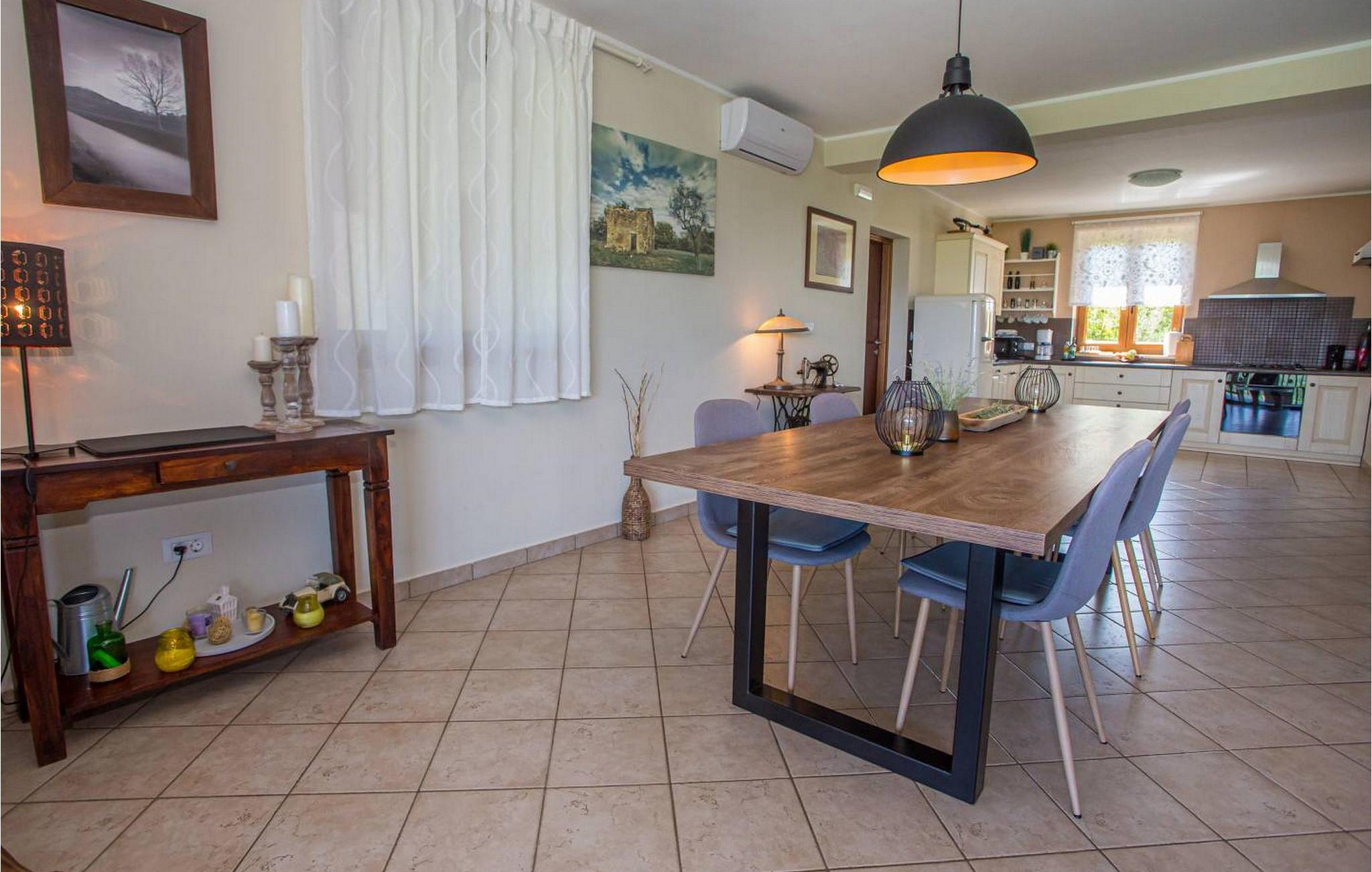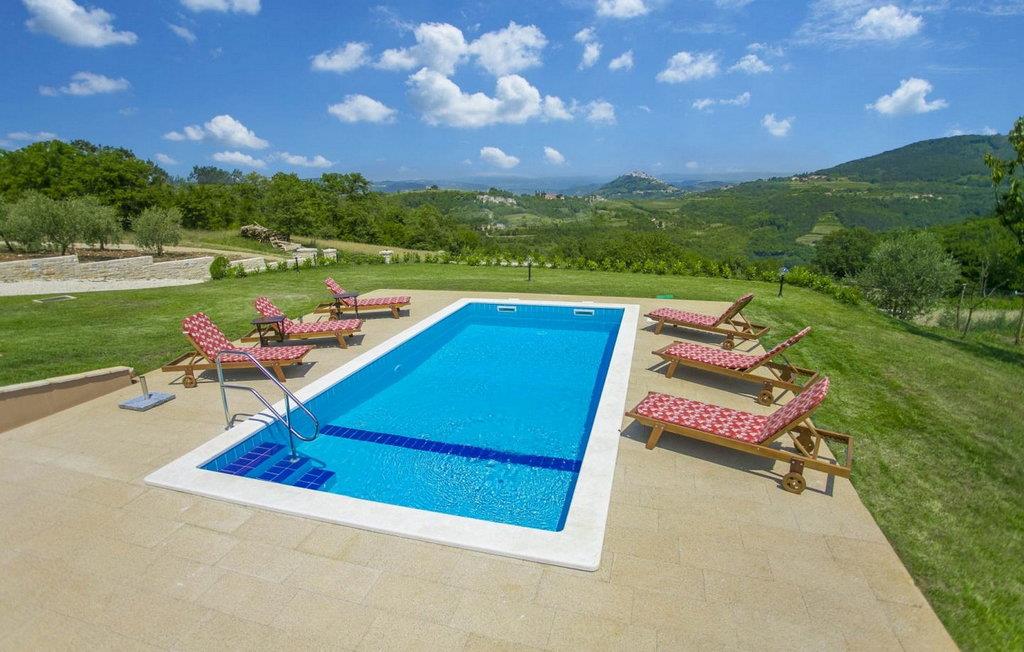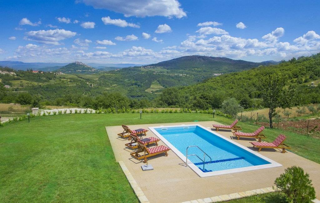 Villa Fiore Spinovci er et nybygget landsted med swimmingpool beliggende i det grønne indre af Istrien med smuk udsigt over middelalderbyen Motovun og de frodige bakker. Huset er opført i 2015 og har egen indhegnet grund på 1600 kvm med velholdt græsplæne. Gæsterne på Villa Fiore Spinovci har følgende udendørs faciliteter til rådighed: overdækket terrasse med bord og stole til udendørs spisning, grill, swimmingpool på 32 kvm, parkering til flere biler og en lille legeplads. Feriehus til 6 gæster med 200 kvm boligareal fordelt på to etager med aircondition. Det består af en stueetage, hvor vi finder en rummelig opholdsstue med et fuldt udstyret køkken, spisebord, satellit-tv og adgang til terrassen, et soveværelse med aircondition med dobbeltseng, badeværelse/toilet og adgang til terrassen, separat toilet og spisekammer. På første sal er der to airconditionerede soveværelser med dobbeltseng og eget badeværelse/toilet, det ene med jacuzzi. BEMÆRK: Kun 200 meter fra huset ligger den landlige husstand Tikel hvor det er muligt at bestille morgenmad, frokost eller aftensmad baseret på lokale, økologisk dyrkede fødevarer og at købe kvalitetsvin og olivenolie til rimelige priser. Bemærk venligst, at denne ejendom ikke accepterer ungdomsgrupper eller polterabends. En ungdomsgruppe på denne ejendom er en gruppe bestående af personer på 26 år eller derunder. Book ikke denne ejendom, hvis du er en ungdomsgruppe eller et polterabend, da din reservation vil blive afvist efter booking, hvilket kan omfatte ved ankomst til ejendommen eller under dit ophold, og du vil ikke blive refunderet.