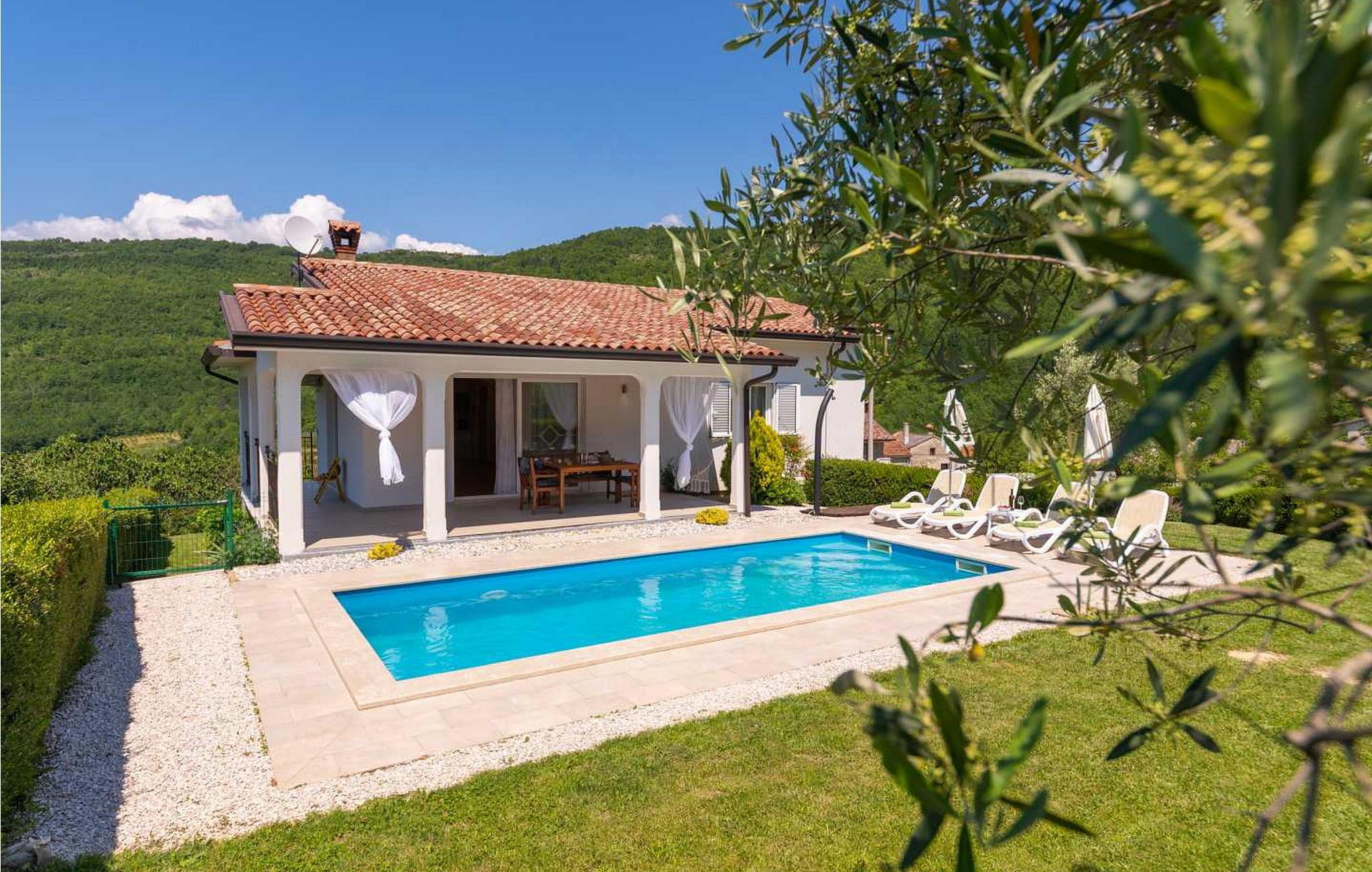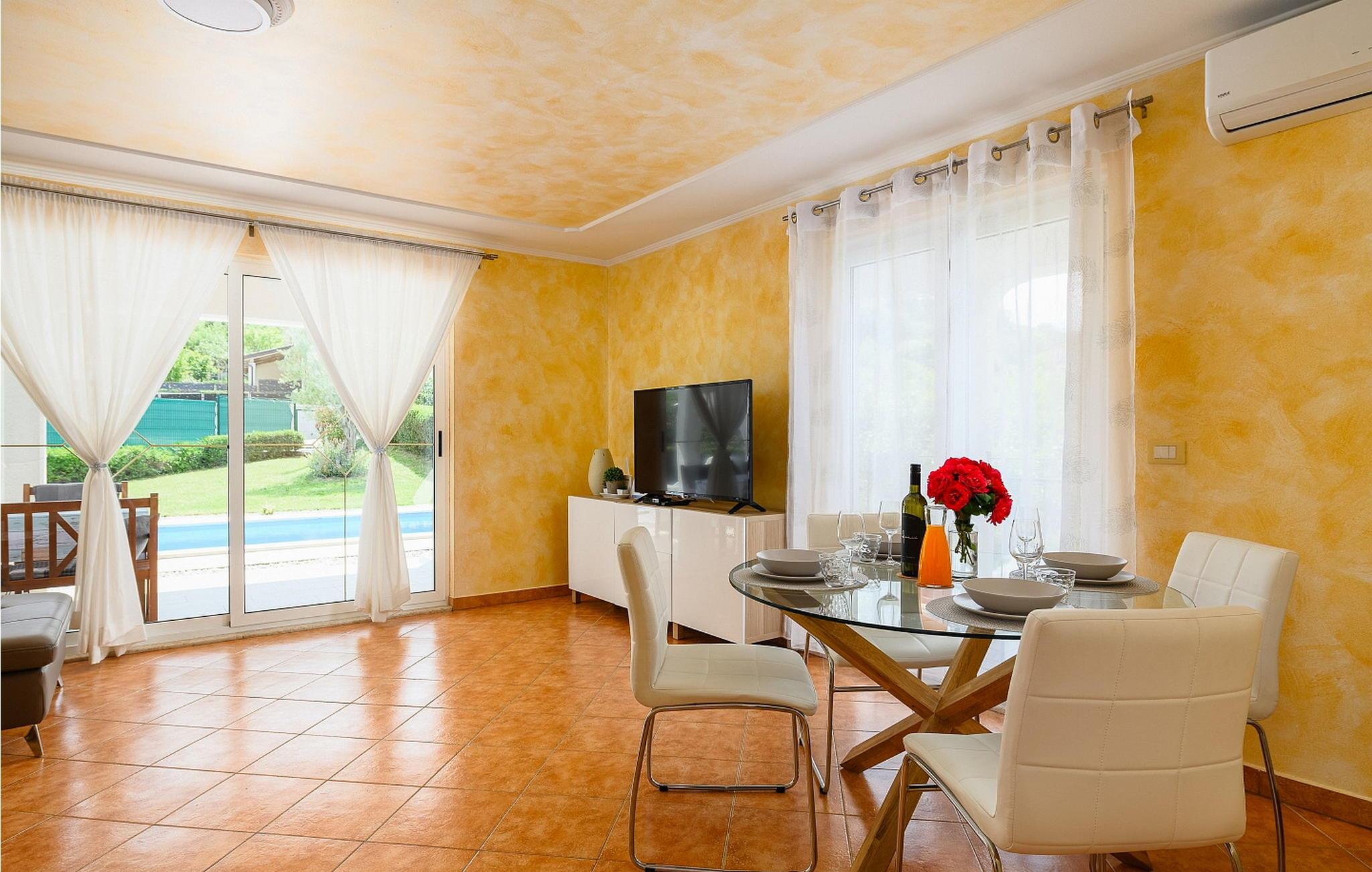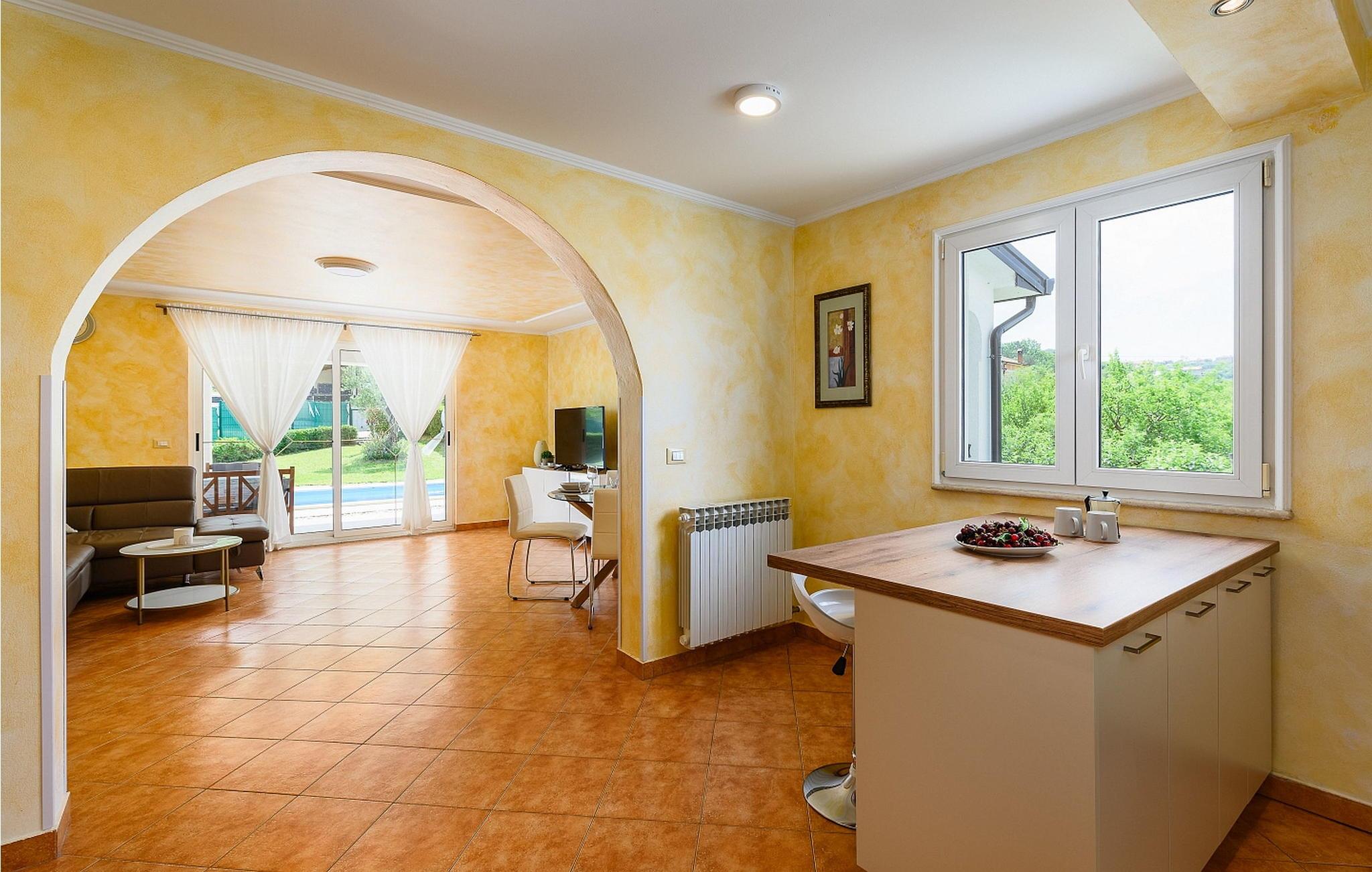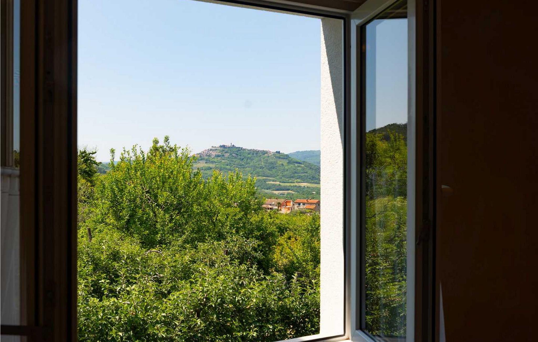Casa Veranda er et charmerende, fritliggende hus i udkanten af den rolige landsby Lazi, et af de grønneste områder i det centrale Istrien. Denne villa er omgivet af frodige frugtplantager og vinmarker og tilbyder en betagende panoramaudsigt over den maleriske middelalderby Motovun. Ejendommen er fuldt indhegnet og har et skønt udeområde med swimmingpool, en velholdt græsplæne og en overdækket terrasse med udendørs spiseplads og grill. Der er også to parkeringspladser til rådighed. Indenfor indeholder Casa Veranda en stue med et veludstyret køkken og spiseplads, en sovesofa samt et brusebad og et separat toilet. Motovun, i hjertet af Istrien, er kendt for sin filmfestival, termiske kilde og velbevarede historiske bygninger. Villaens centrale beliggenhed gør den ideel til at udforske Istriens seværdigheder. Besøg kystbyerne Pula, Rovinj og Porec eller nyd en tur til Brijuni Nationalpark, kendt for sine smukke strande, golfbaner og zoologisk have. Oplev det istriske køkken i lokale taverner eller tag på et trøffeljagteventyr i Motovun-skoven.