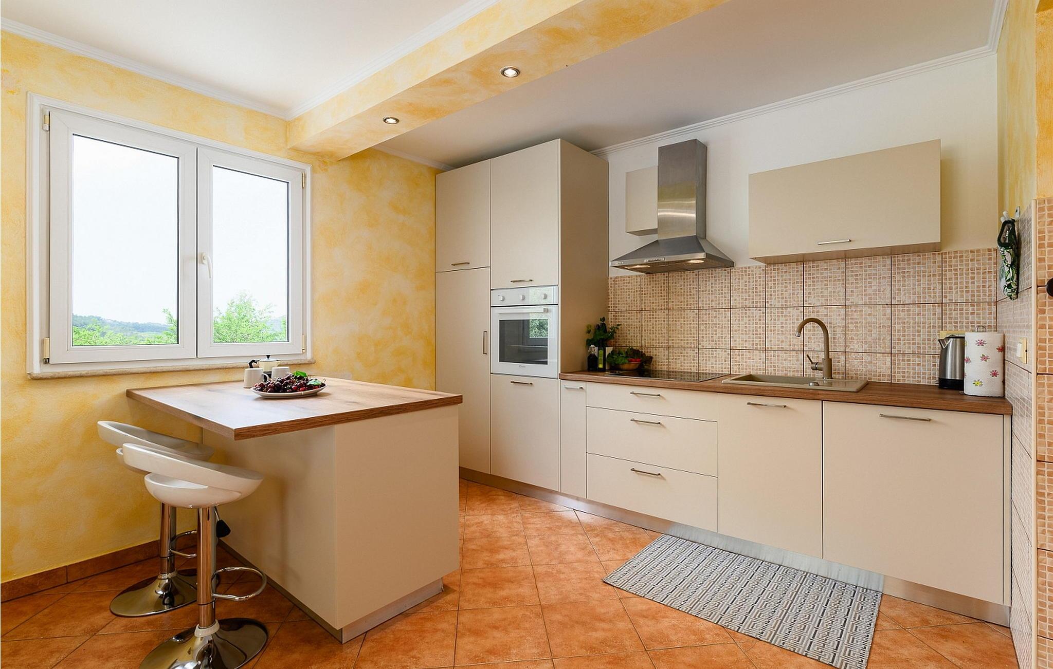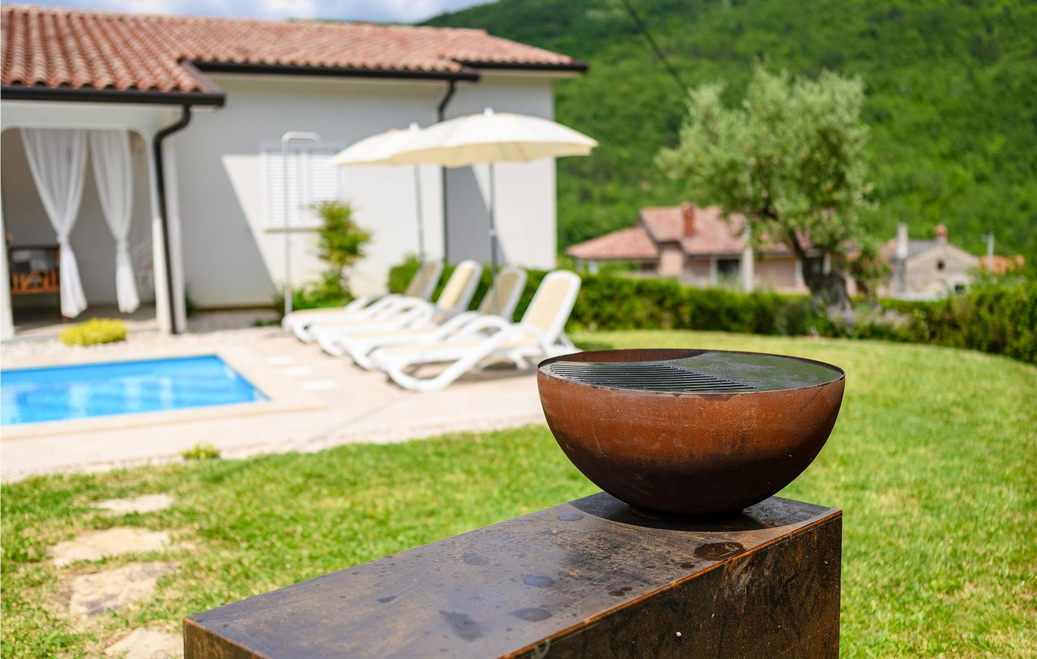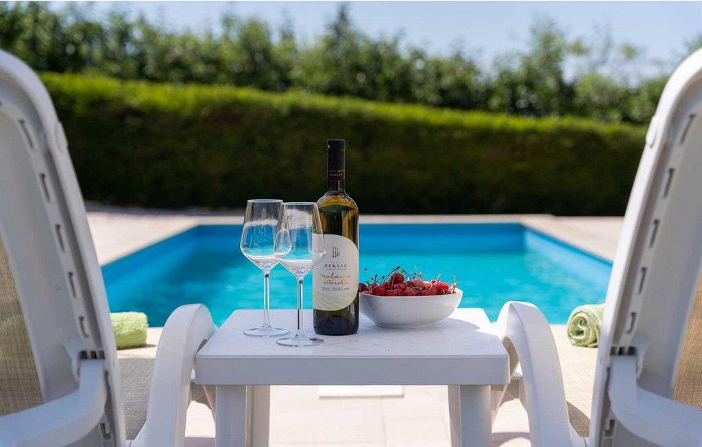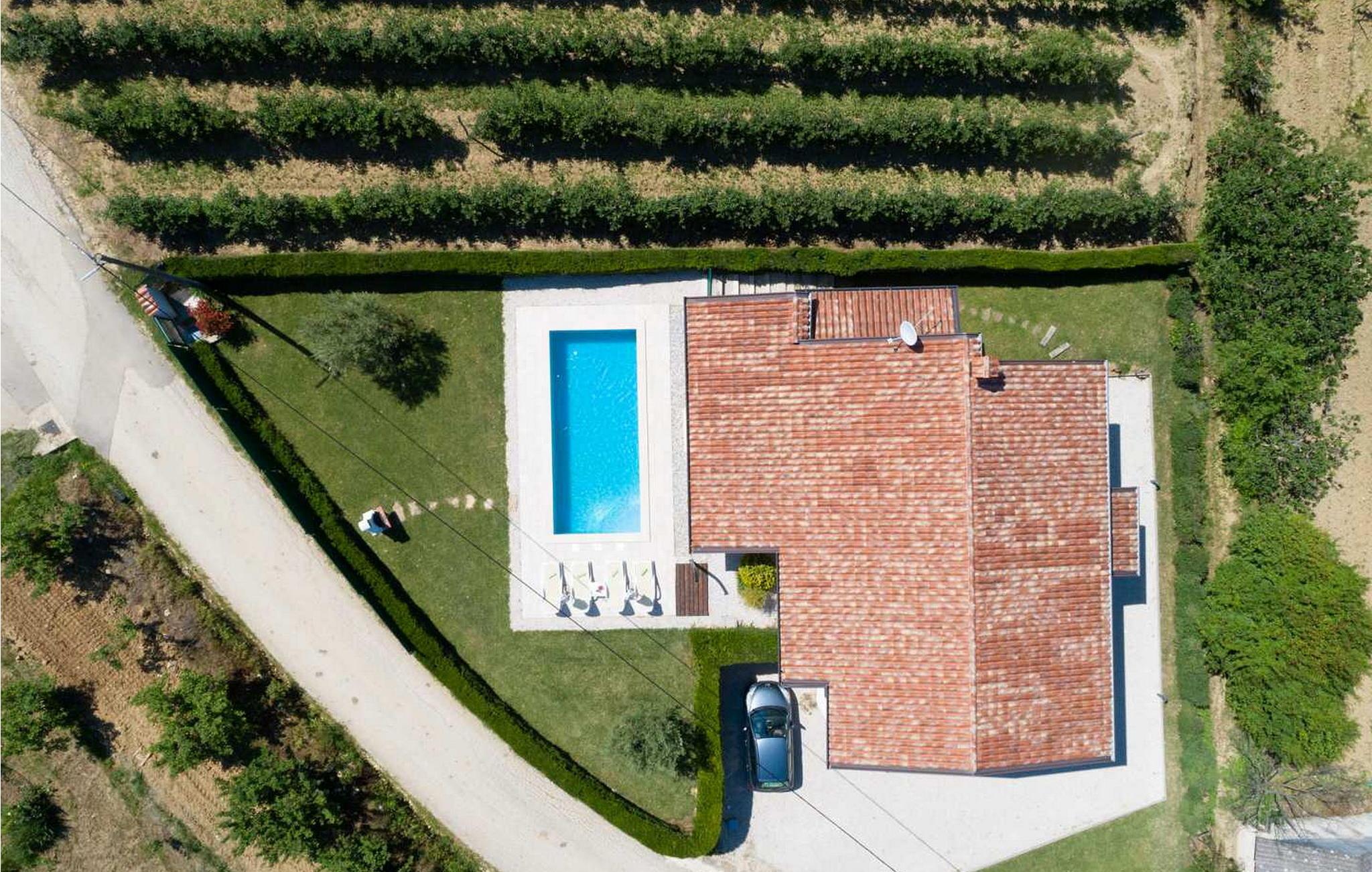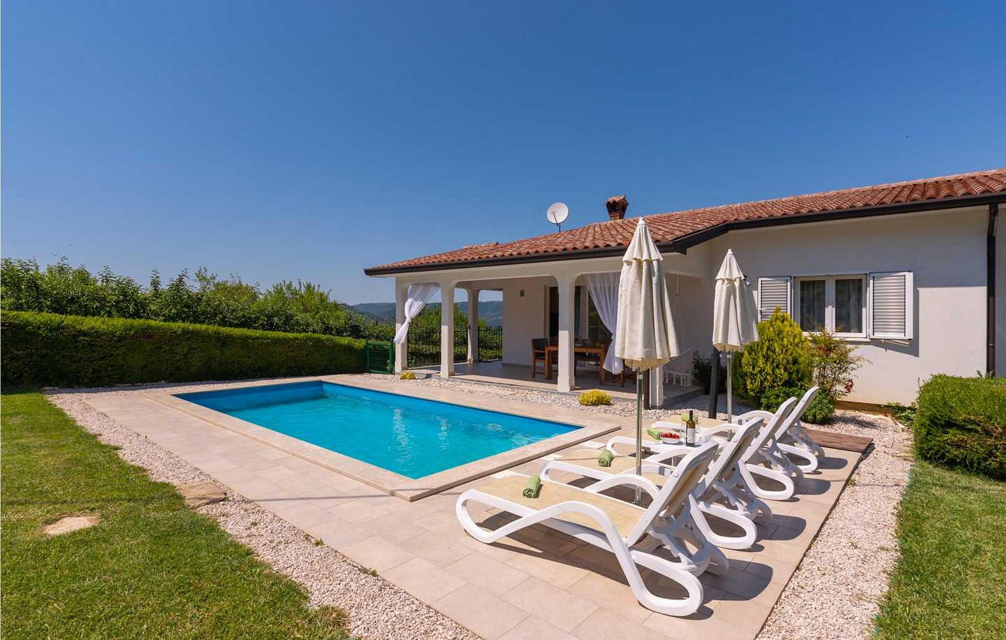 Casa Veranda er et charmerende, fritliggende hus i udkanten af den rolige landsby Lazi, et af de grønneste områder i det centrale Istrien. Denne villa er omgivet af frodige frugtplantager og vinmarker og tilbyder en betagende panoramaudsigt over den maleriske middelalderby Motovun. Ejendommen er fuldt indhegnet og har et skønt udeområde med swimmingpool, en velholdt græsplæne og en overdækket terrasse med udendørs spiseplads og grill. Der er også to parkeringspladser til rådighed. Indenfor indeholder Casa Veranda en stue med et veludstyret køkken og spiseplads, en sovesofa samt et brusebad og et separat toilet. Motovun, i hjertet af Istrien, er kendt for sin filmfestival, termiske kilde og velbevarede historiske bygninger. Villaens centrale beliggenhed gør den ideel til at udforske Istriens seværdigheder. Besøg kystbyerne Pula, Rovinj og Porec eller nyd en tur til Brijuni Nationalpark, kendt for sine smukke strande, golfbaner og zoologisk have. Oplev det istriske køkken i lokale taverner eller tag på et trøffeljagteventyr i Motovun-skoven.