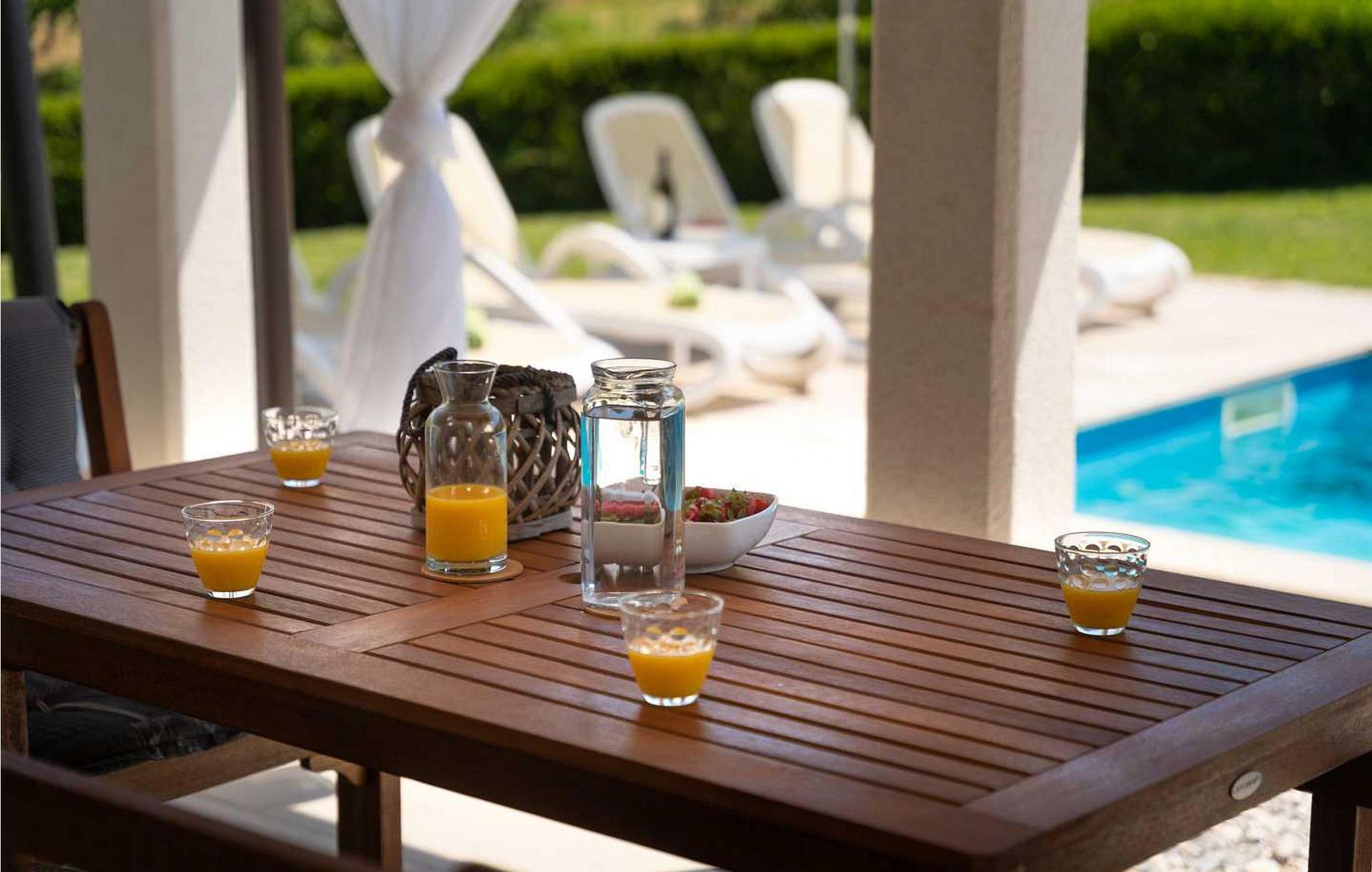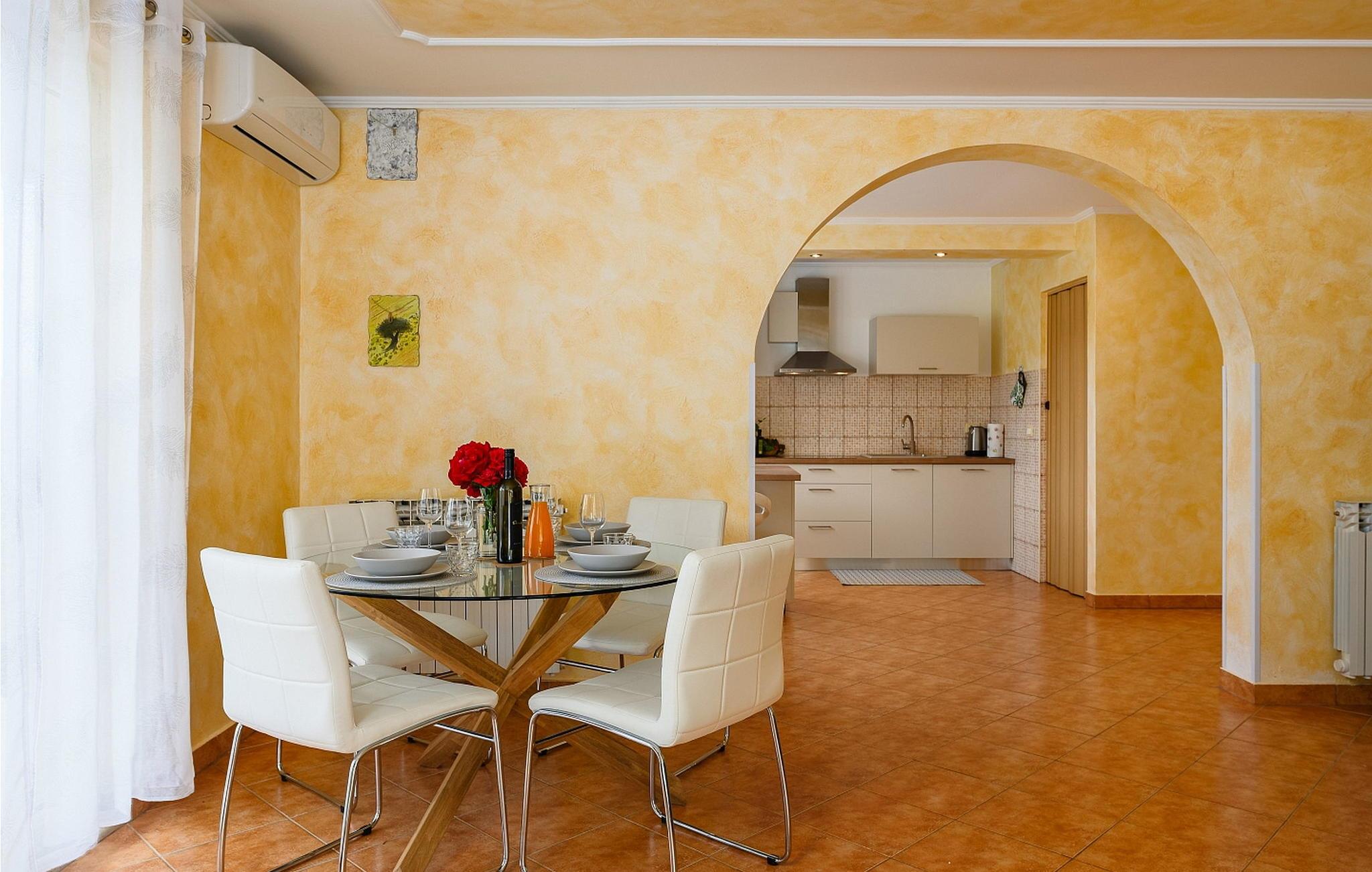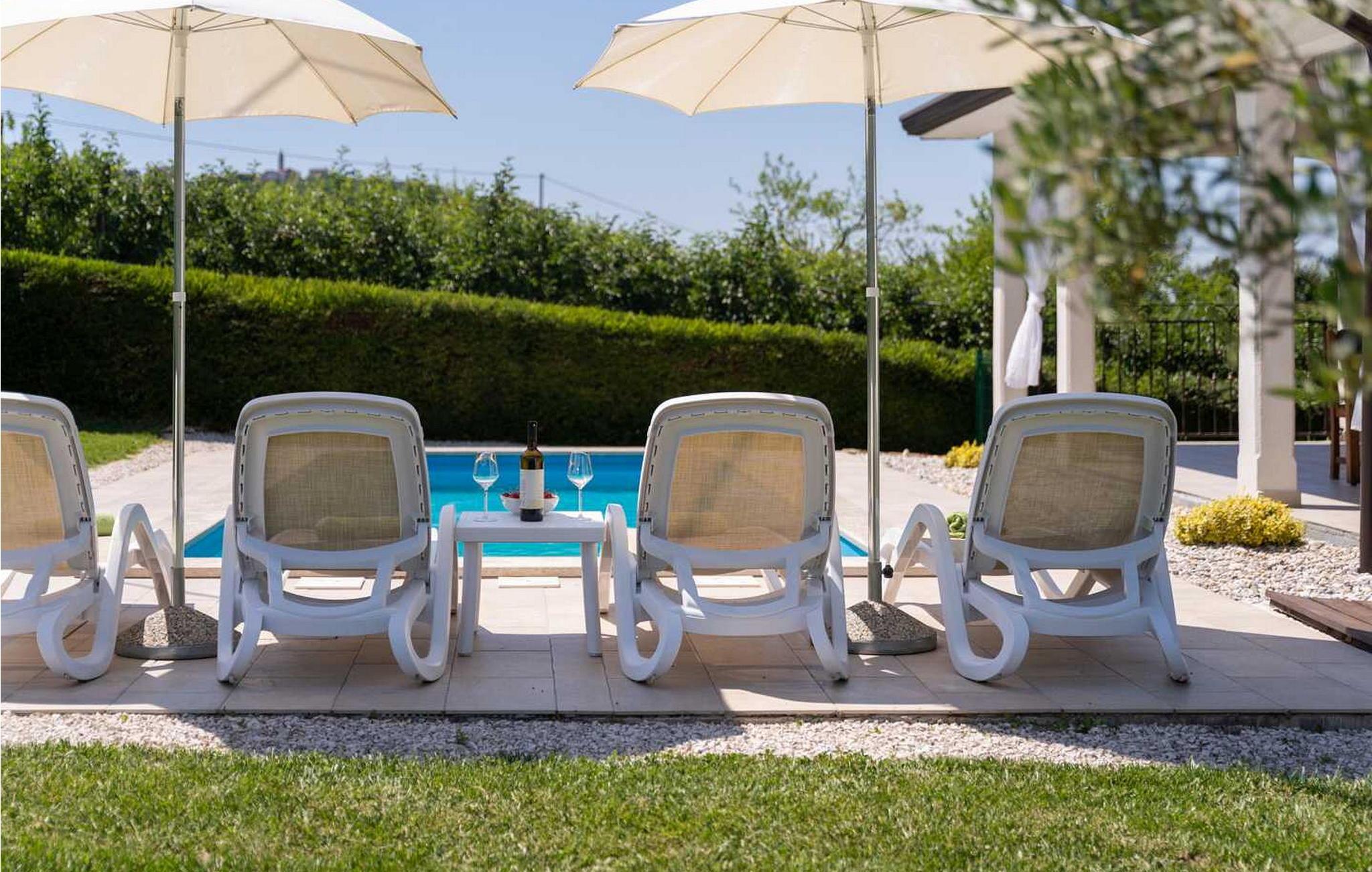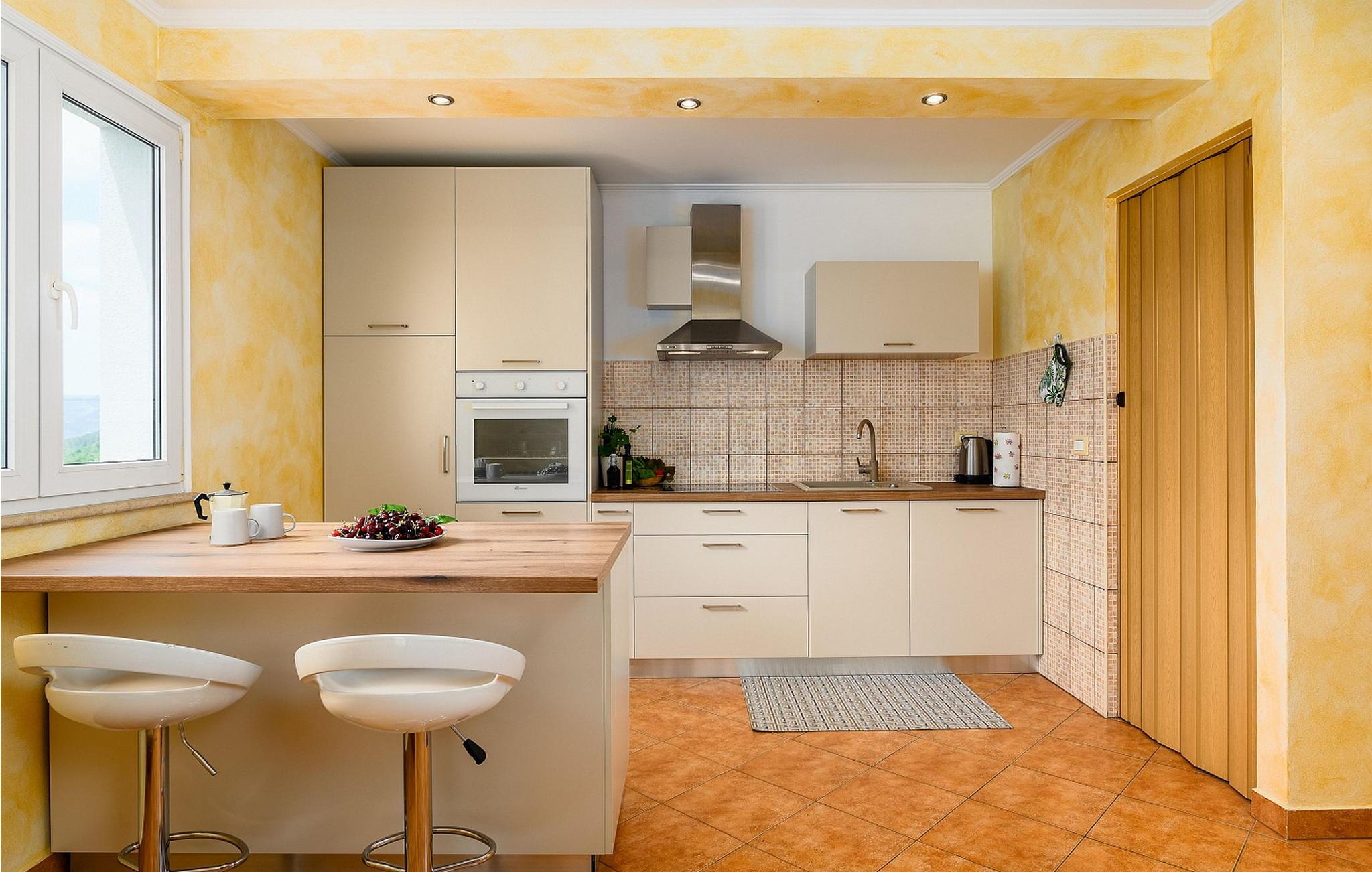 Casa Veranda er et charmerende, fritliggende hus i udkanten af den rolige landsby Lazi, et af de grønneste områder i det centrale Istrien. Denne villa er omgivet af frodige frugtplantager og vinmarker og tilbyder en betagende panoramaudsigt over den maleriske middelalderby Motovun. Ejendommen er fuldt indhegnet og har et skønt udeområde med swimmingpool, en velholdt græsplæne og en overdækket terrasse med udendørs spiseplads og grill. Der er også to parkeringspladser til rådighed. Indenfor indeholder Casa Veranda en stue med et veludstyret køkken og spiseplads, en sovesofa samt et brusebad og et separat toilet. Motovun, i hjertet af Istrien, er kendt for sin filmfestival, termiske kilde og velbevarede historiske bygninger. Villaens centrale beliggenhed gør den ideel til at udforske Istriens seværdigheder. Besøg kystbyerne Pula, Rovinj og Porec eller nyd en tur til Brijuni Nationalpark, kendt for sine smukke strande, golfbaner og zoologisk have. Oplev det istriske køkken i lokale taverner eller tag på et trøffeljagteventyr i Motovun-skoven.