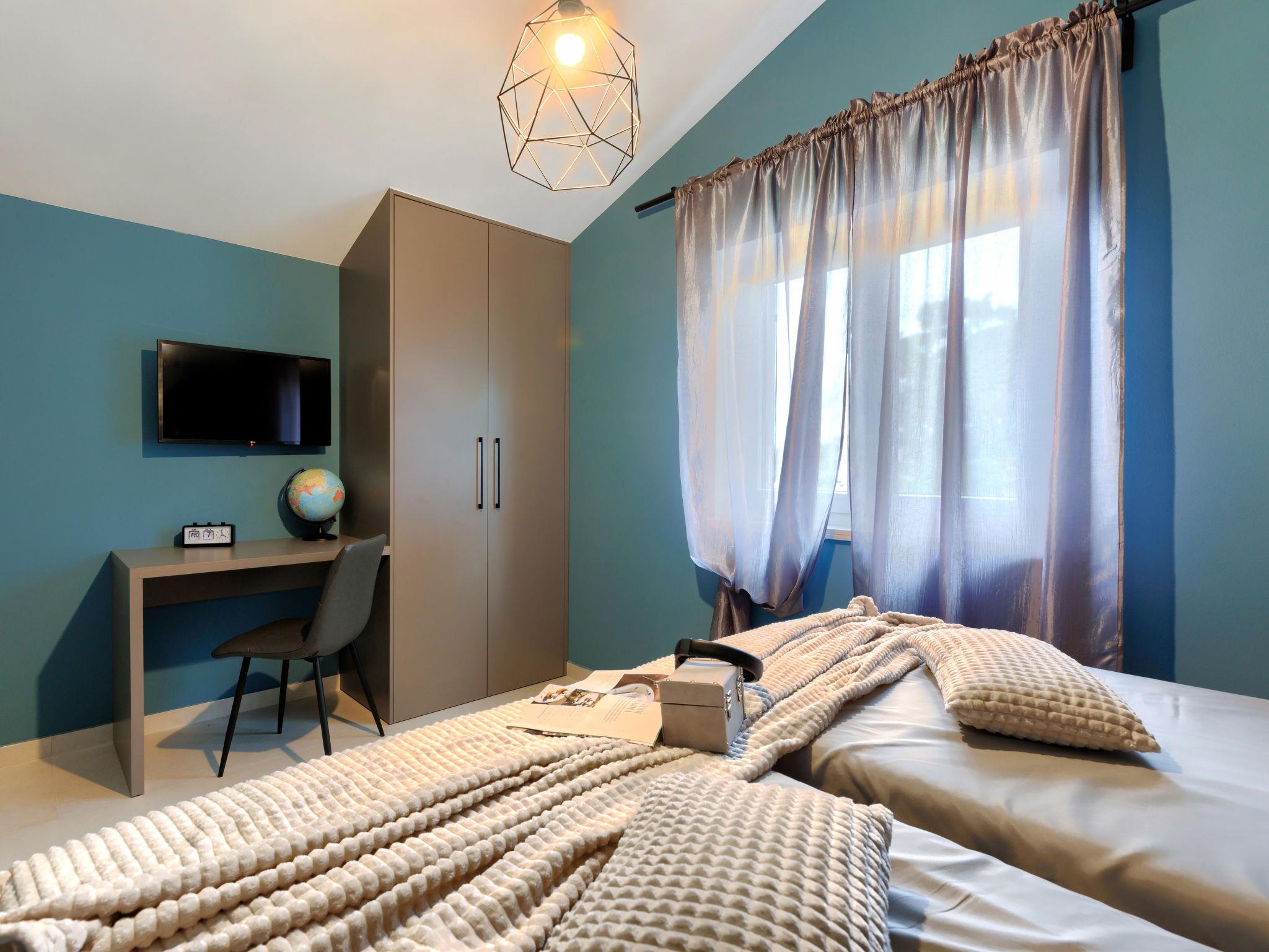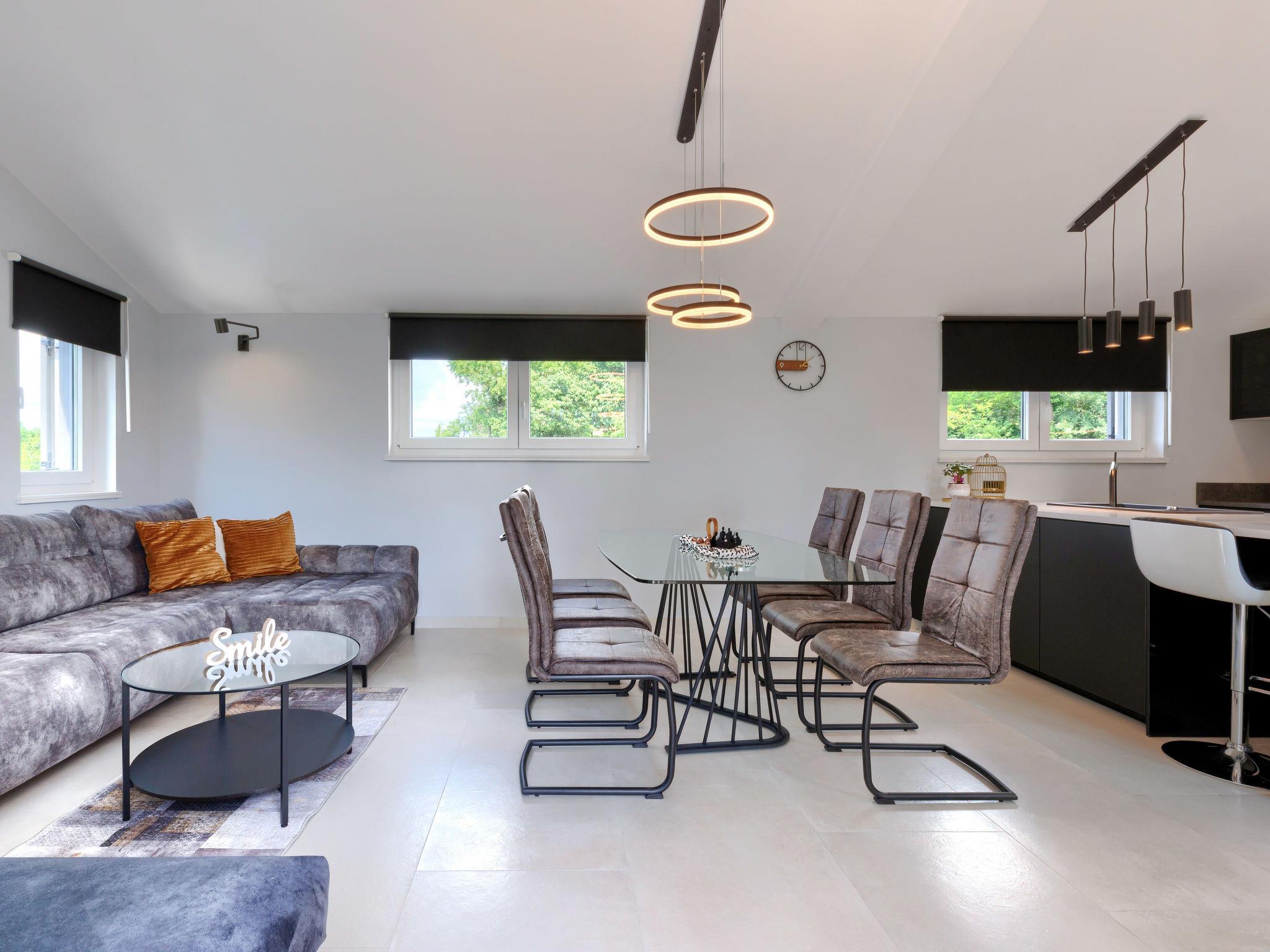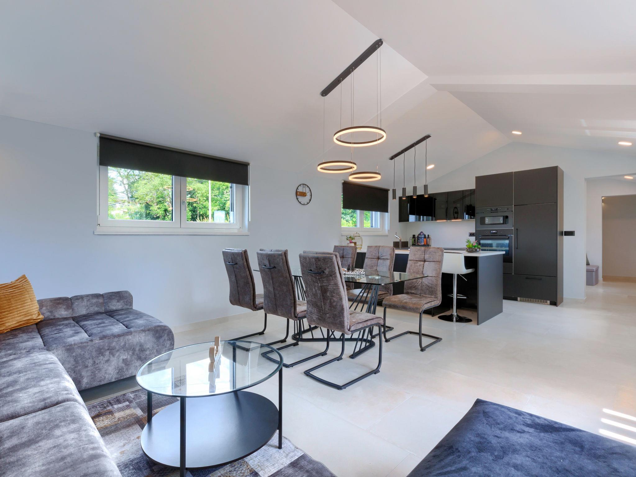 Karojba 4 km from Motovun: Very beautiful semi-detached house "Rokvilla", 2 storeys. In the hamlet Krizmani 4 km from the centre of Karojbe, in a sunny position, 20 km from the sea. Private: property 800 m2, garden with lawn, swimming pool angular (51 m2, depth 138 cm, seasonal availability: 01.May. - 15.Oct.) with internal staircase and salt-electrolysis pool-cleaning system. Outdoor shower, table tennis, terrace (10 m2), garden furniture, barbecue, pool maintenance by the owner/gardener. In the house: internet access, washing machine. Parking (for 2 cars) at the house on the premises. Shop 3 km, restaurant 4 km, bus stop 6.3 km, pebble beach 25 km, rocky beach 20 km. Please note: suitable for families. The owner does not accept any youth groups.