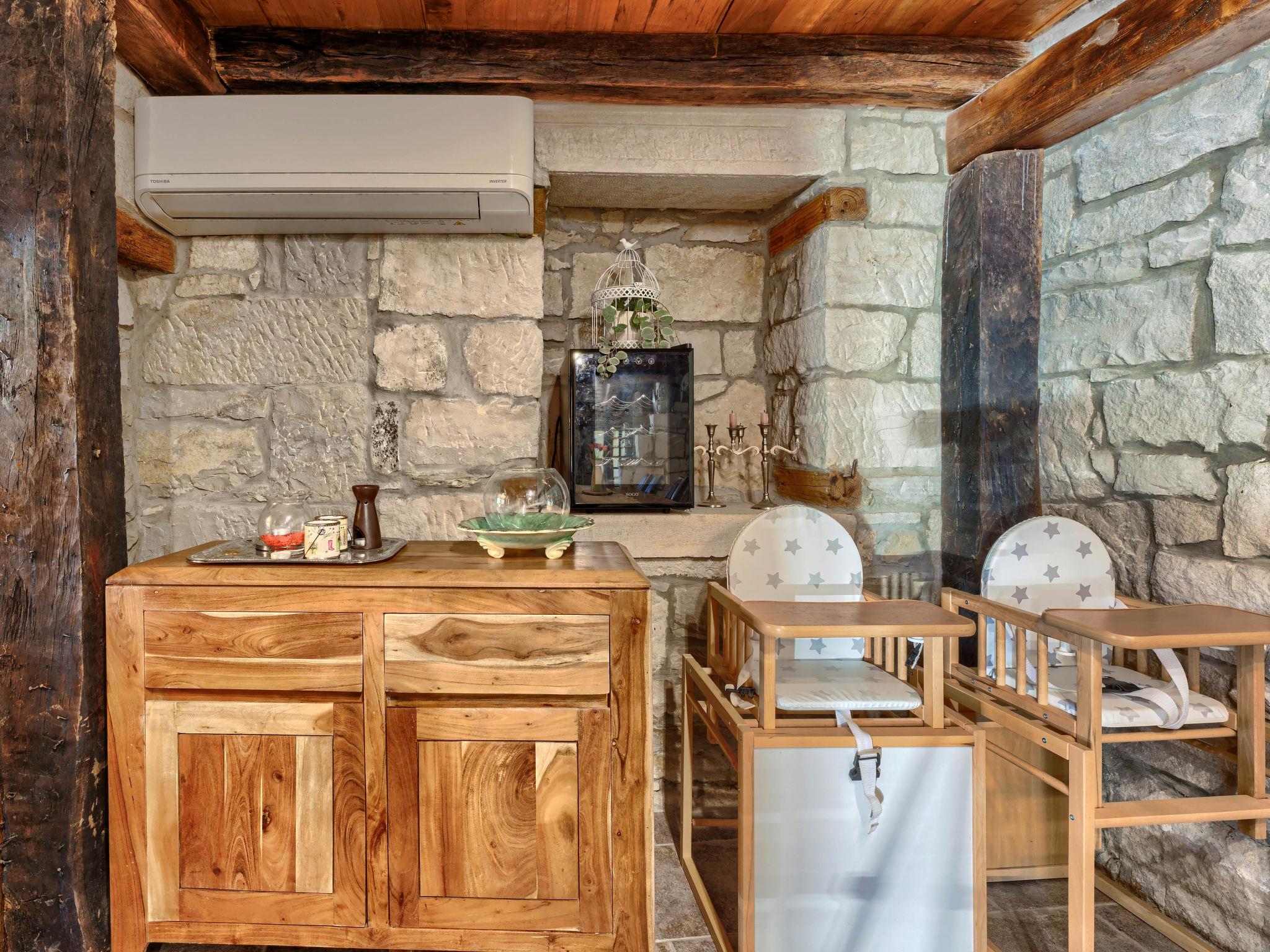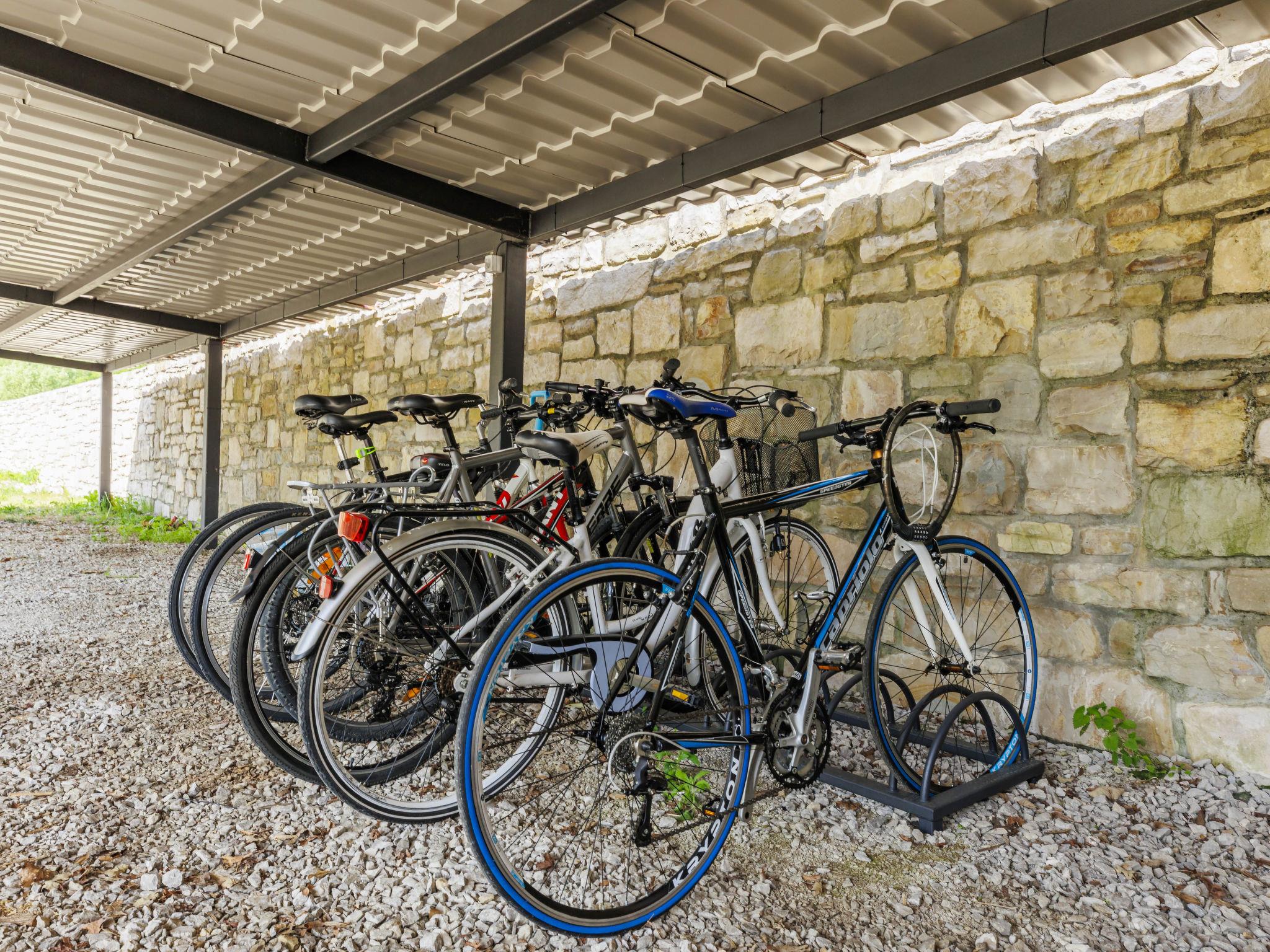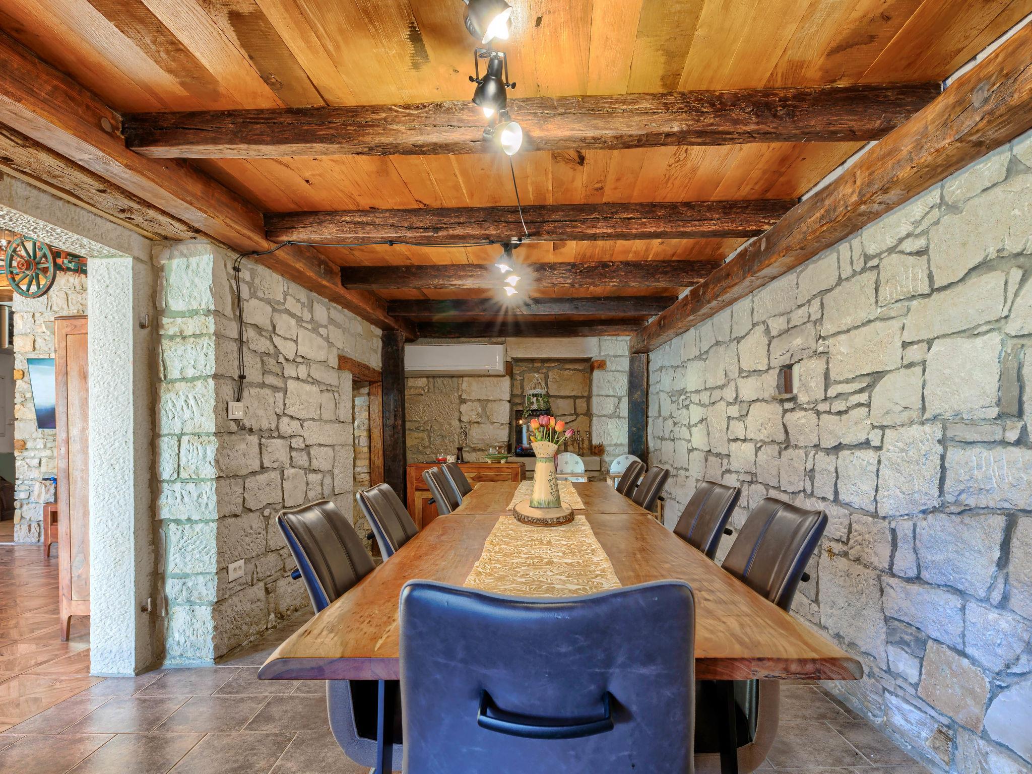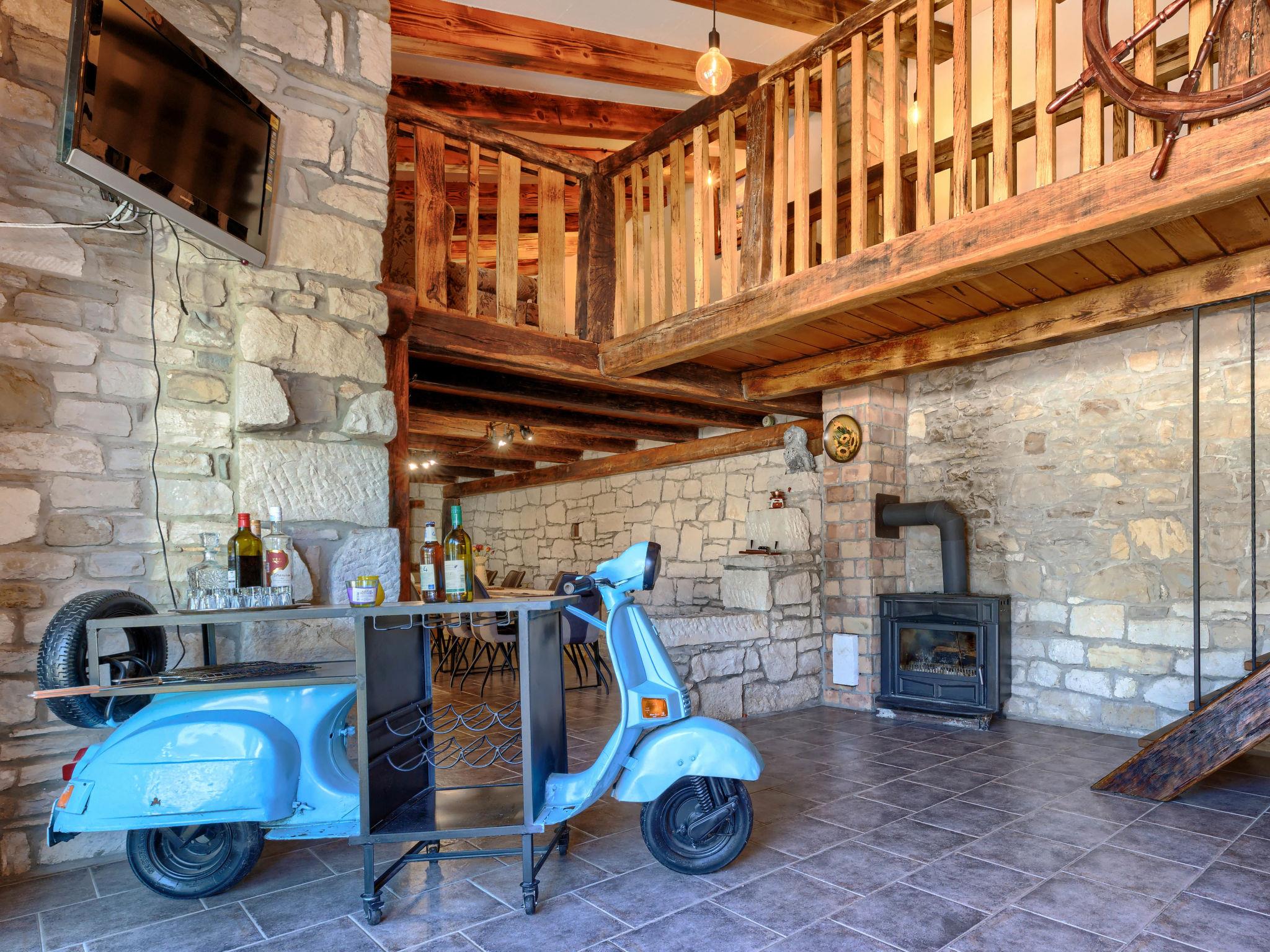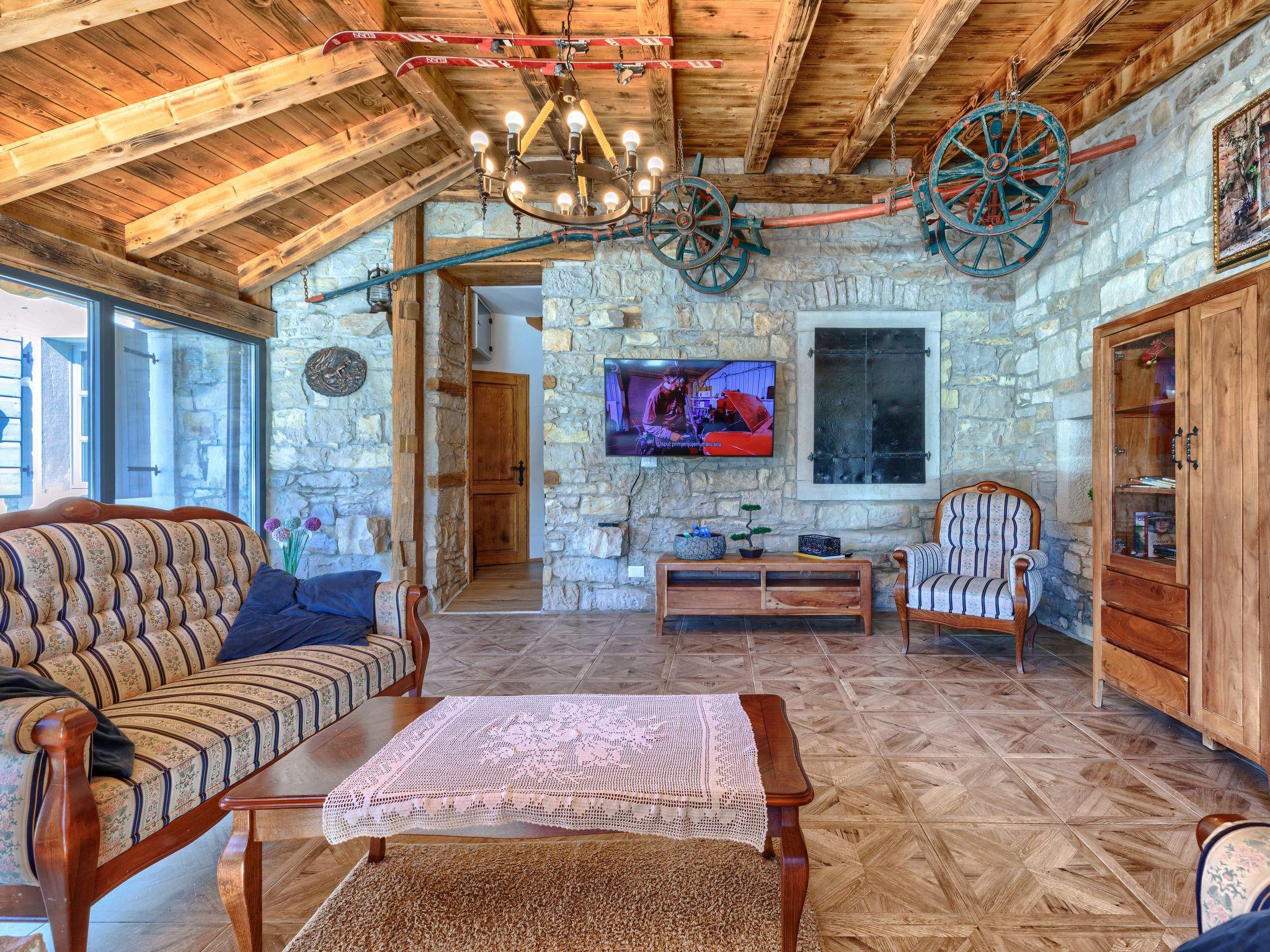 Gradinje 5 km from Motovun: Beautiful villa "Tina", 2 storeys. 10 km from the centre of Buzet, 30 km from the centre of Novigrad, in a quiet position, 30 km from the sea, in the countryside. Private: property 3'500 m2 (fenced), garden with lawn, swimming pool angular, heated (75 m2, depth 100 - 170 cm, seasonal availability: 01.Mar. - 01.Nov.) with internal staircase and shutter cover. Outdoor shower, terrace (25 m2), garden furniture, barbecue, children's playground (slide, swing). In the house: internet access, table tennis, billiard table, washing machine. Roofed, parking (for 6 cars) at the house on the premises. E-charging station. Shop 3.5 km, restaurant 400 m, bus stop 3.8 km. Walking paths from the house, cycle lane 100 m. Nearby attractions: Aquapark 14 km. Please note: airfield 30 km from the property. Bicycles on request (extra).