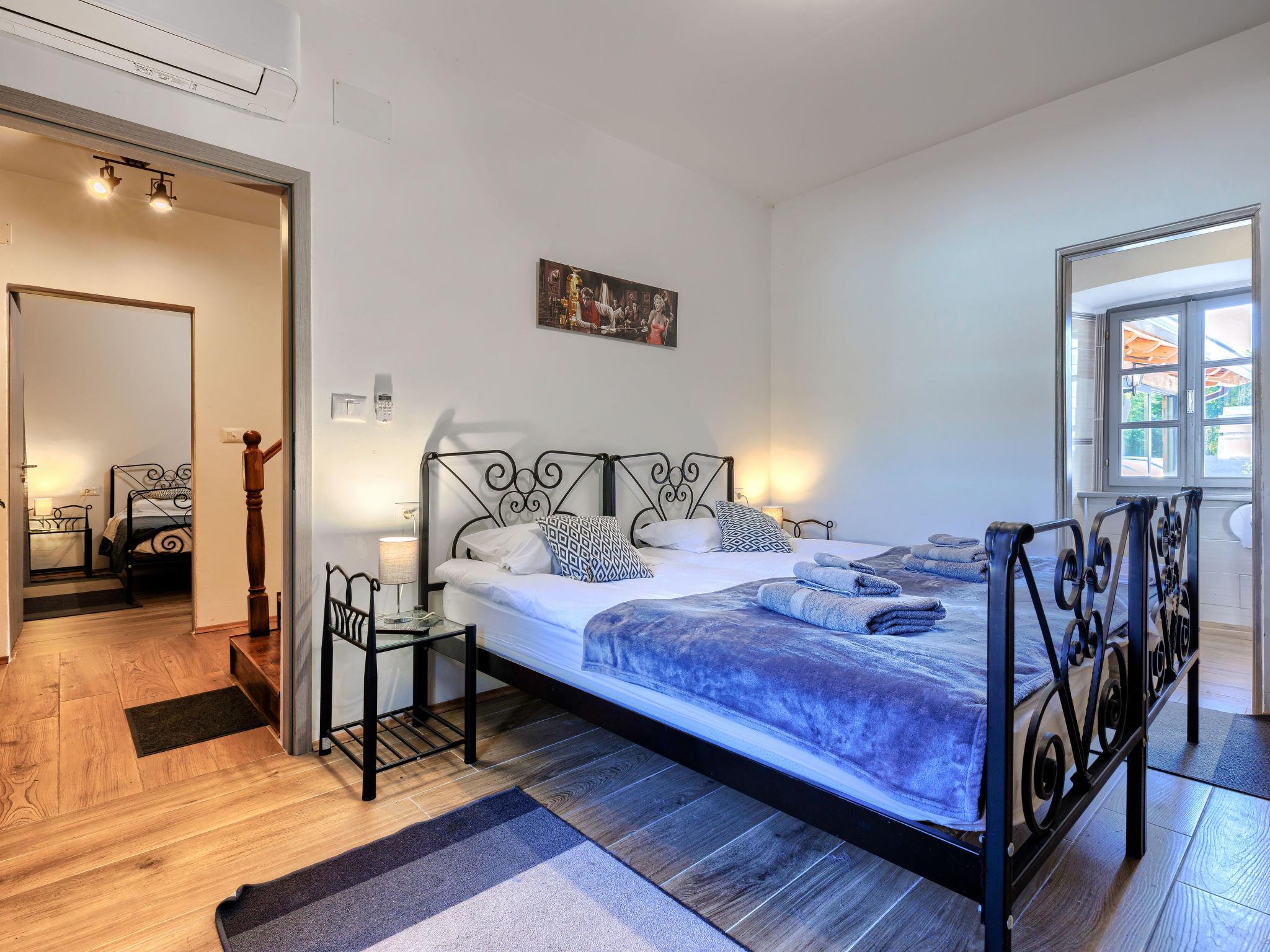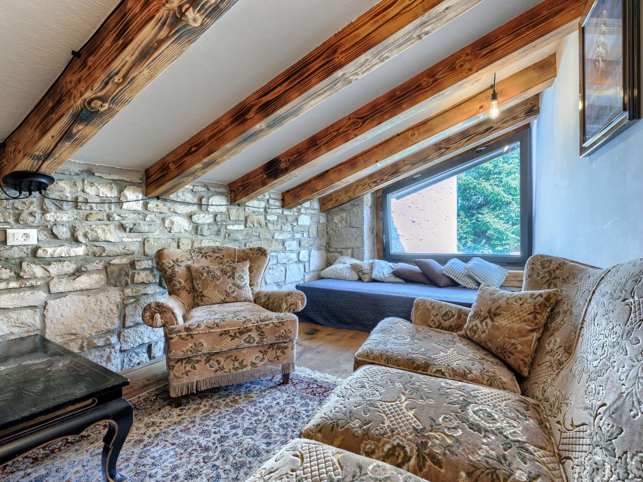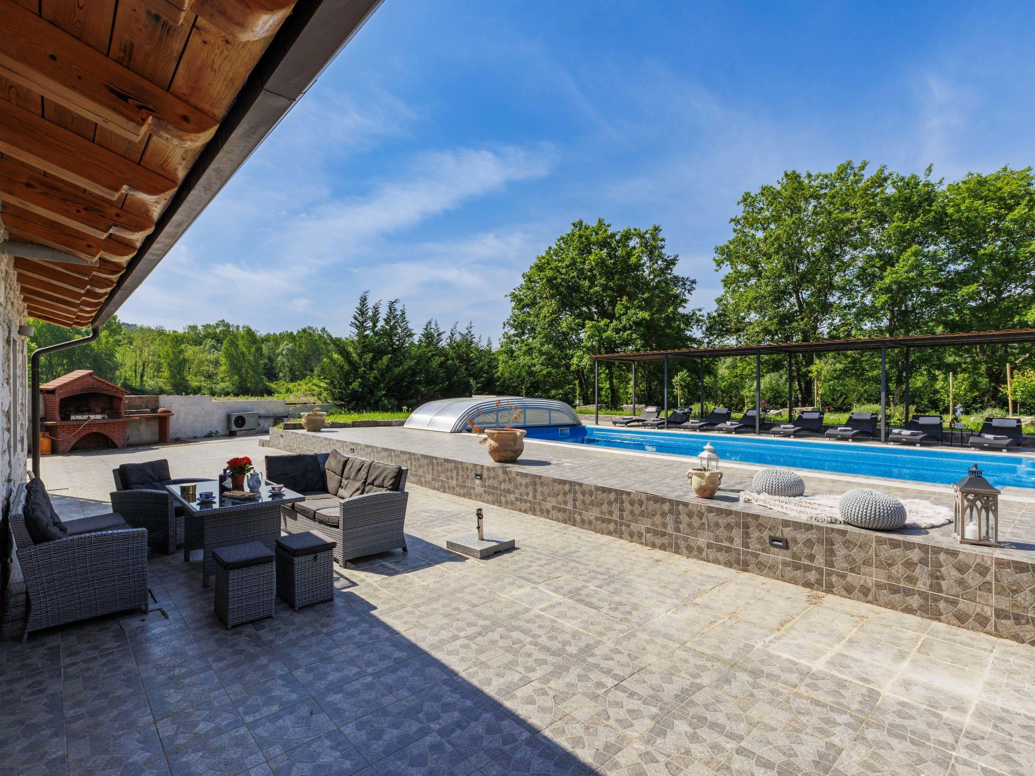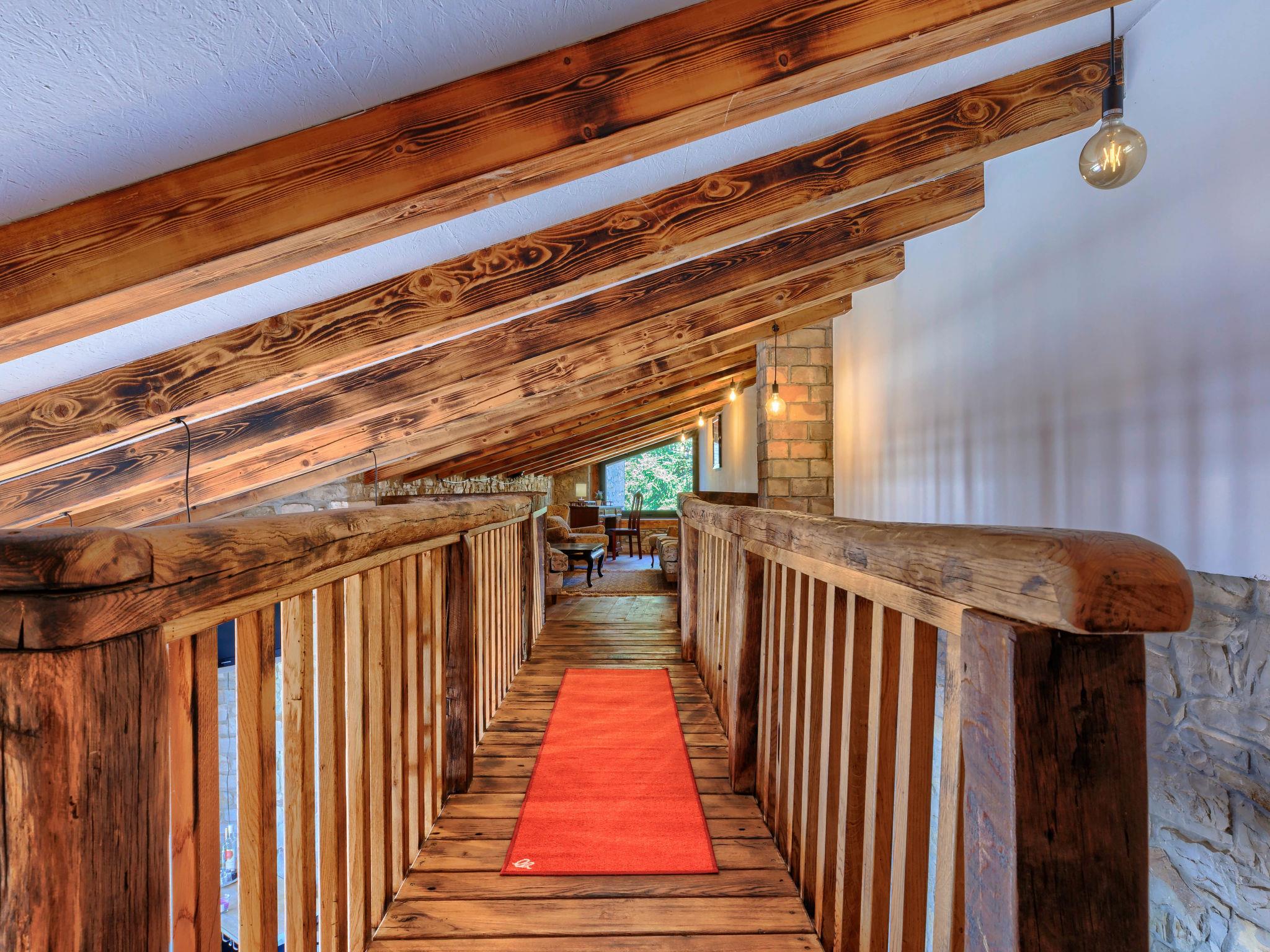 Gradinje 5 km from Motovun: Beautiful villa "Tina", 2 storeys. 10 km from the centre of Buzet, 30 km from the centre of Novigrad, in a quiet position, 30 km from the sea, in the countryside. Private: property 3'500 m2 (fenced), garden with lawn, swimming pool angular, heated (75 m2, depth 100 - 170 cm, seasonal availability: 01.Mar. - 01.Nov.) with internal staircase and shutter cover. Outdoor shower, terrace (25 m2), garden furniture, barbecue, children's playground (slide, swing). In the house: internet access, table tennis, billiard table, washing machine. Roofed, parking (for 6 cars) at the house on the premises. E-charging station. Shop 3.5 km, restaurant 400 m, bus stop 3.8 km. Walking paths from the house, cycle lane 100 m. Nearby attractions: Aquapark 14 km. Please note: airfield 30 km from the property. Bicycles on request (extra).