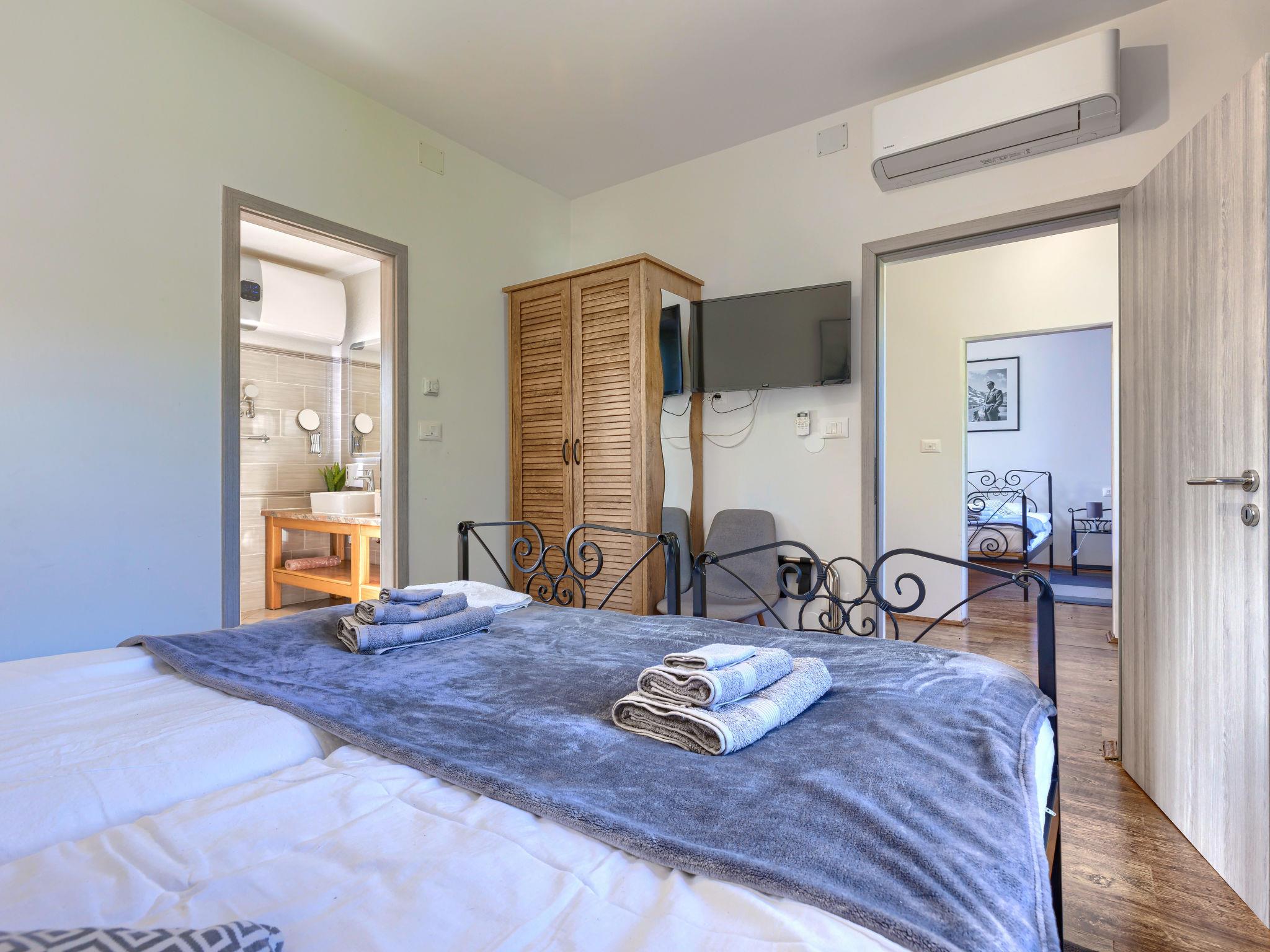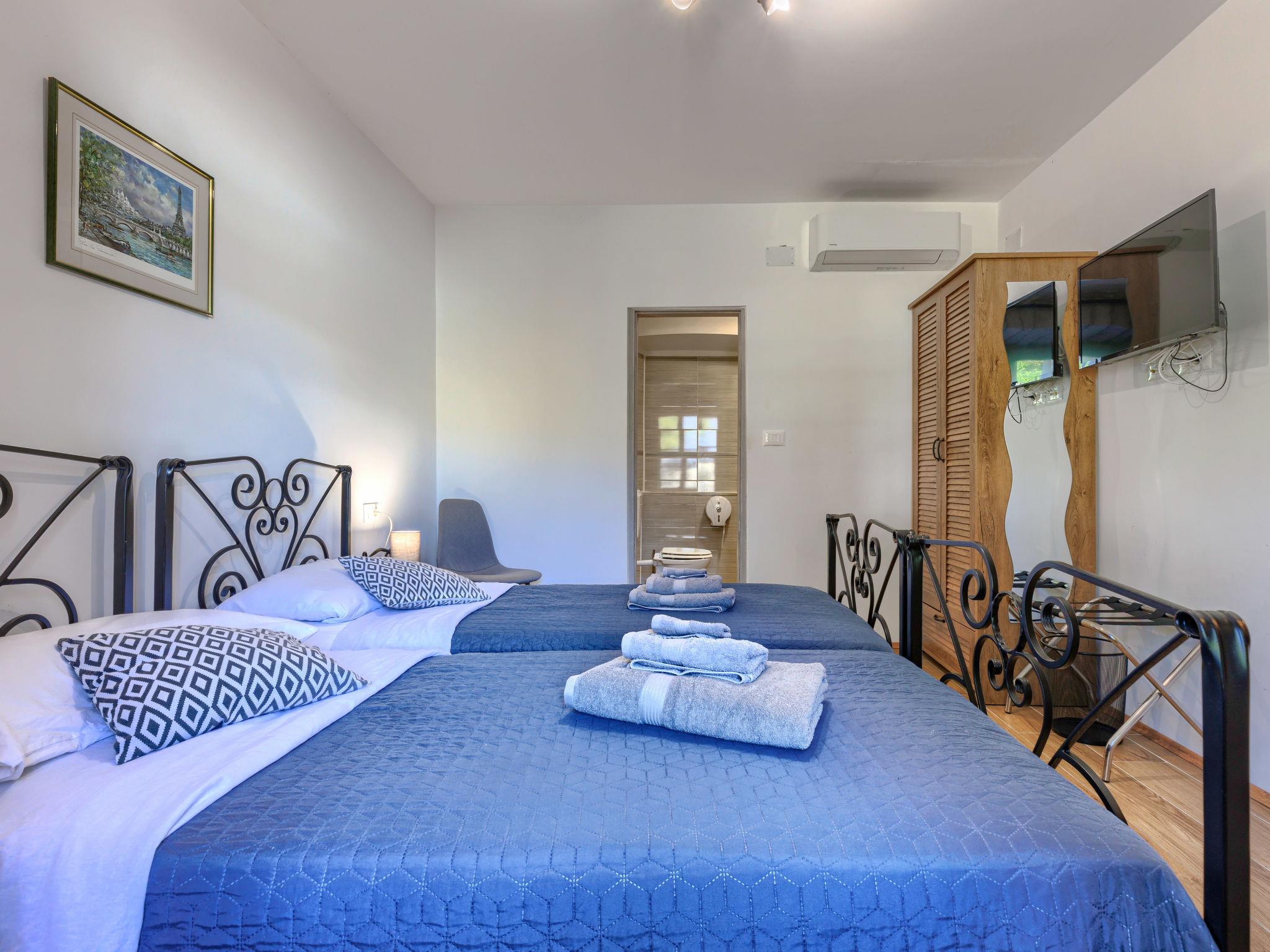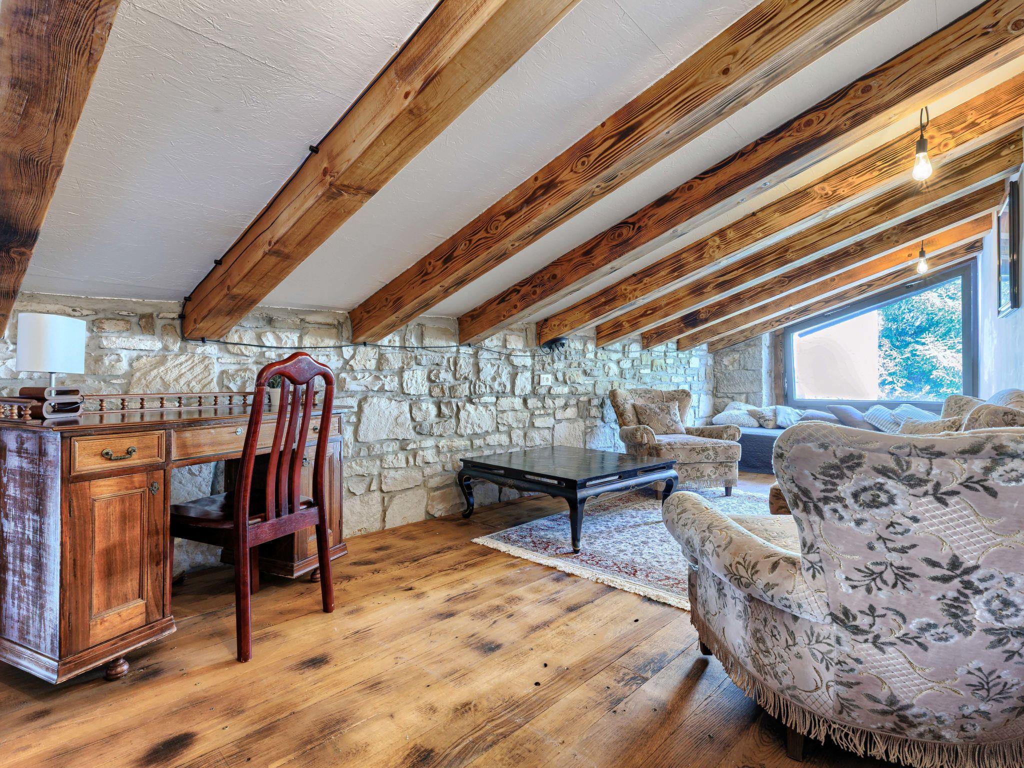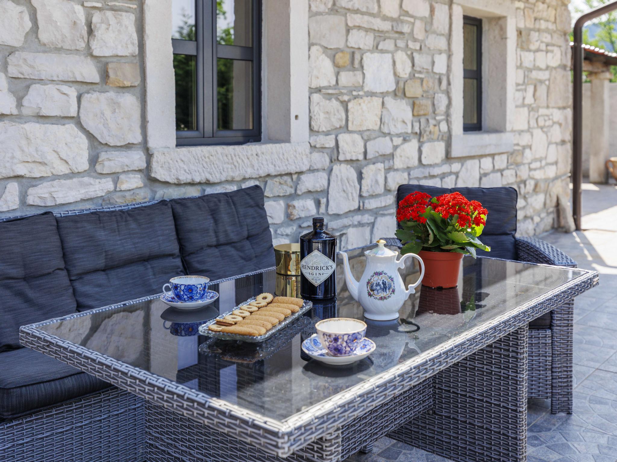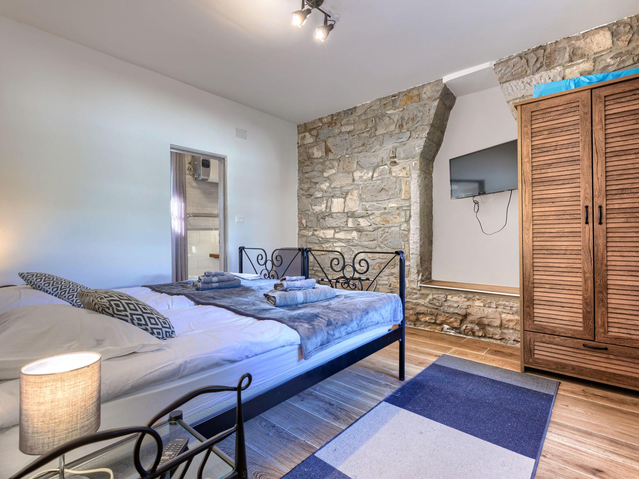 Gradinje 5 km from Motovun: Beautiful villa "Tina", 2 storeys. 10 km from the centre of Buzet, 30 km from the centre of Novigrad, in a quiet position, 30 km from the sea, in the countryside. Private: property 3'500 m2 (fenced), garden with lawn, swimming pool angular, heated (75 m2, depth 100 - 170 cm, seasonal availability: 01.Mar. - 01.Nov.) with internal staircase and shutter cover. Outdoor shower, terrace (25 m2), garden furniture, barbecue, children's playground (slide, swing). In the house: internet access, table tennis, billiard table, washing machine. Roofed, parking (for 6 cars) at the house on the premises. E-charging station. Shop 3.5 km, restaurant 400 m, bus stop 3.8 km. Walking paths from the house, cycle lane 100 m. Nearby attractions: Aquapark 14 km. Please note: airfield 30 km from the property. Bicycles on request (extra).