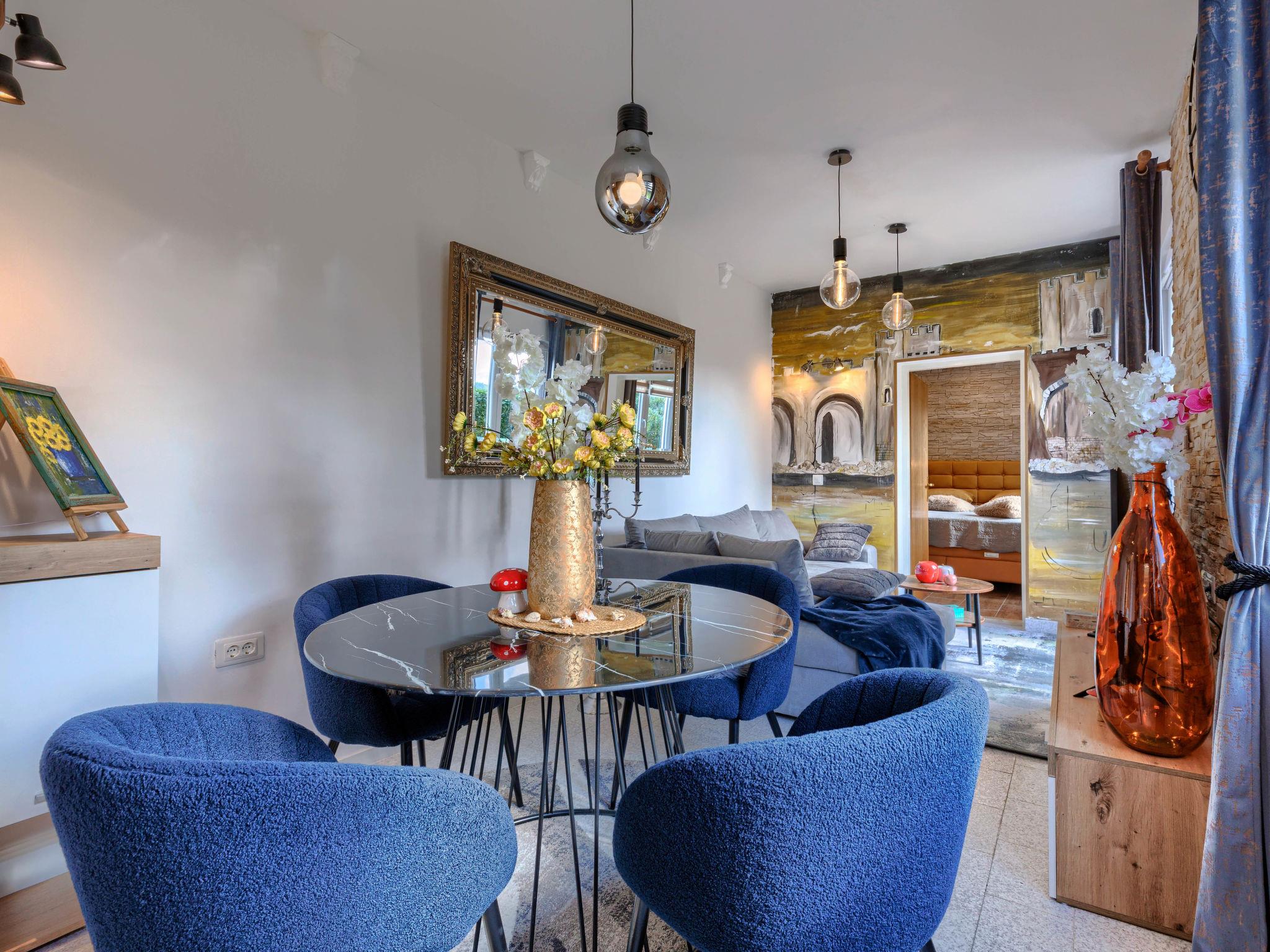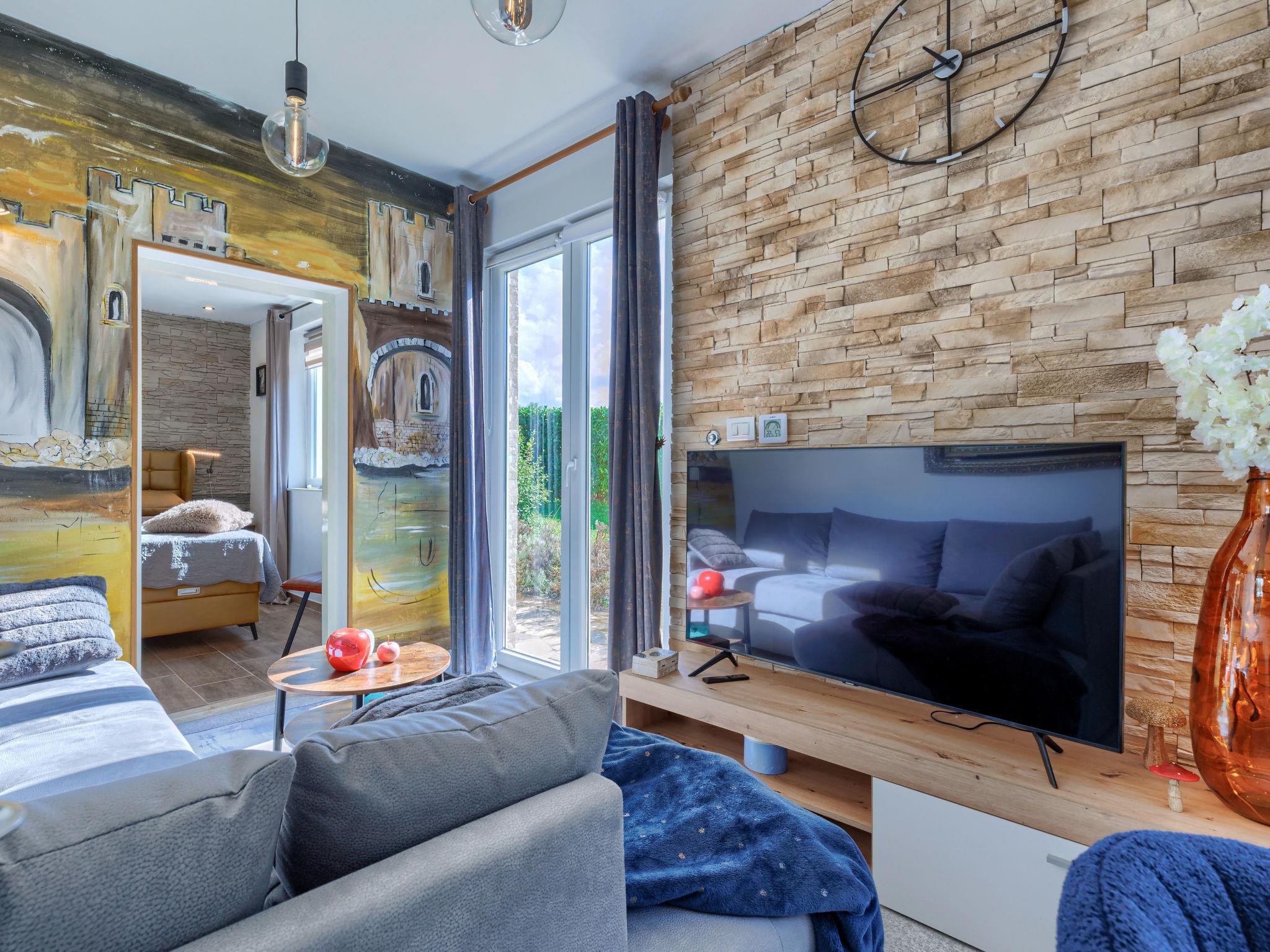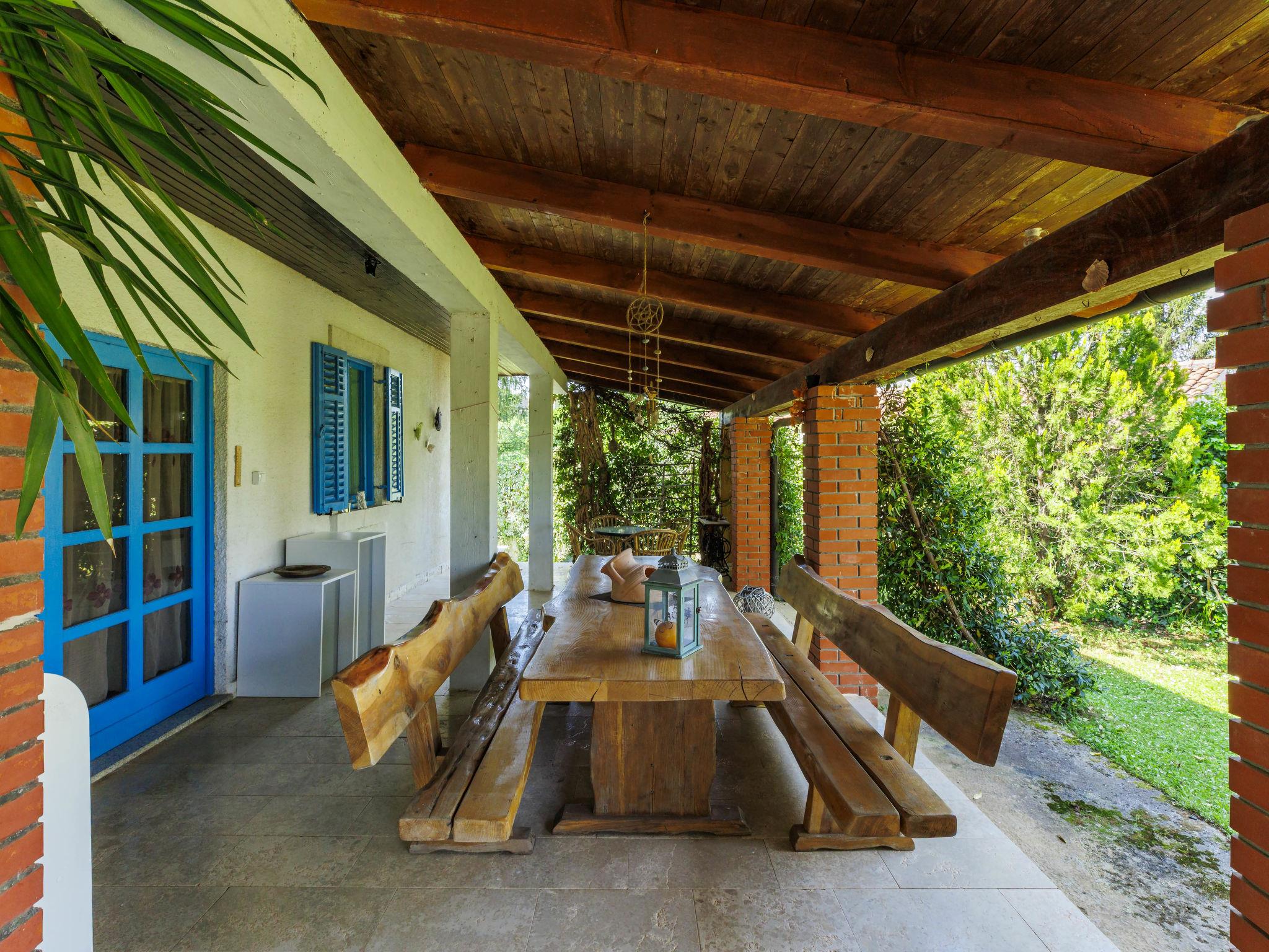 4-room house 200 m2 on 2 levels. Dining room. Shower/WC. Upper floor: (exterior staircase) living/dining room with 1 double sofabed (160 cm, length 200 cm), satellite TV (flat screen), tiled stove and air conditioning. Exit to the balcony. 3 rooms, each room with 1 french bed (160 cm, length 200 cm). Open kitchen (oven, dishwasher, 4 ceramic glass hob hotplates, toaster, kettle, microwave, electric coffee machine). Bath/bidet/WC. Wood heating, air-conditioning, forced-air heating. Balcony, terrace roofed. Terrace furniture, balcony furniture, deck chairs. Facilities: iron, logs (free). Internet (WiFi, free). Please note: non-smoking house. Maximum 1 pet/ dog allowed. No internal connecting door between the floors.