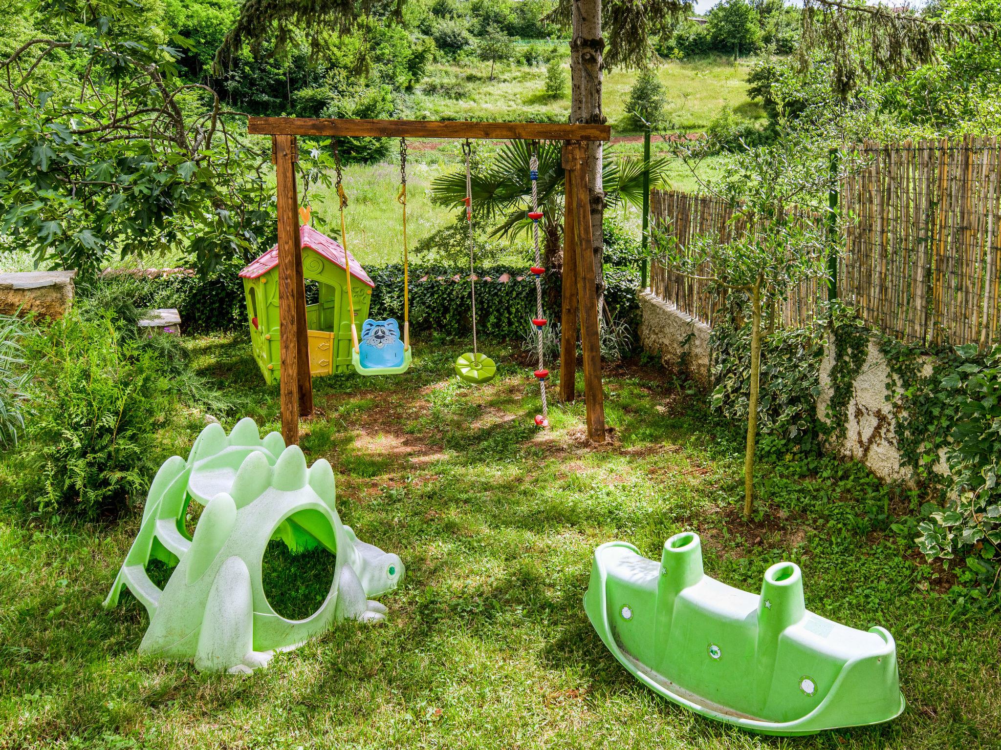 Single-family house "Palma", 2 storeys. In the hamlet Karojba 4 km from the centre of Motovun, 14 km from the centre of Pazin, 20 km from the centre of Porec, 20 km from the sea. Private: property 2'000 m2 with lawn and trees, swimming pool (7 x 4 m, depth 135 cm, seasonal availability: 01.May. - 01.Oct.) with internal staircase. Outdoor shower, terrace, garden furniture, barbecue (swing), pool maintenance by the owner/gardener. In the house: internet access, washing machine. Parking (for 2 cars) on the premises. Shop 200 m, supermarket 14 km, restaurant 4 km, bus stop 16 km, railway station 16 km, rocky beach 20 km. Marina 20 km.